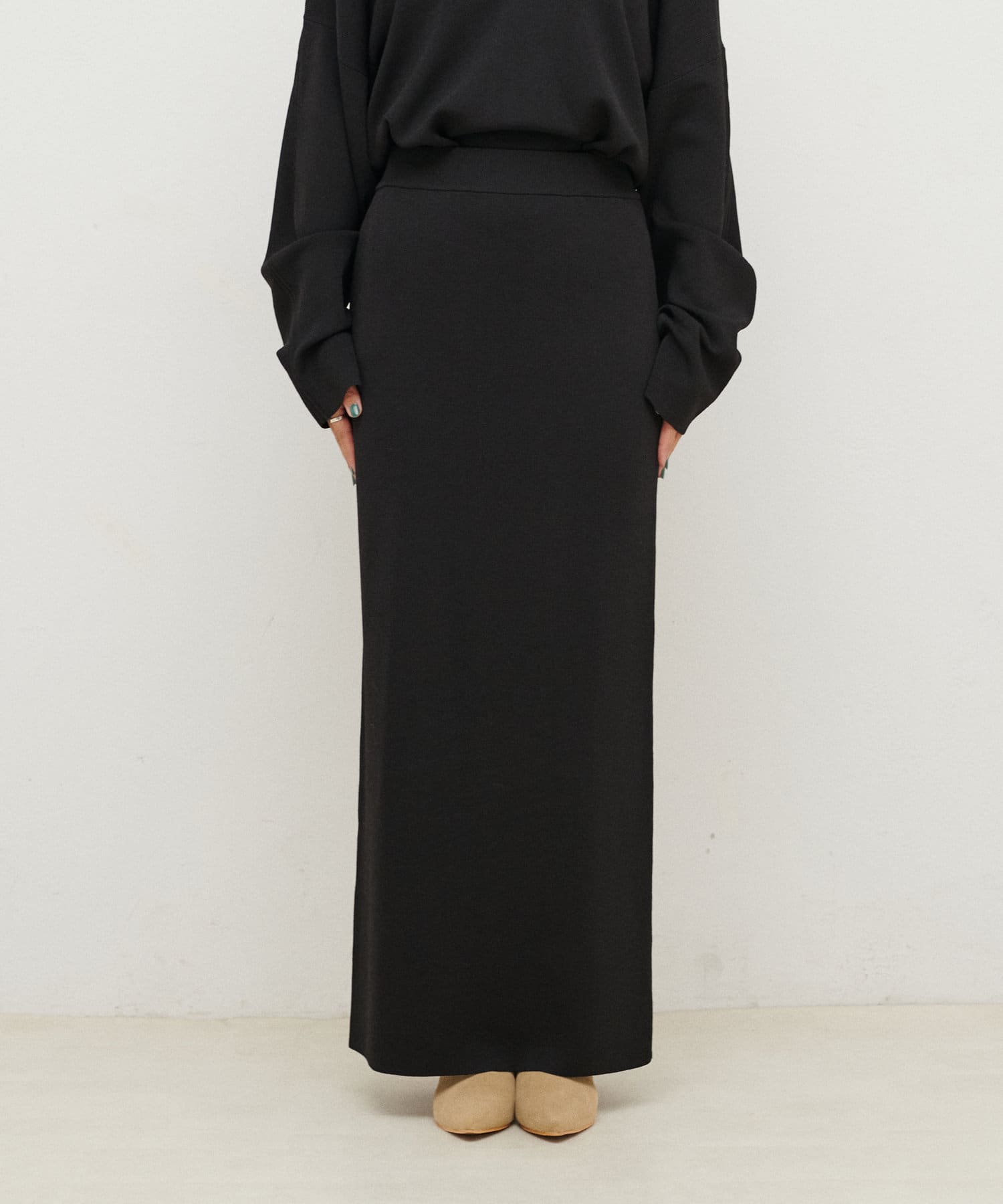 シンプルなIラインシルエットのタイトスカート。