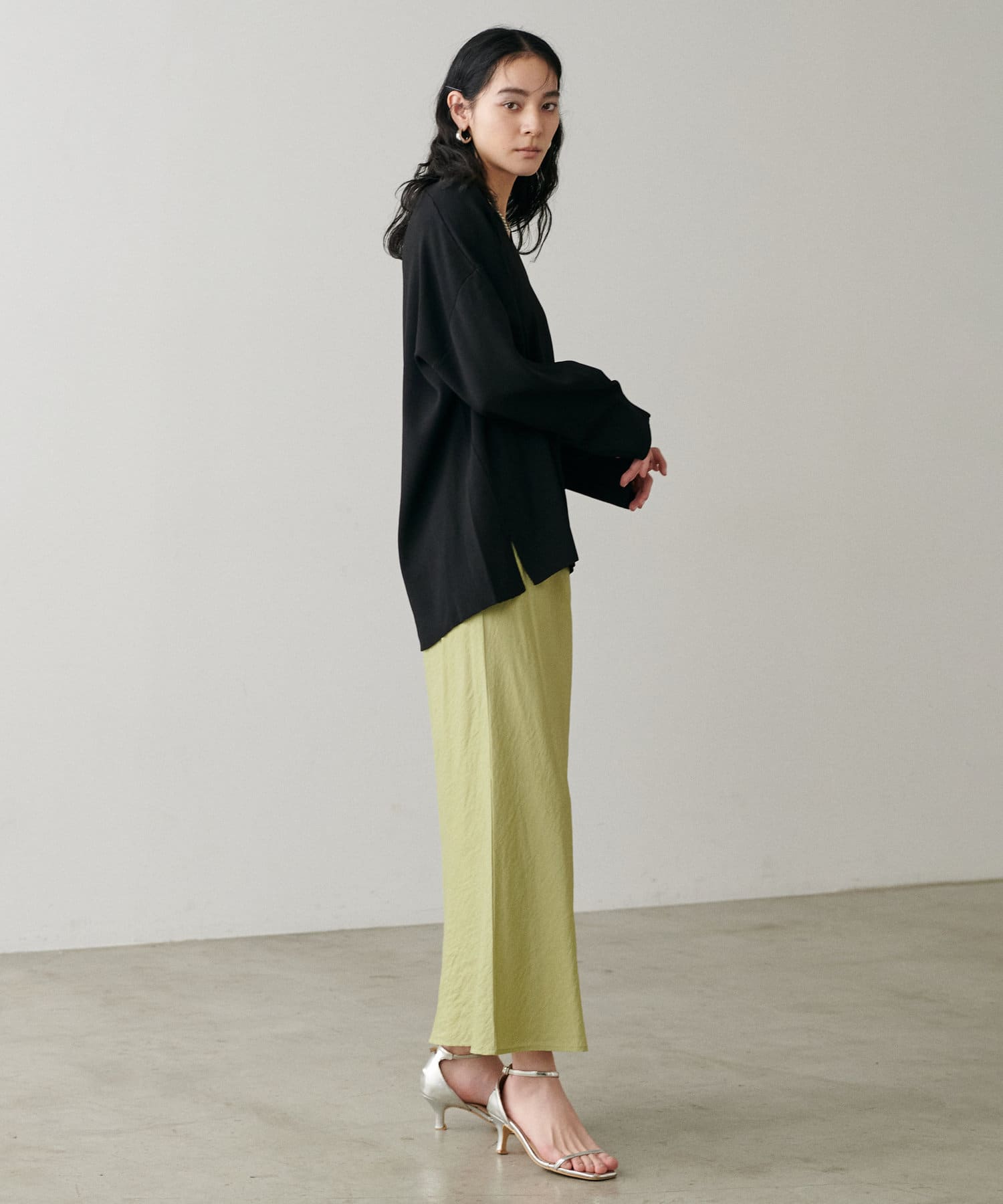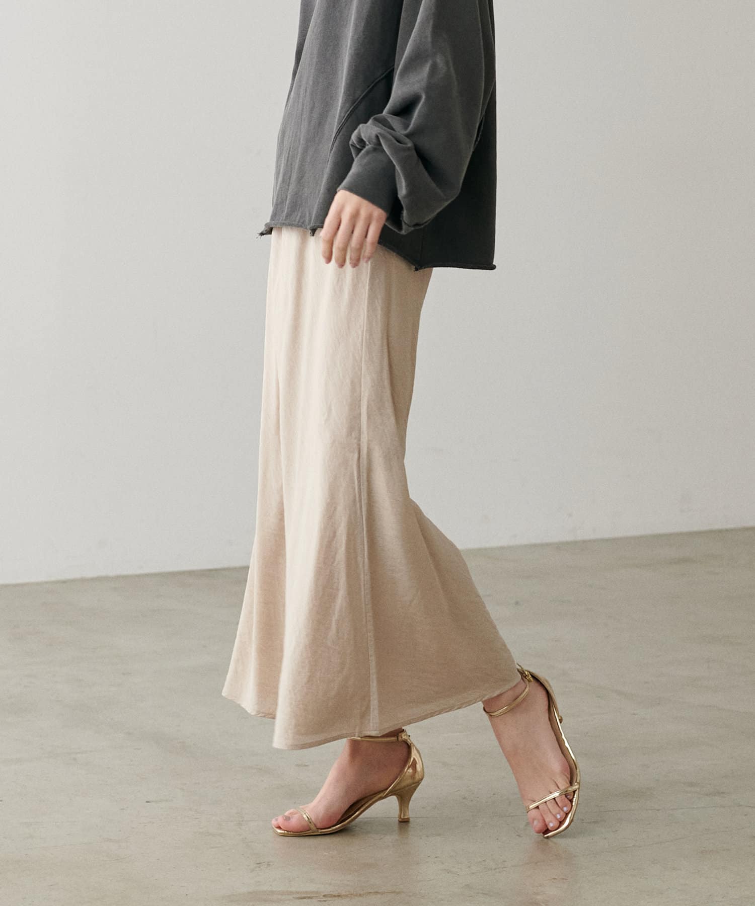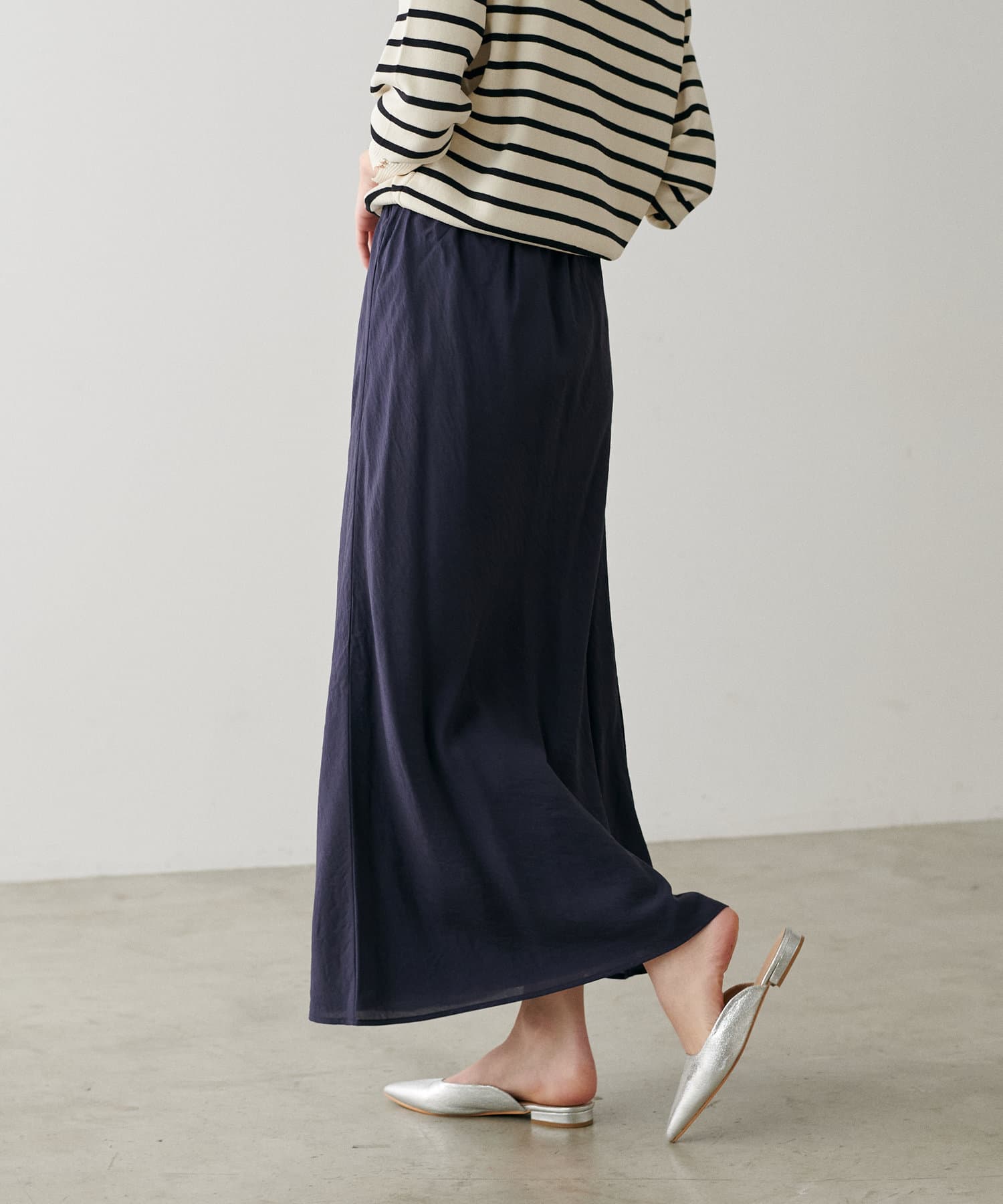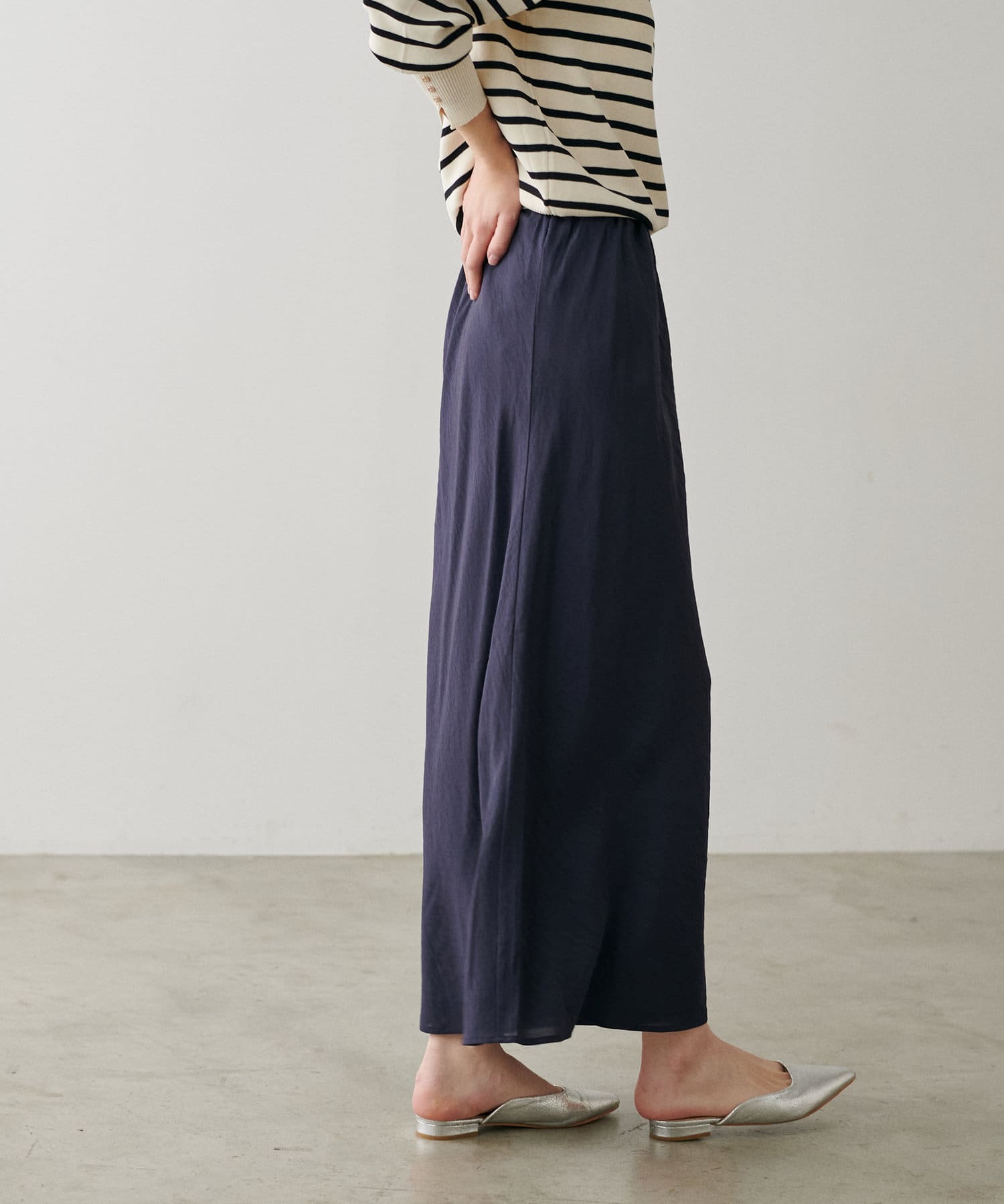 程よく身体のラインに沿って、裾に向けて緩やかに広がるナローシルエットは、