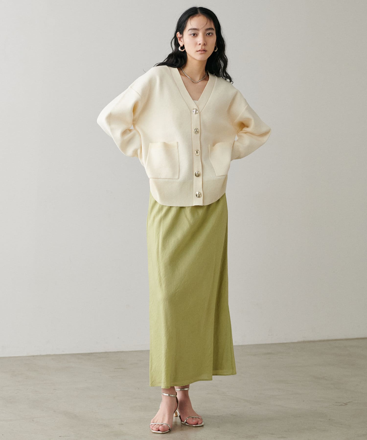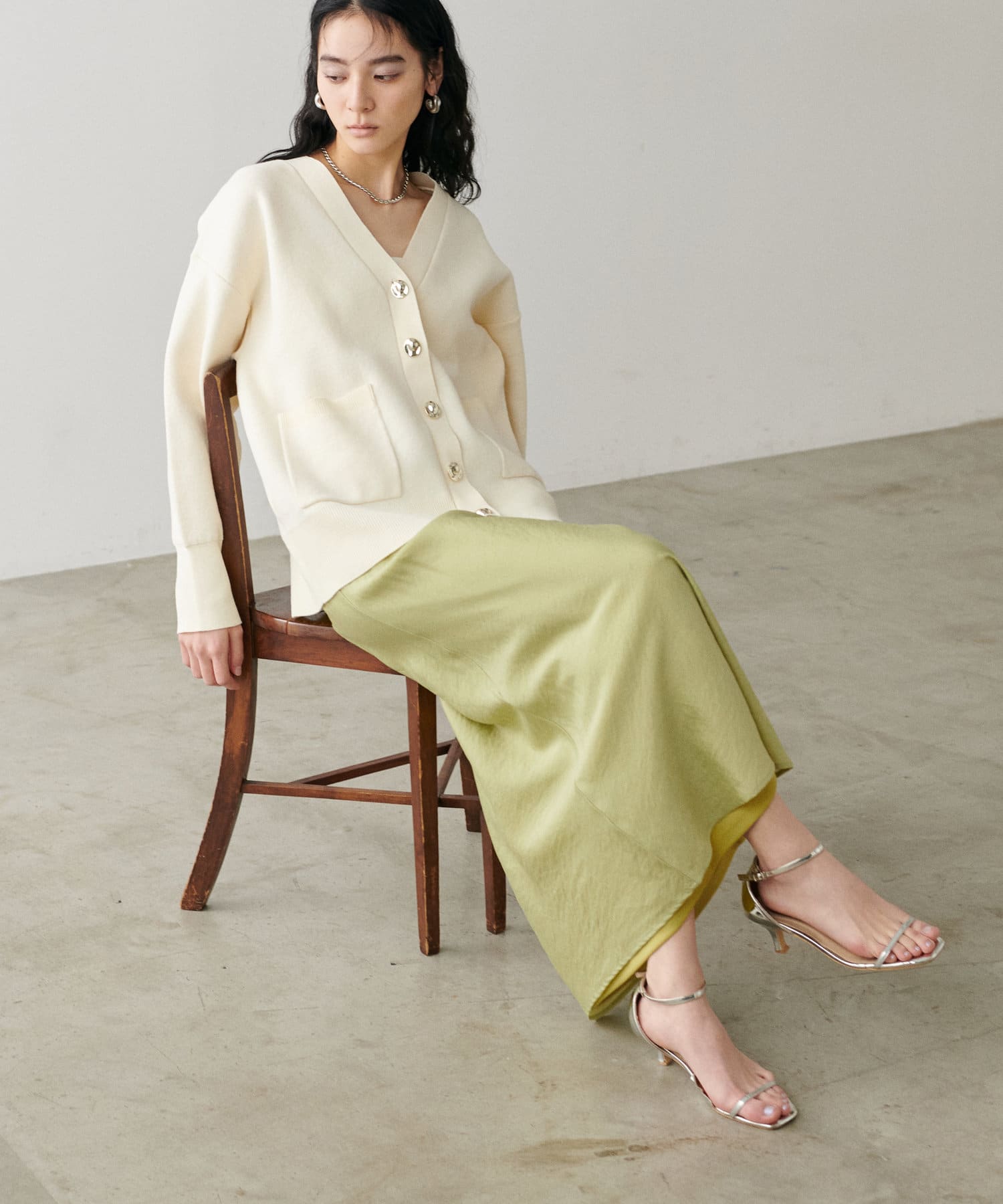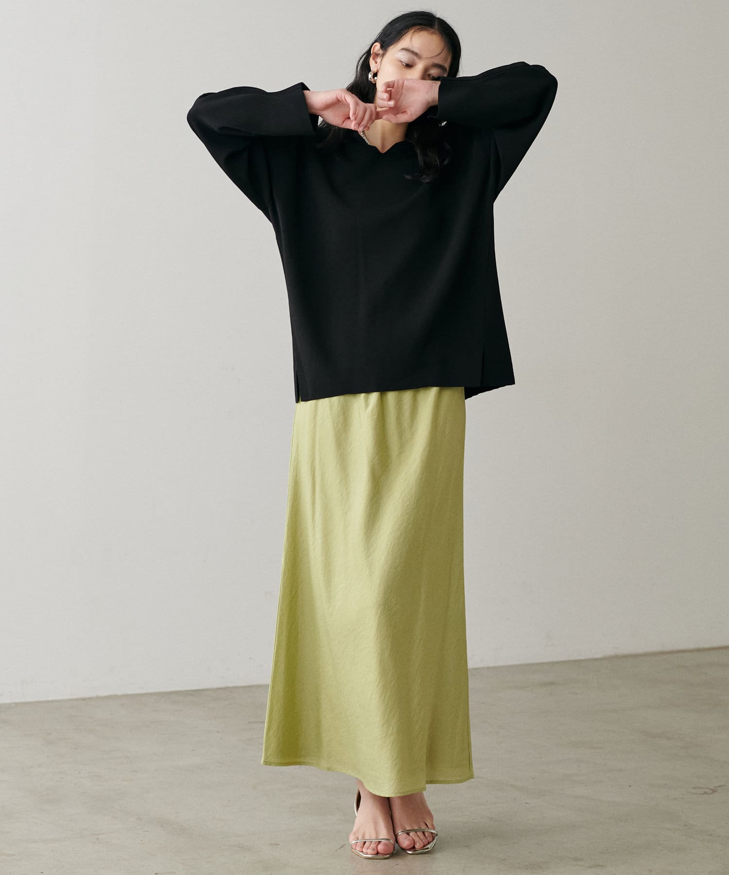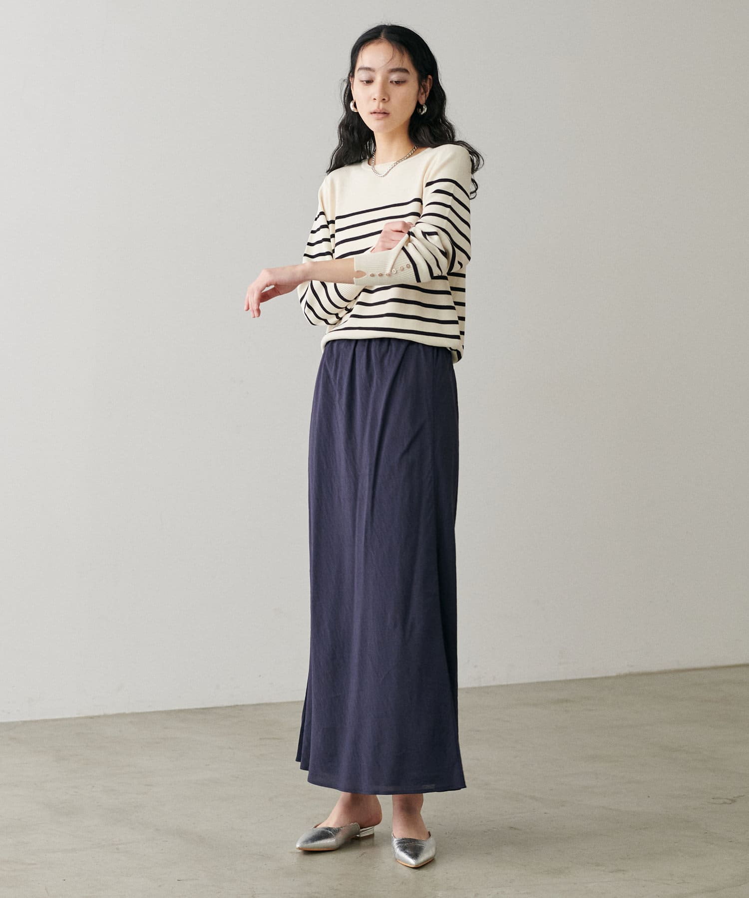 程よく身体のラインに沿って、裾に向けて緩やかに広がるナローシルエットは、