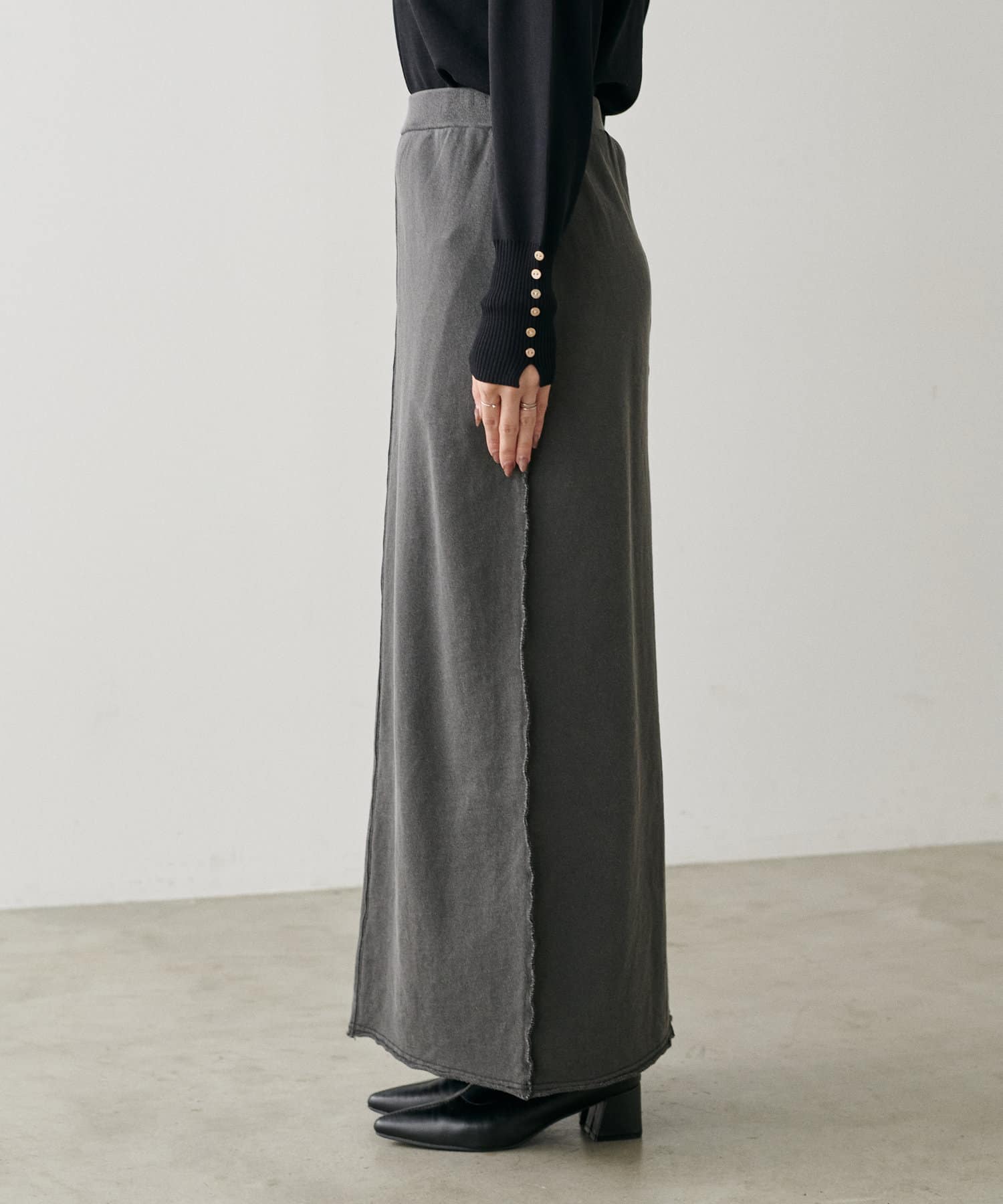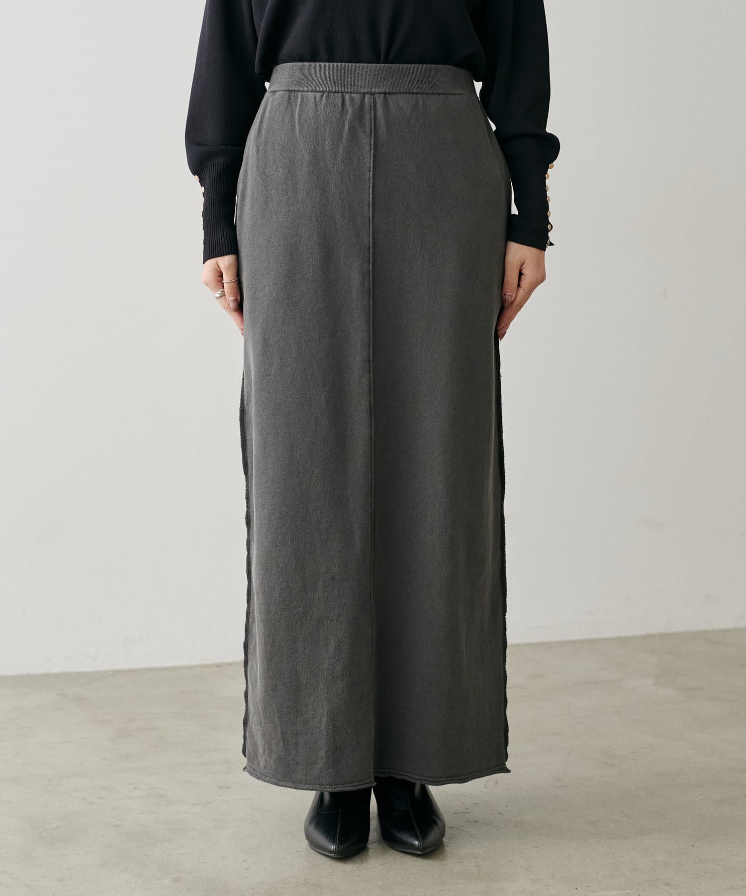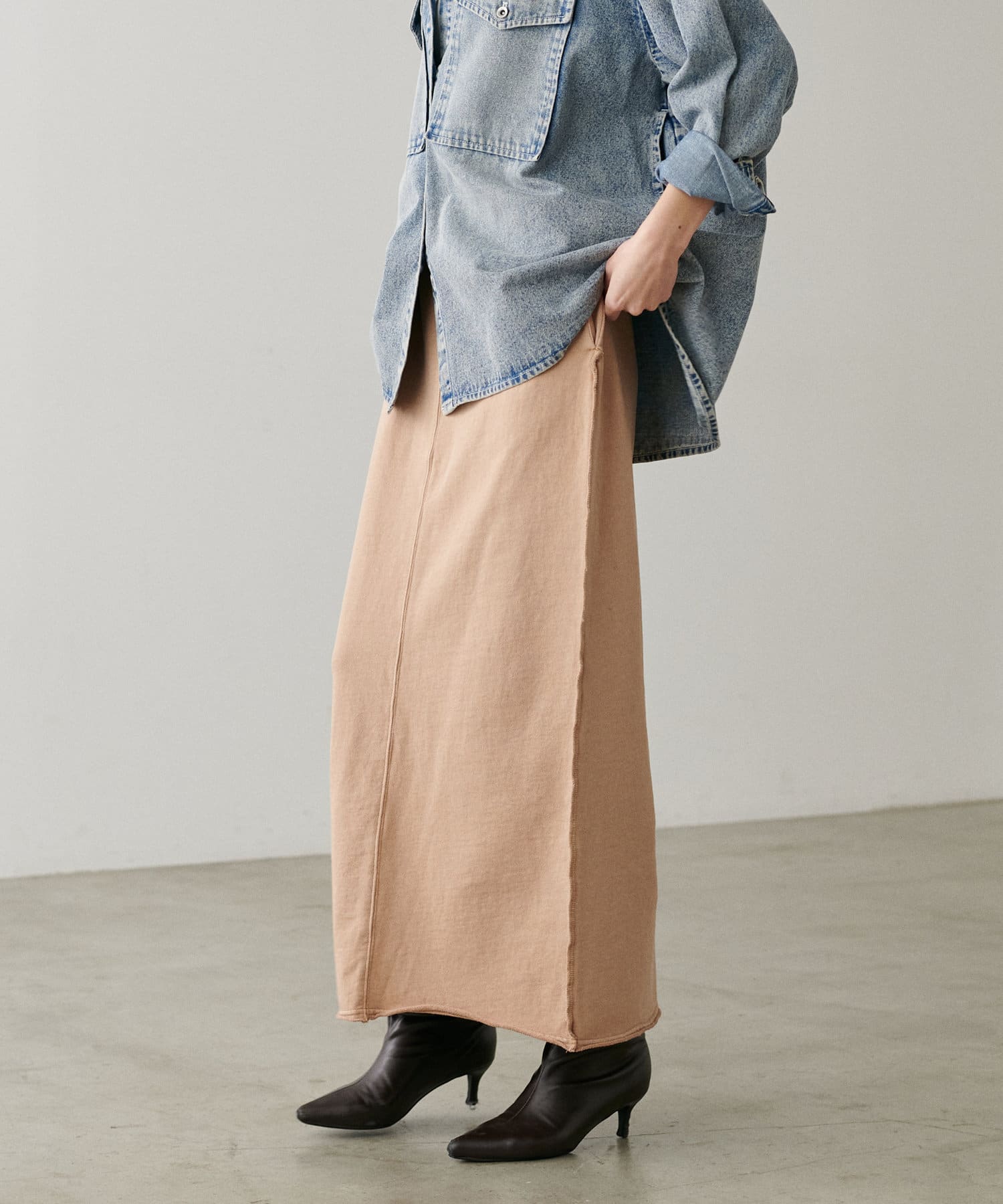 締め付けのないIラインのシルエットなのでラクチンな着心地です。