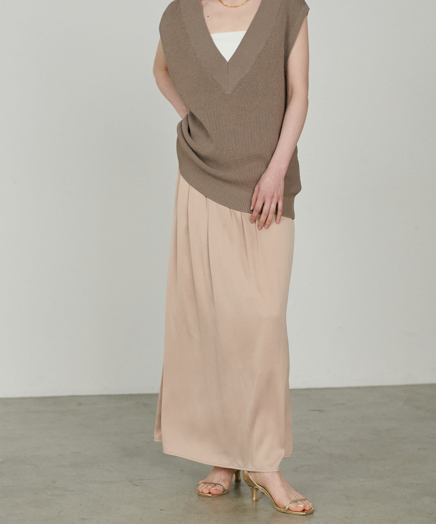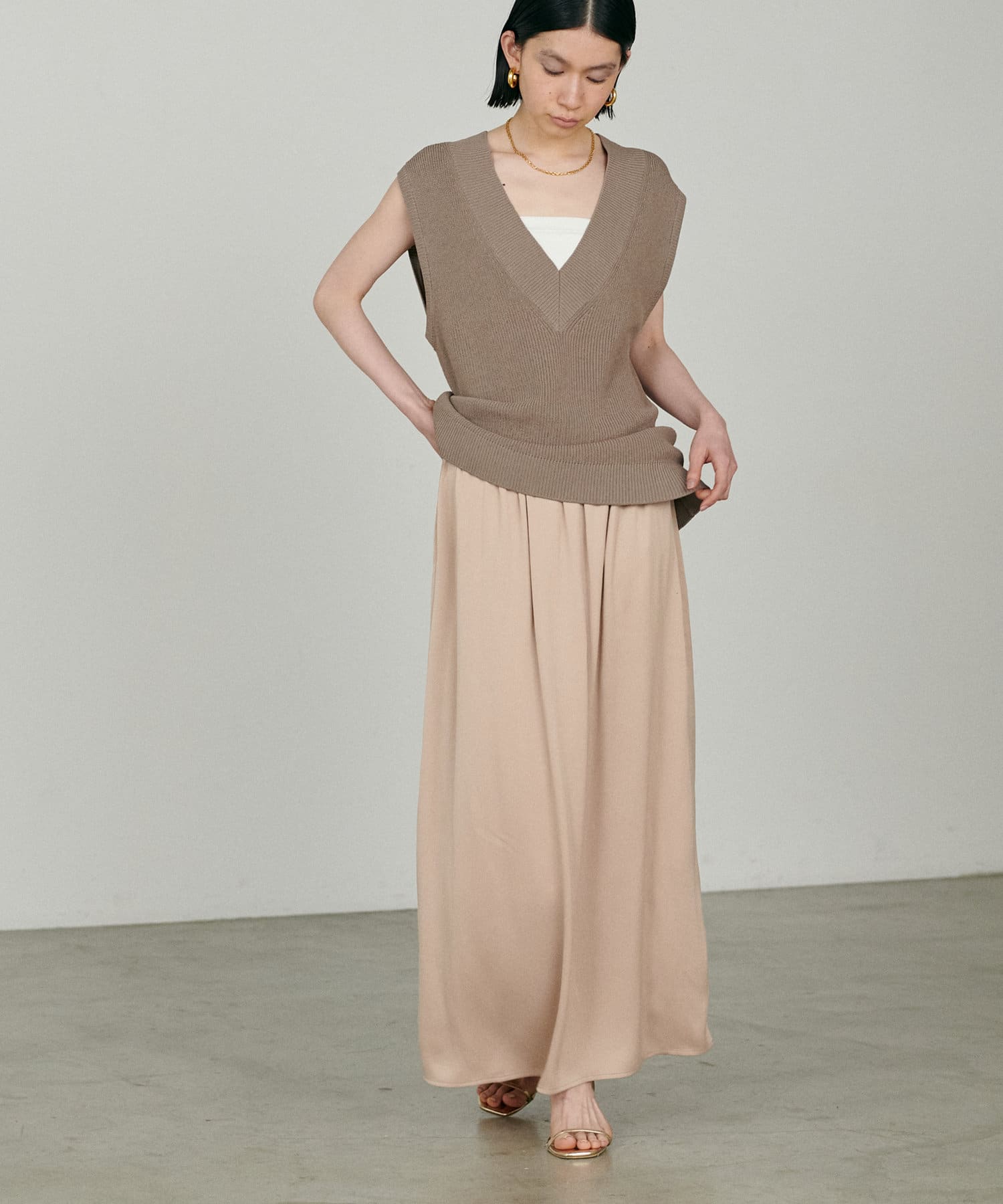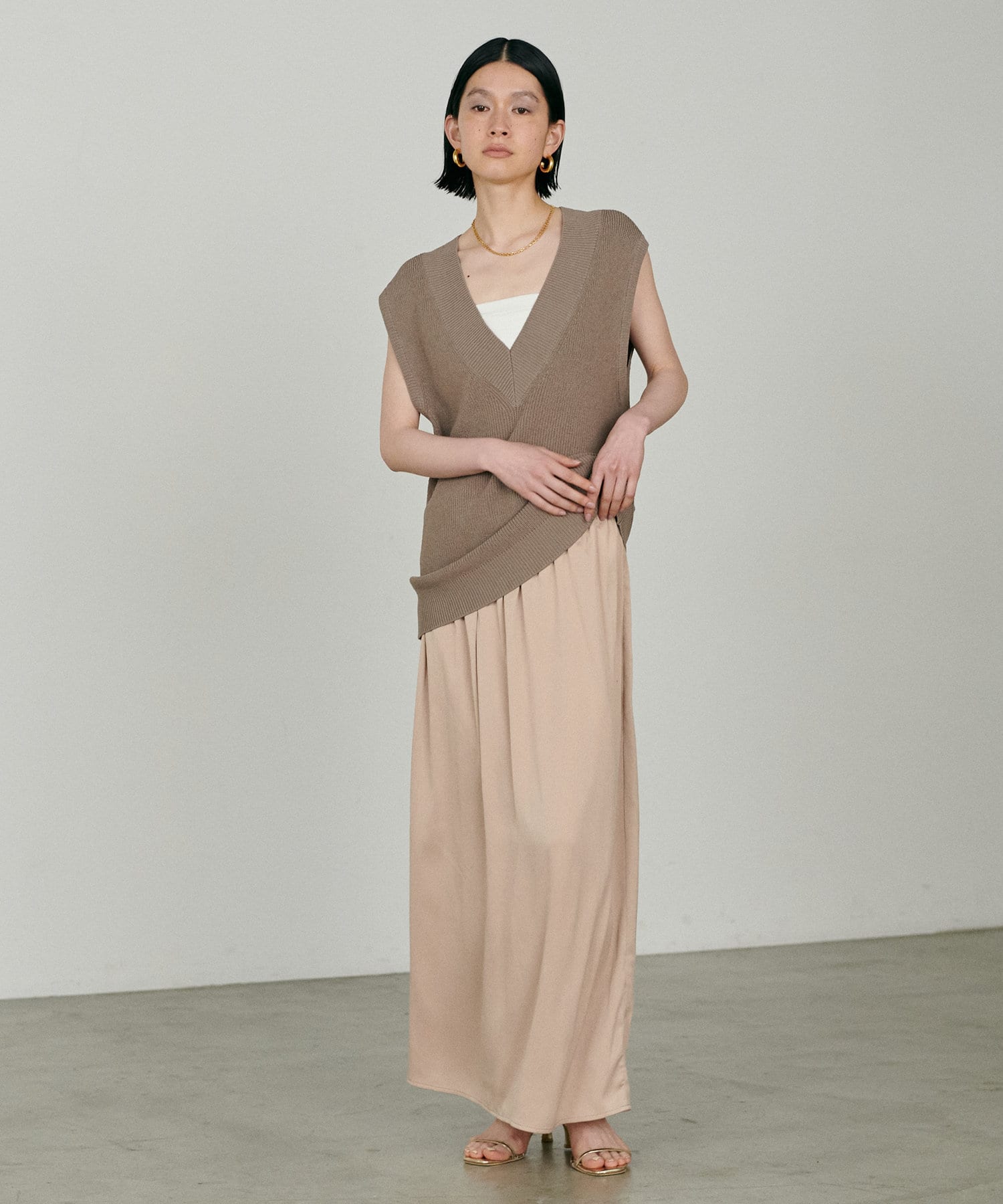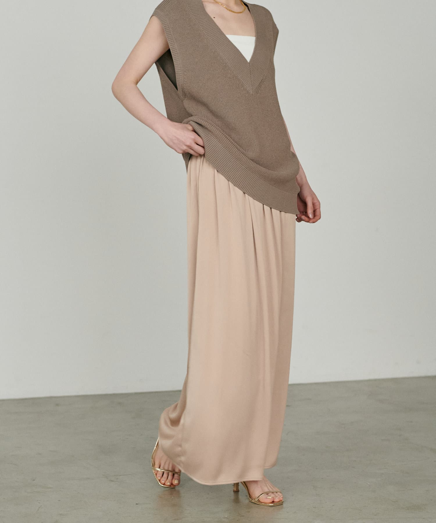 同素材の 3051040310 サテンドレープ2Wayキャミ とのセットアップ着用が可能。