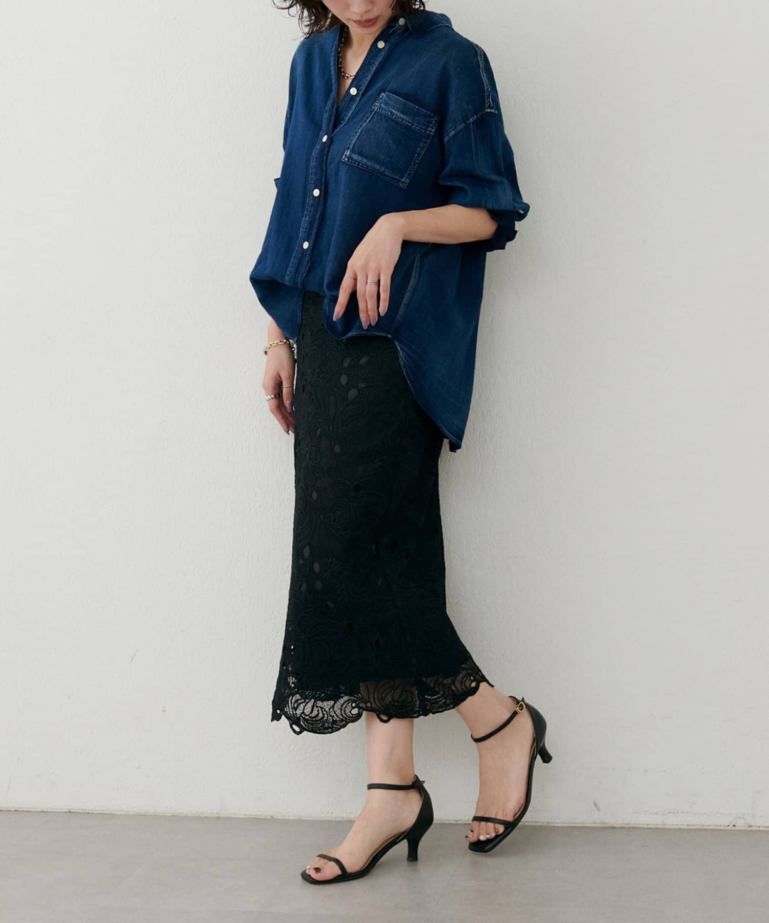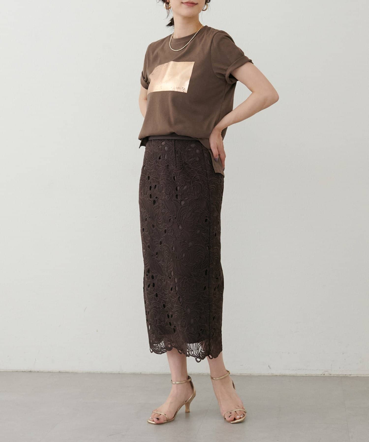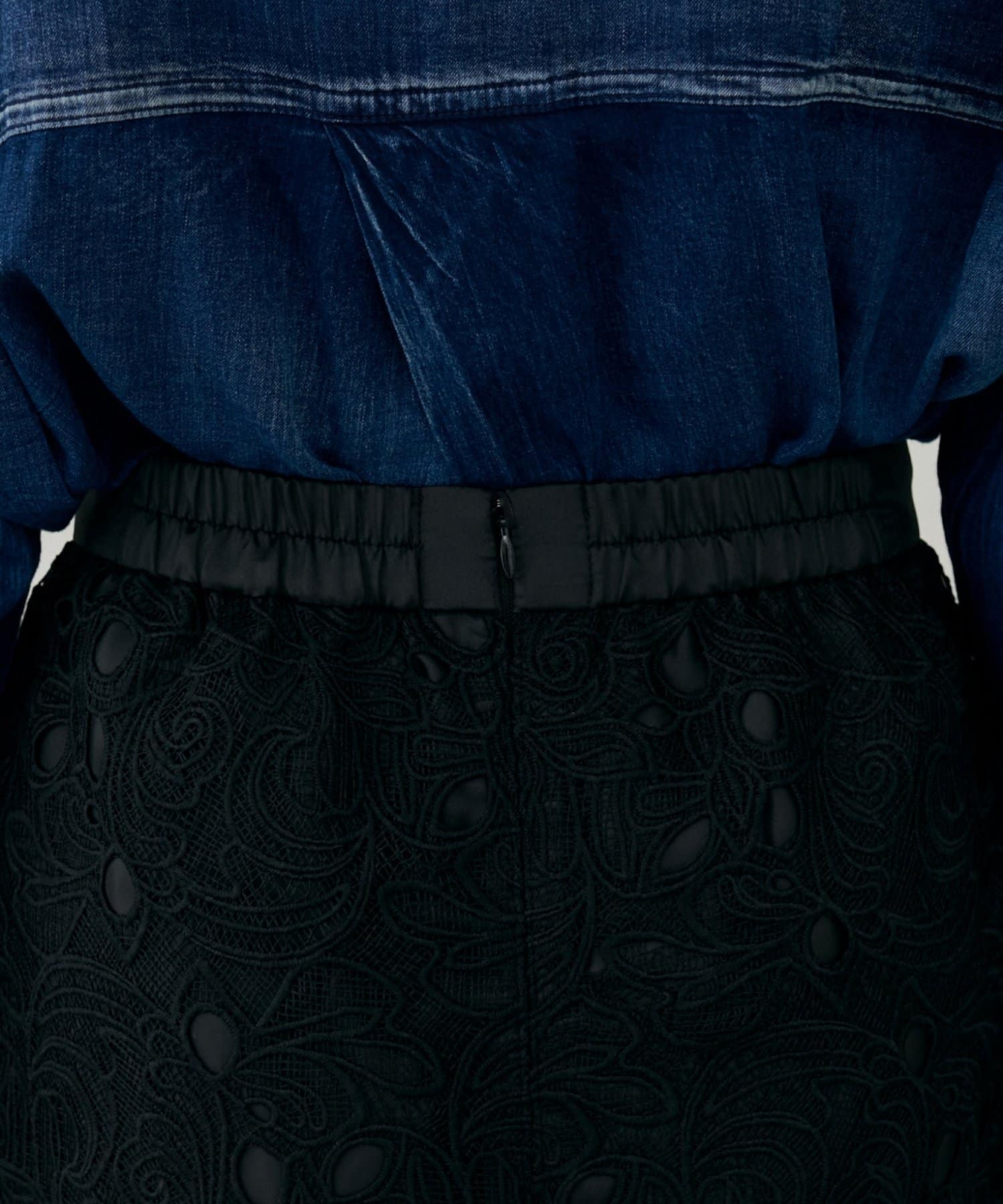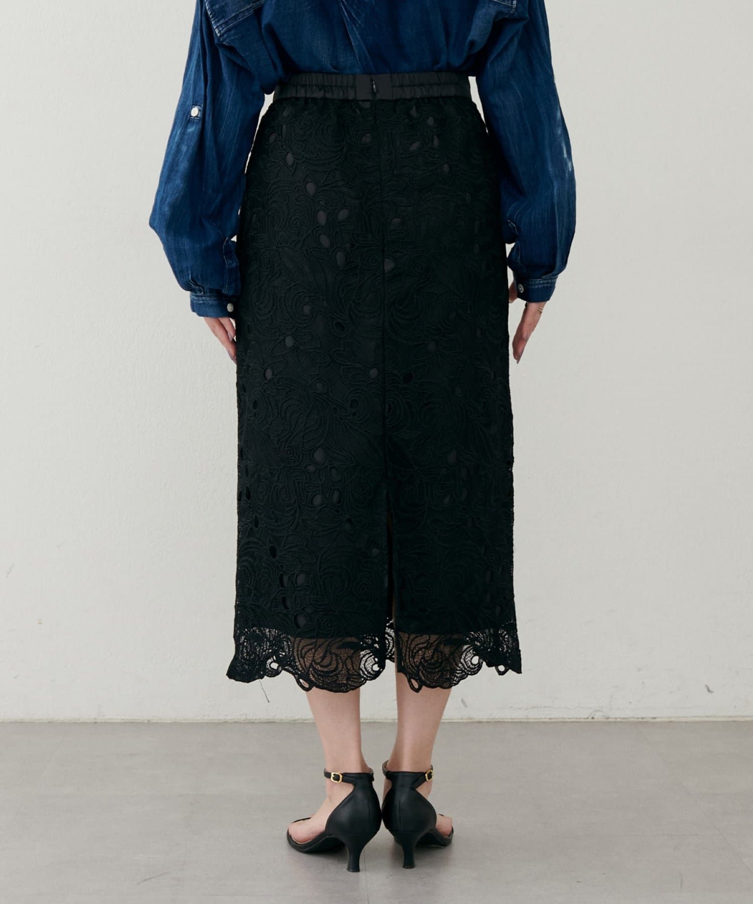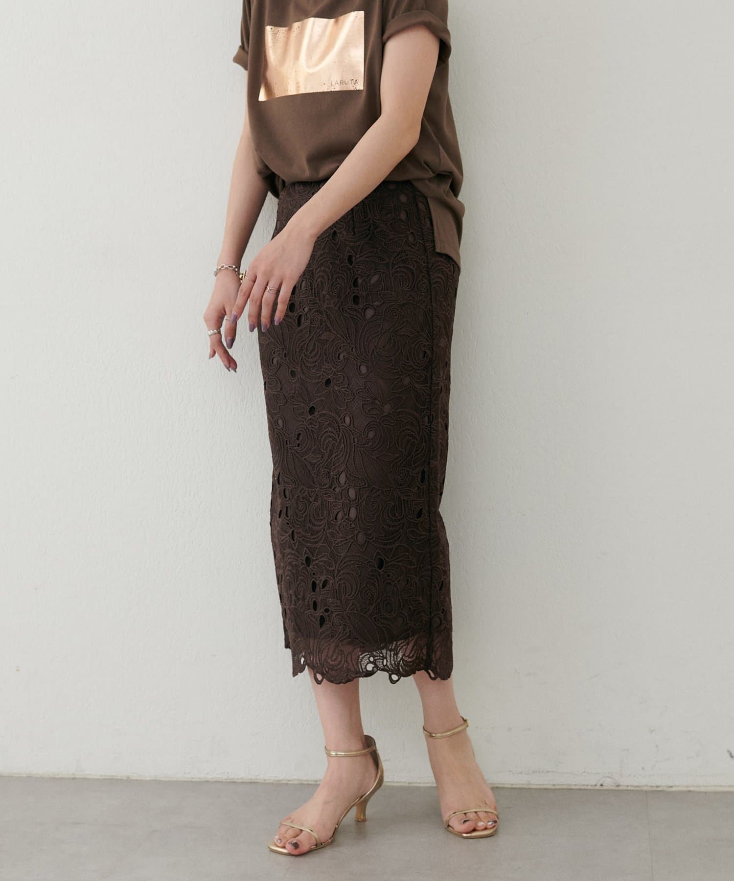 スカート全体に施されたフラワーレースは、甘すぎない大人のためのデザイン。