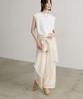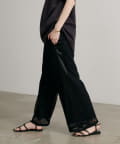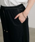 サイドをサテン生地で切り替えることで、さらに上品でこなれた雰囲気に。