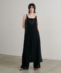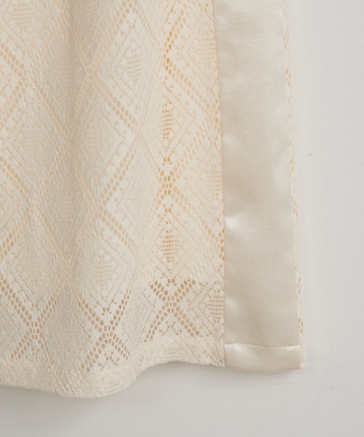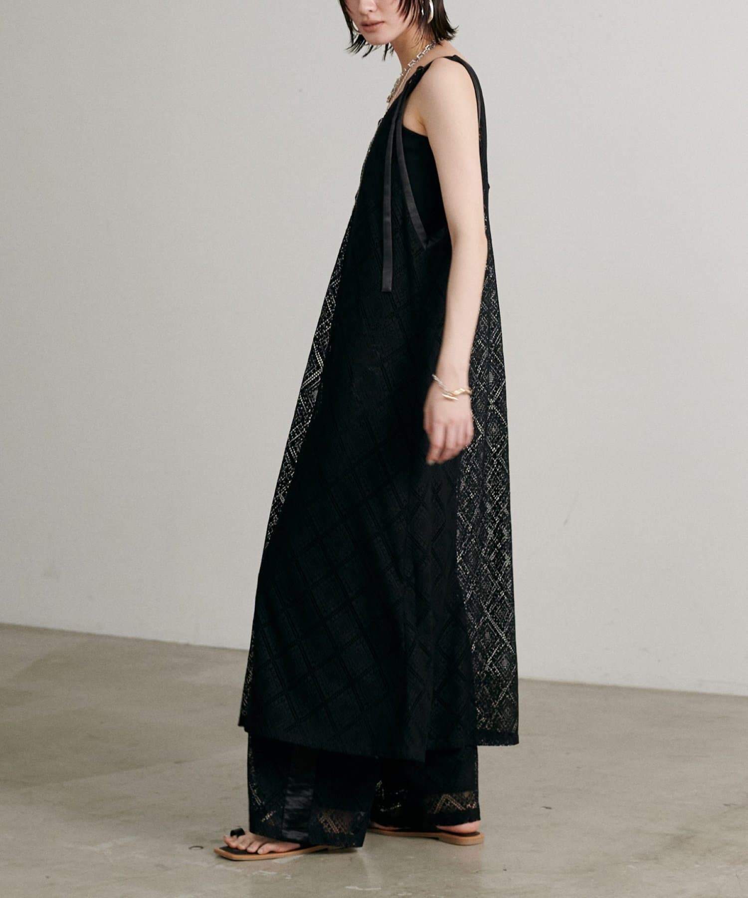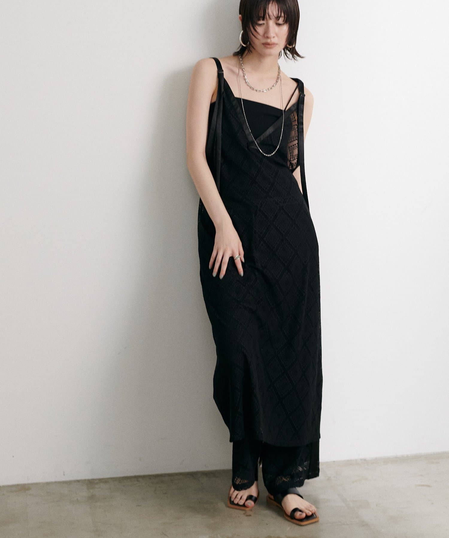 同素材を使用したひし柄レースワンピと合わせたセットアップ着用もおすすめ。