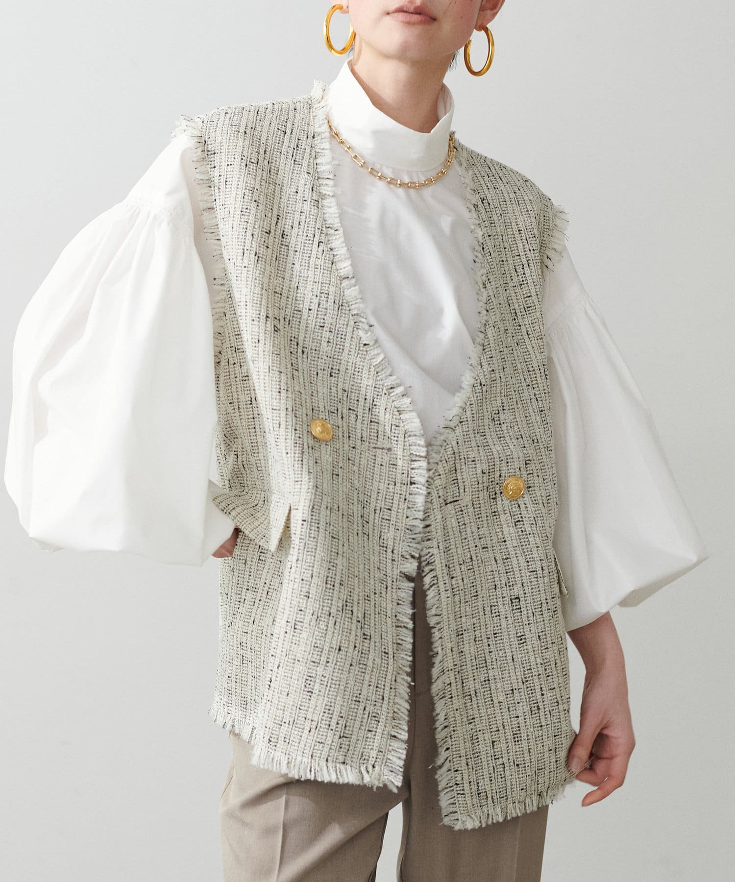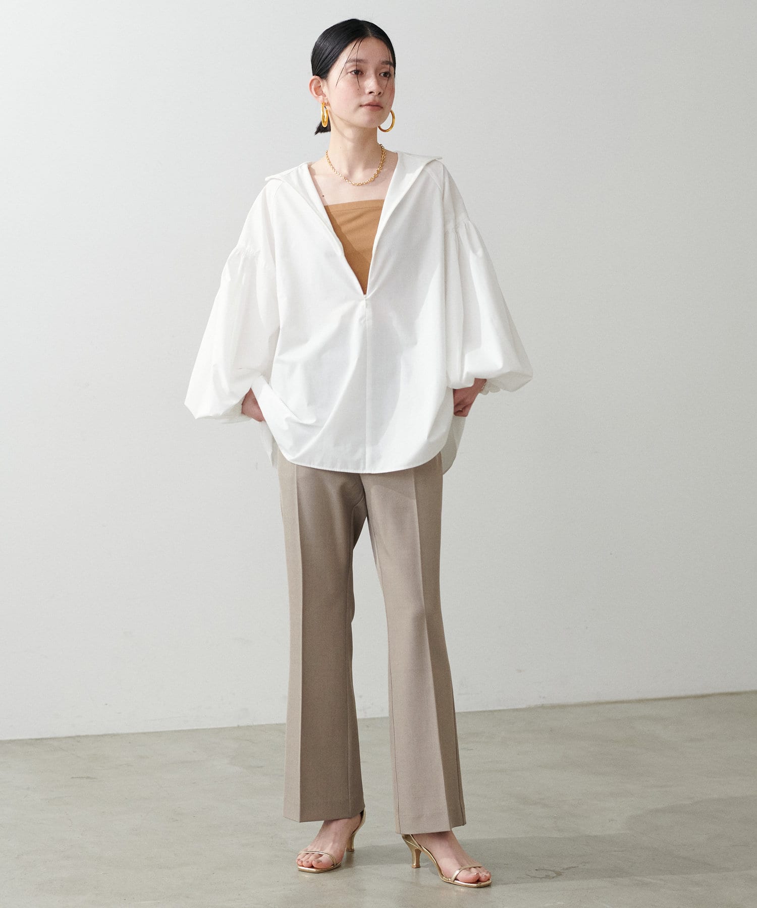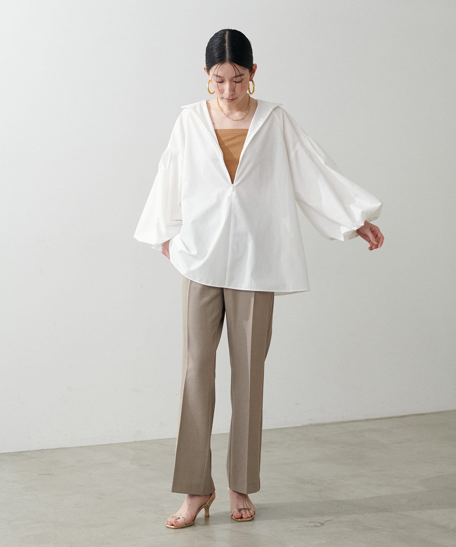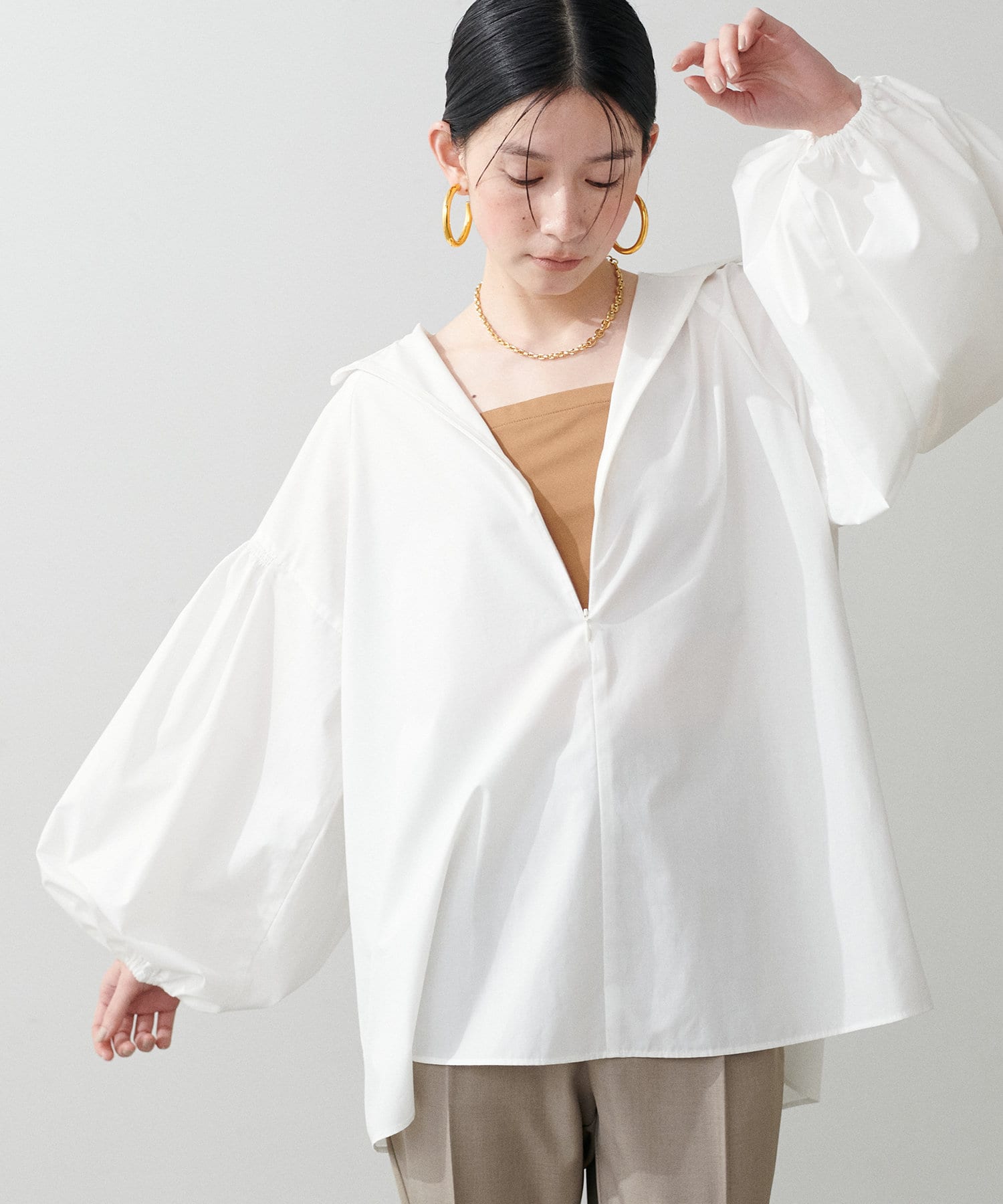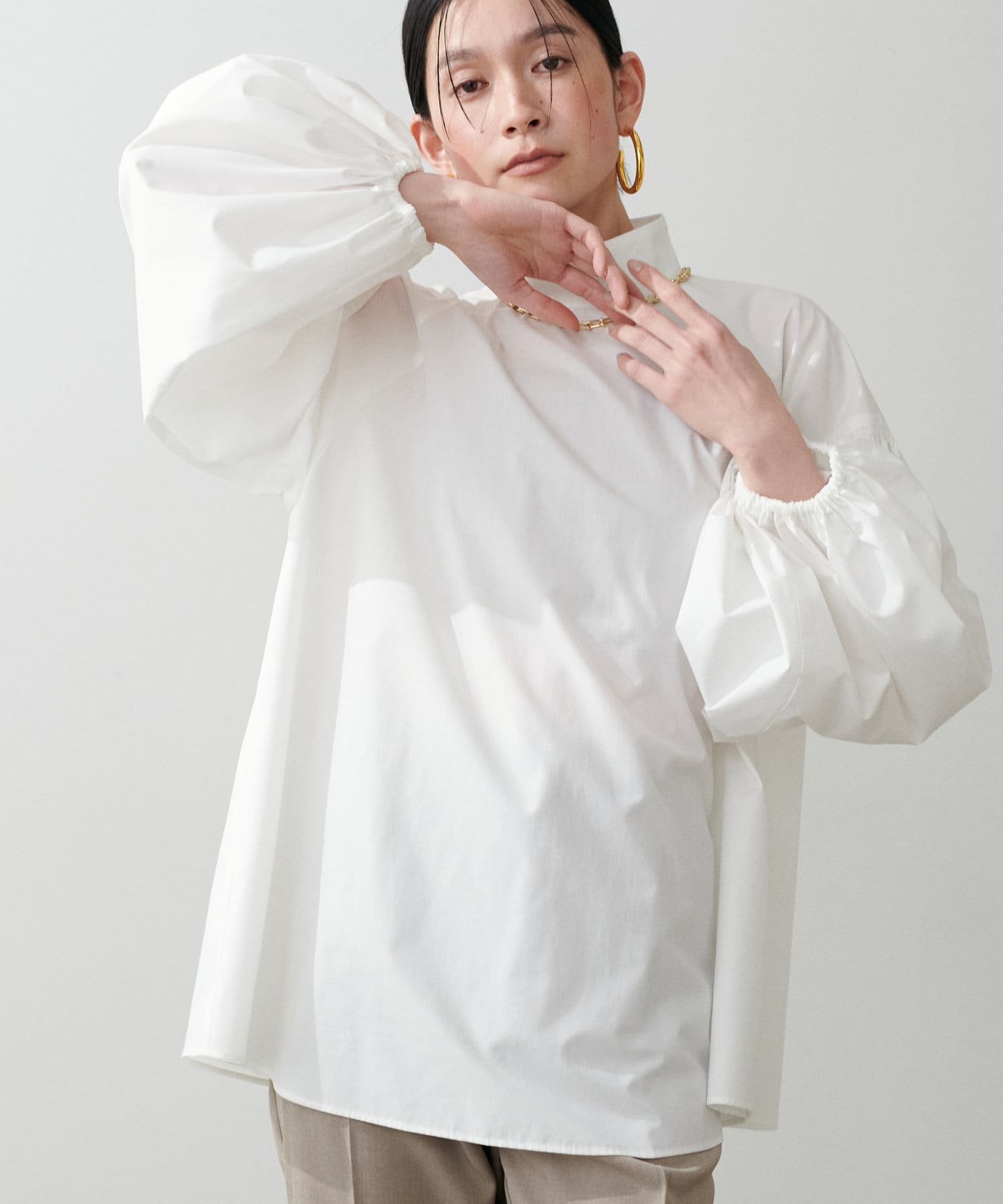 たっぷりとしたお袖のシルエットはコーデを女性らしく仕上げてくれる
