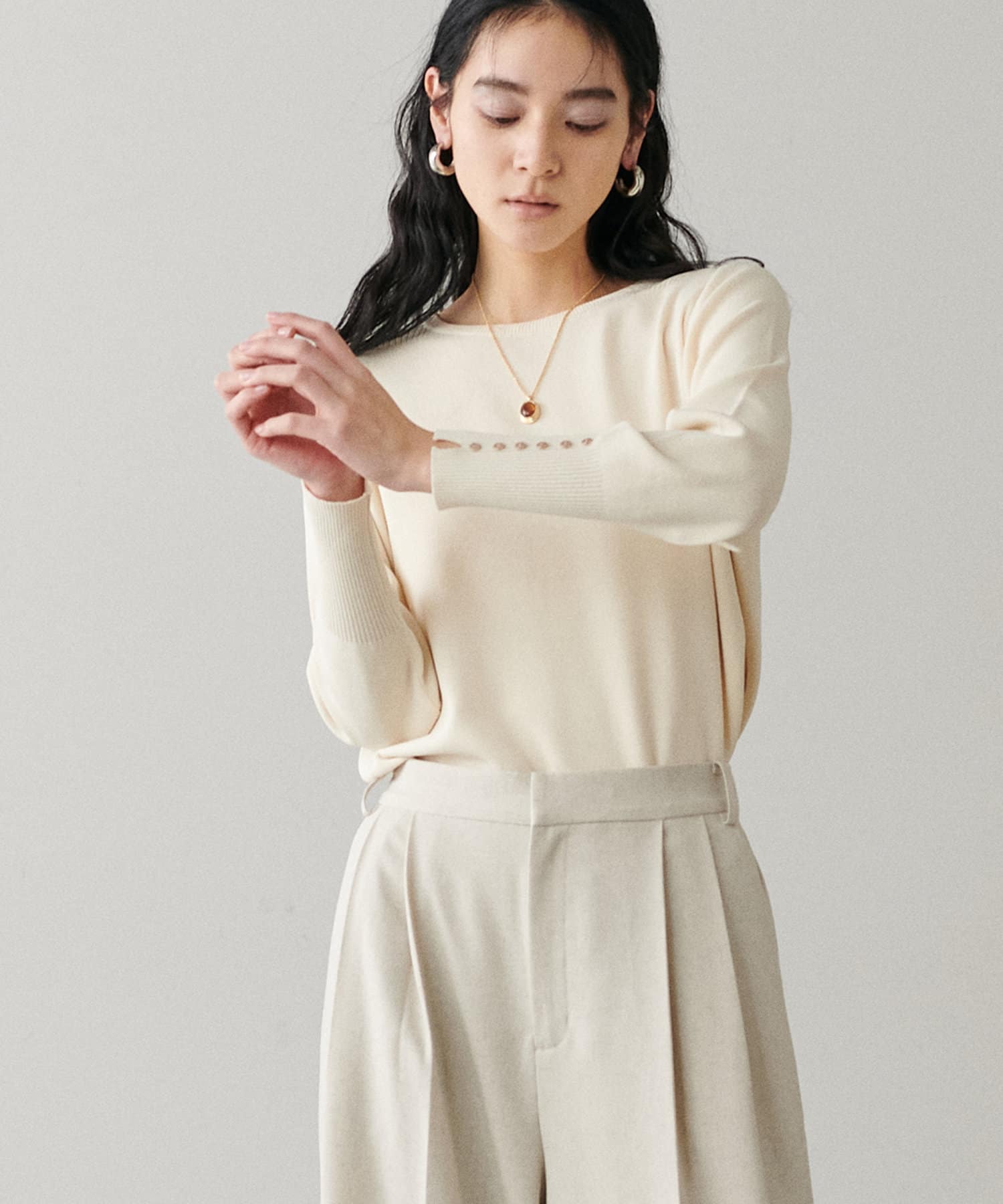 落ち感のある滑らかな生地を使用したニットプルオーバーが登場。