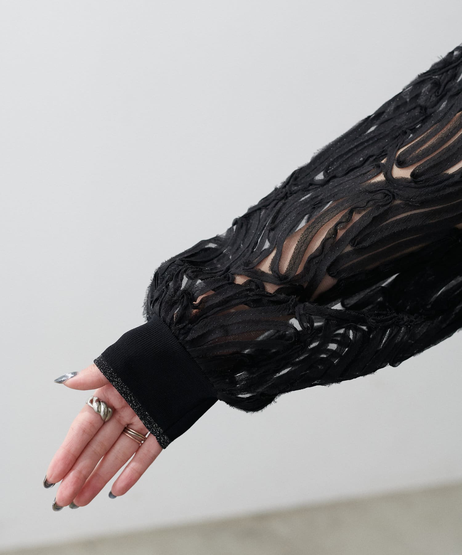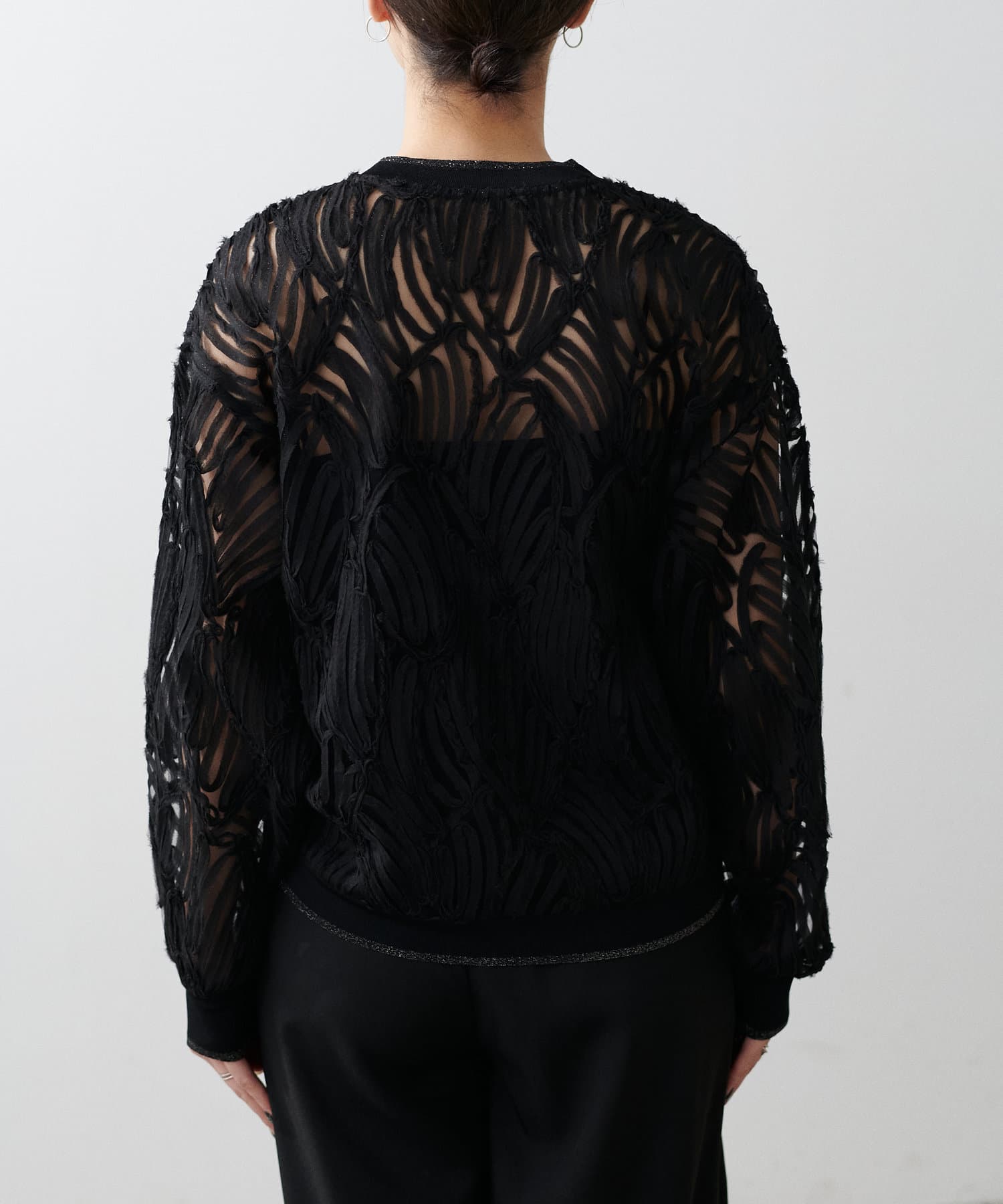 生地感:繊細なコード刺繍が施されたさらっと薄手で透け感のある軽い素材感