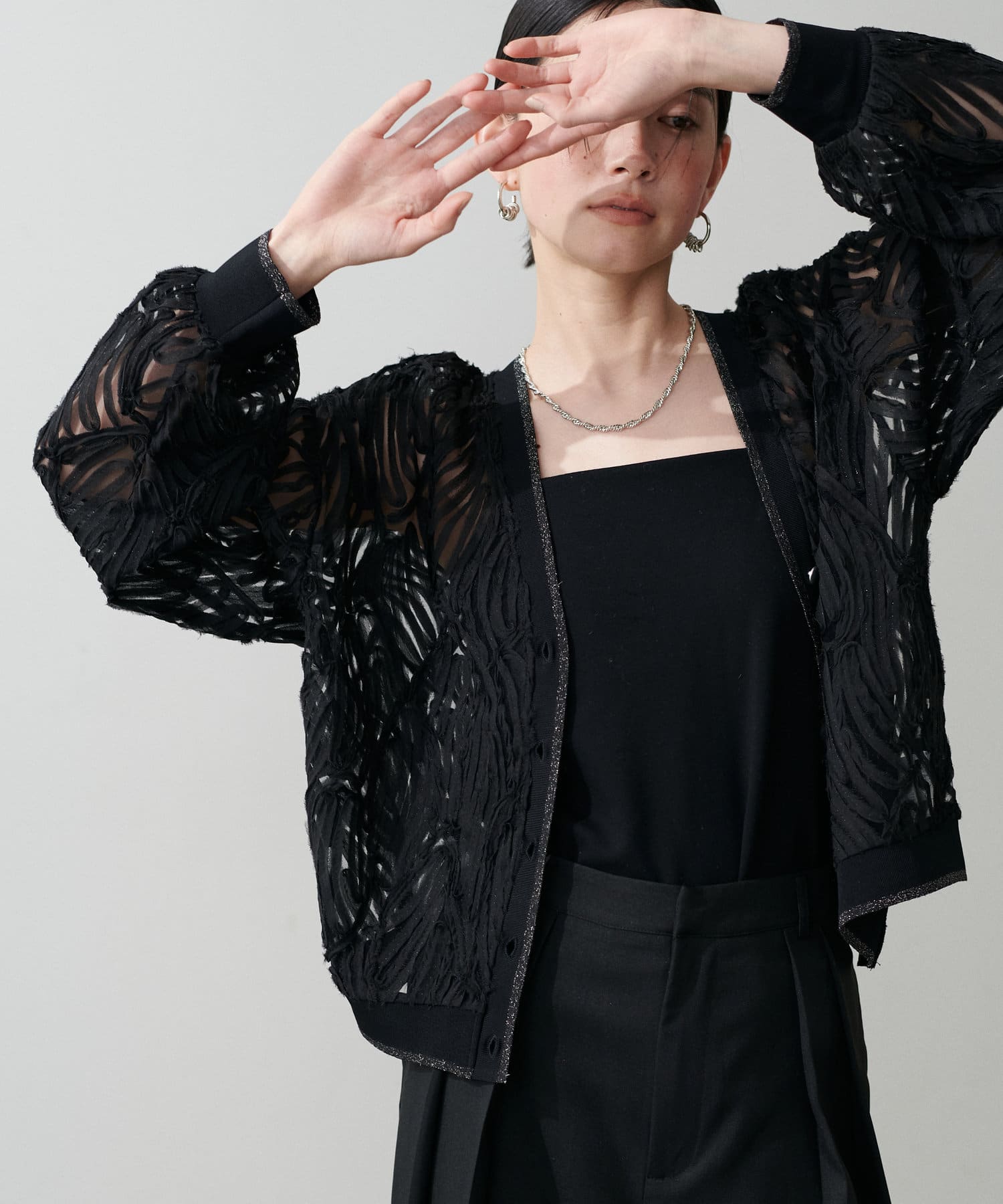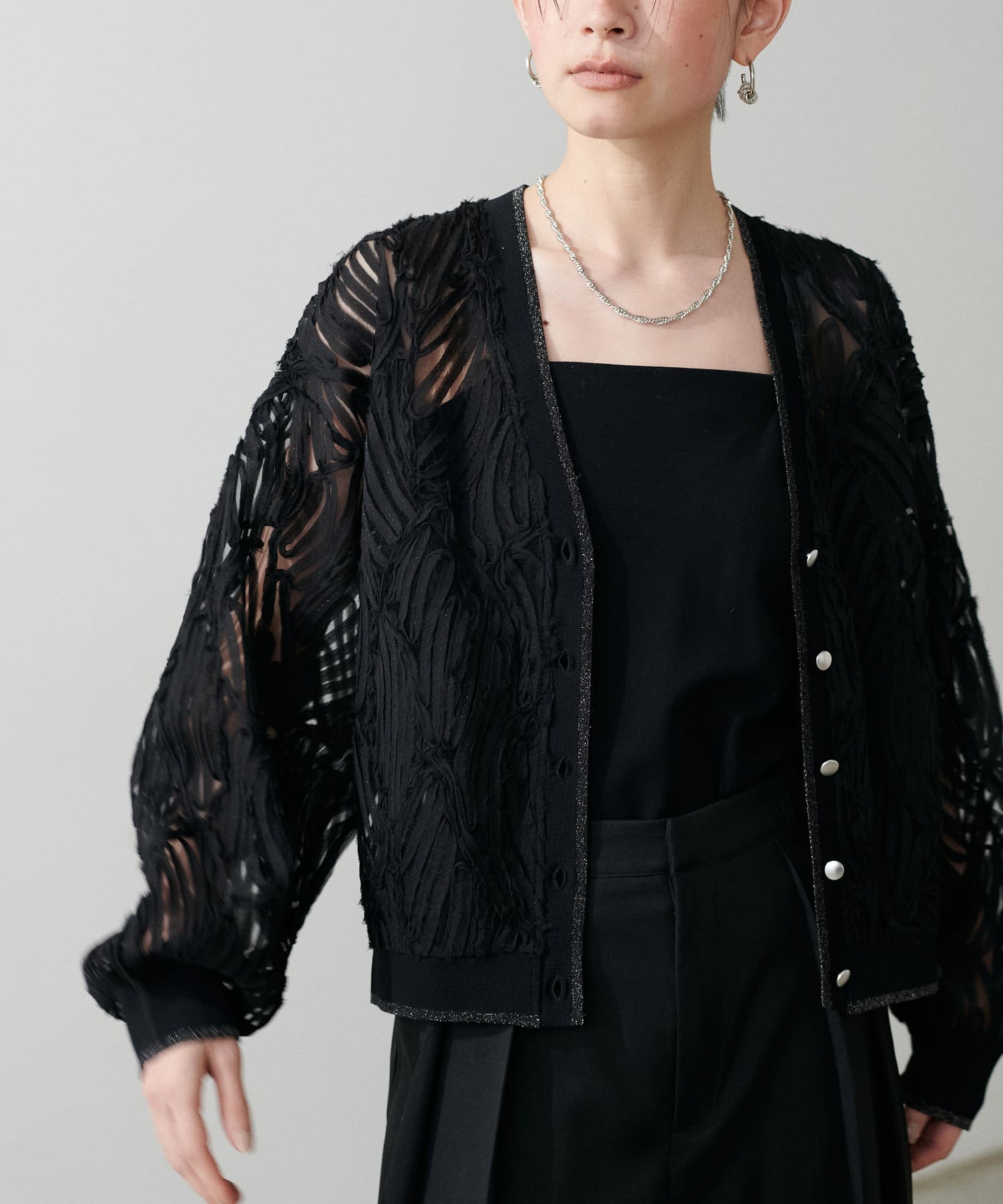 繊細なコード刺繍がポイントのVネックカーディガン。