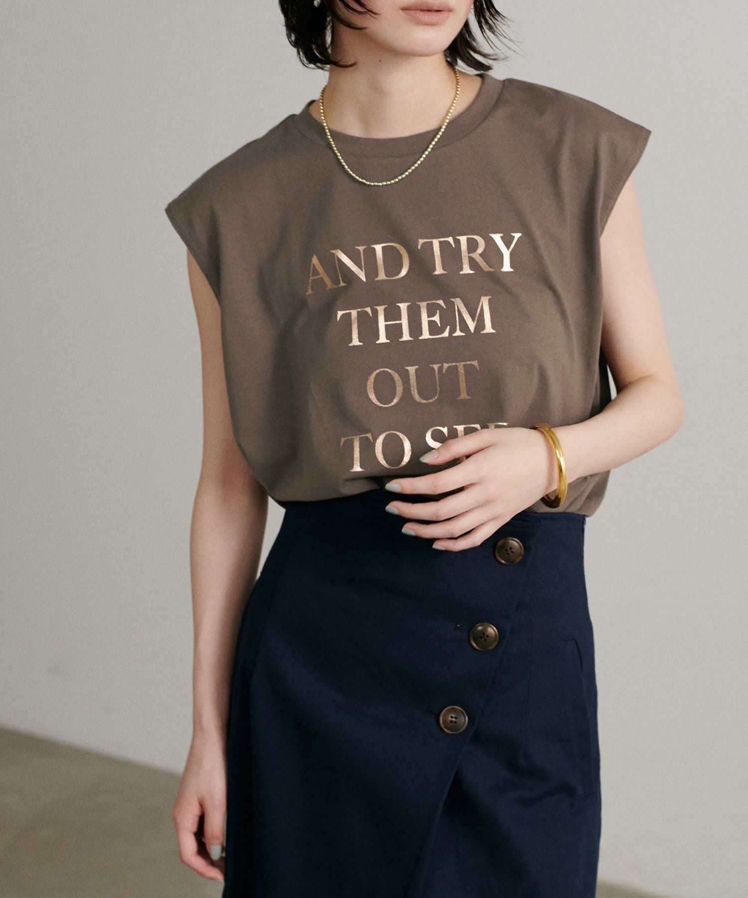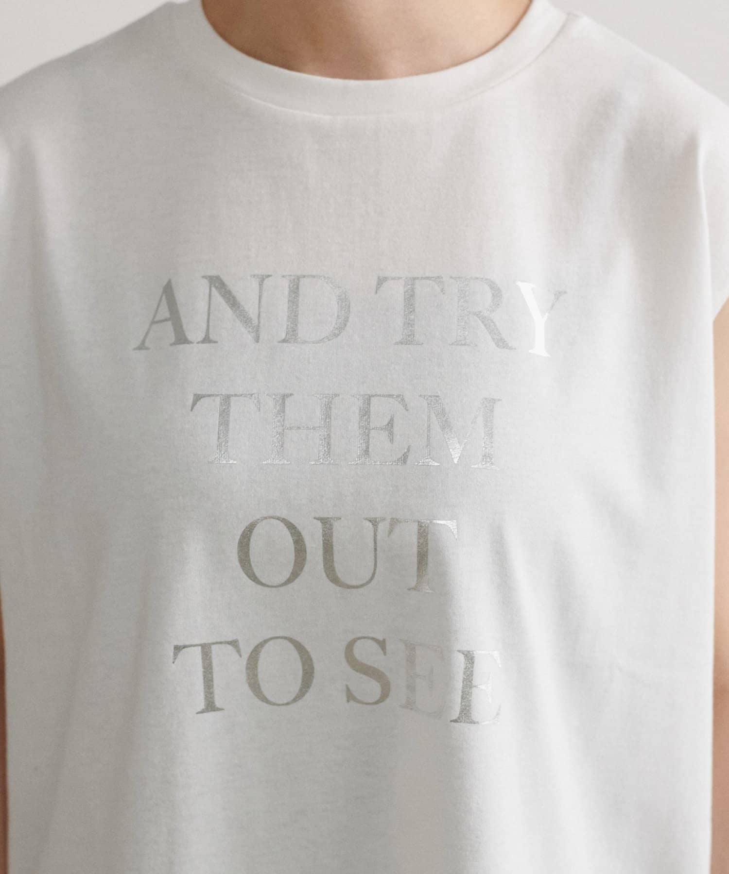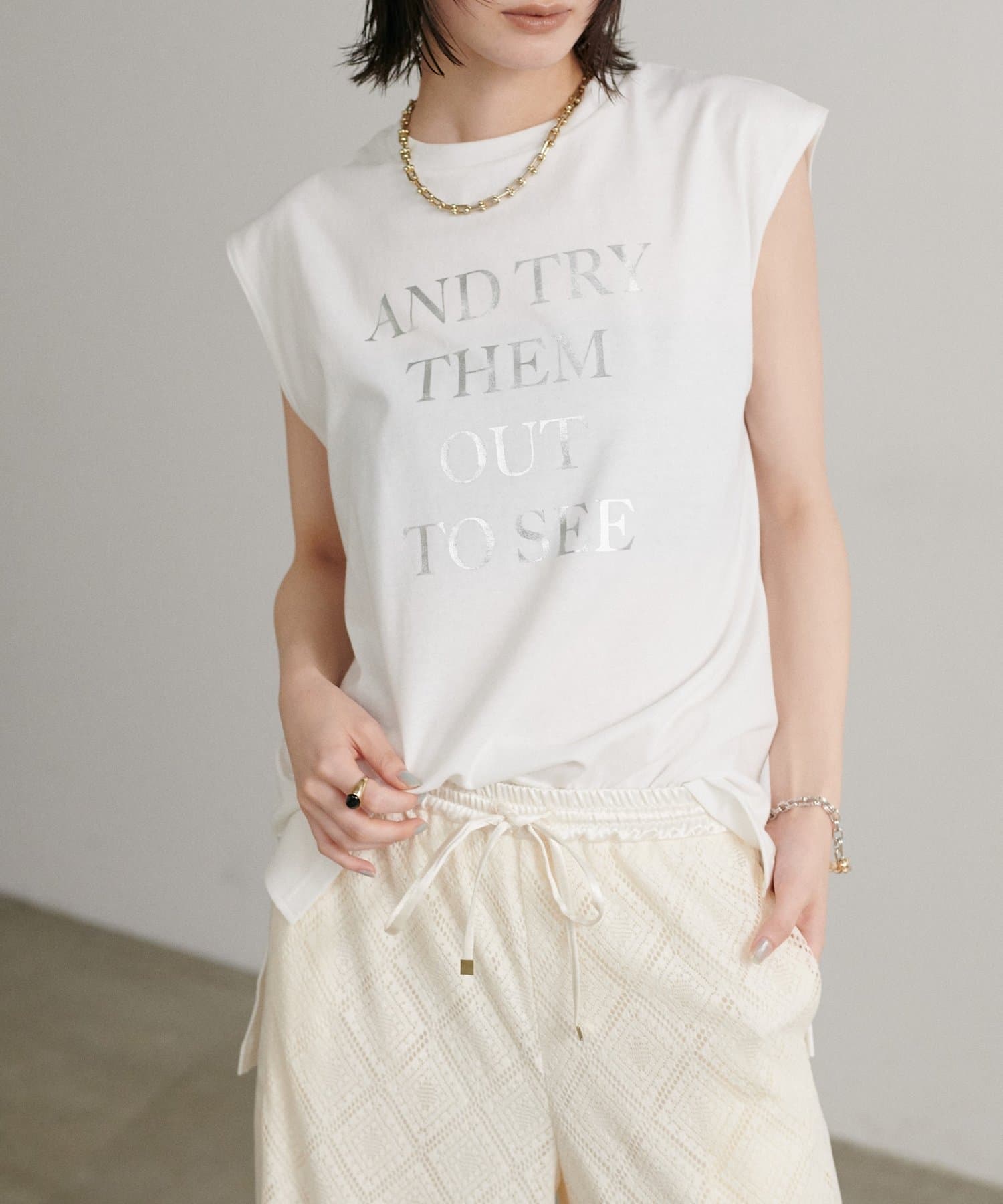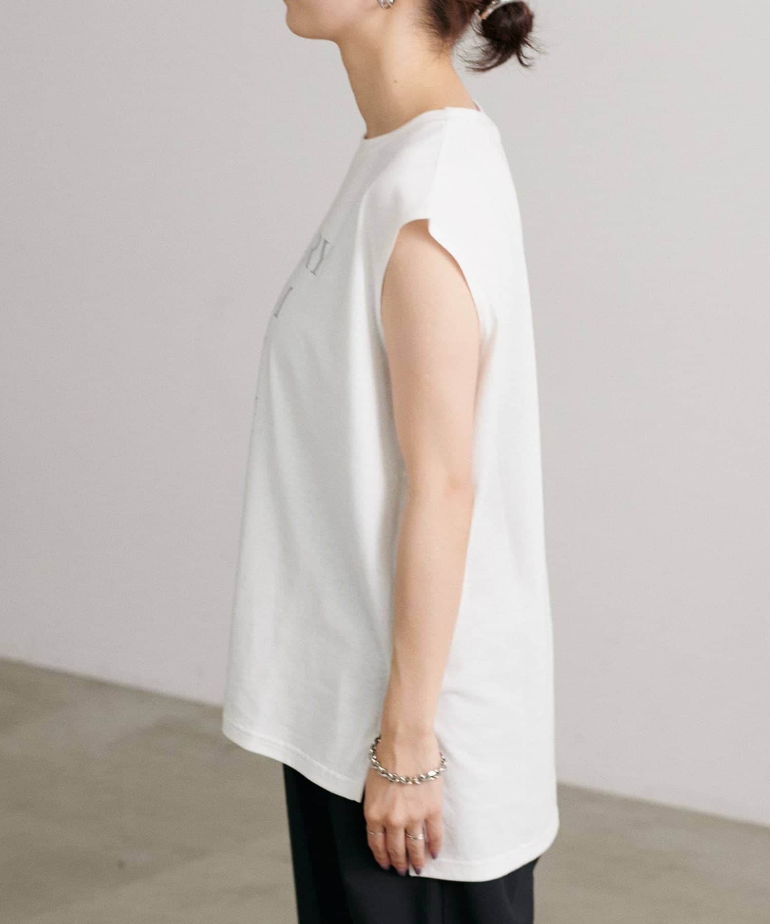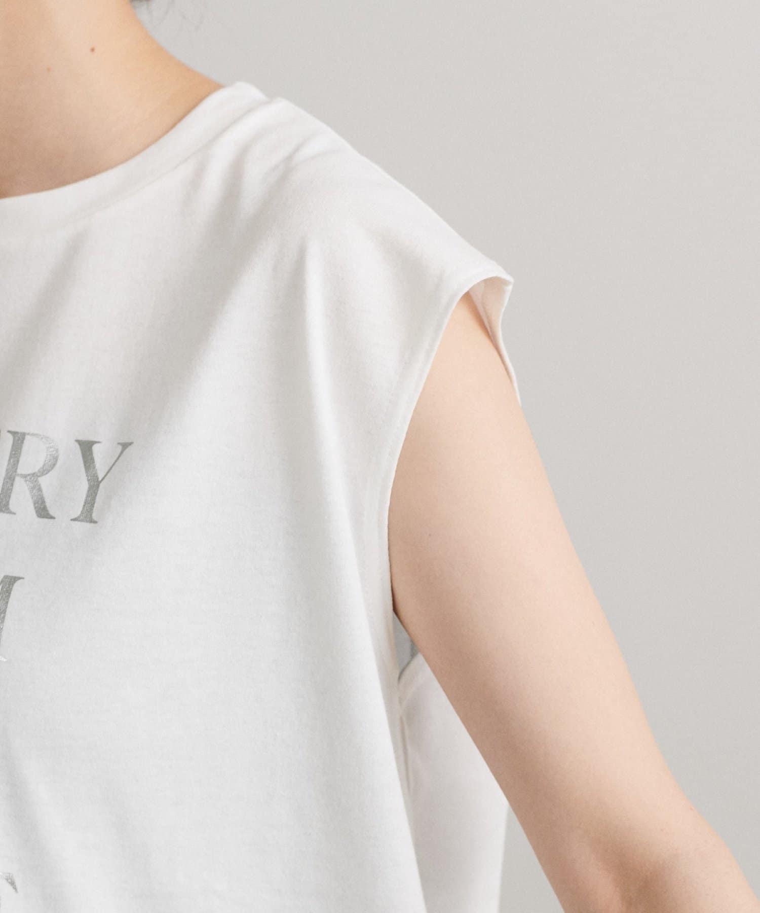 汗を気にせずおしゃれを楽しめる、フレンチノースリーブロゴTシャツ。