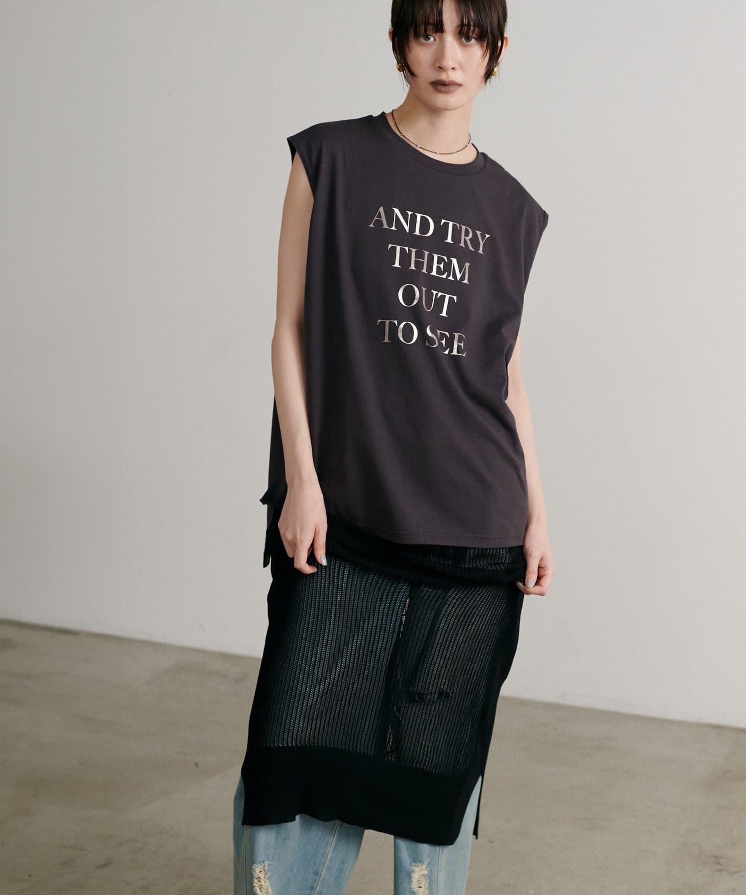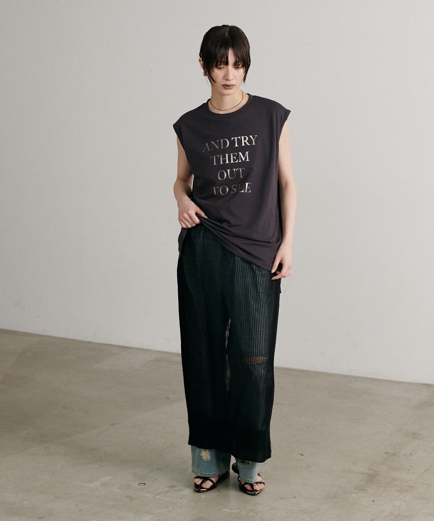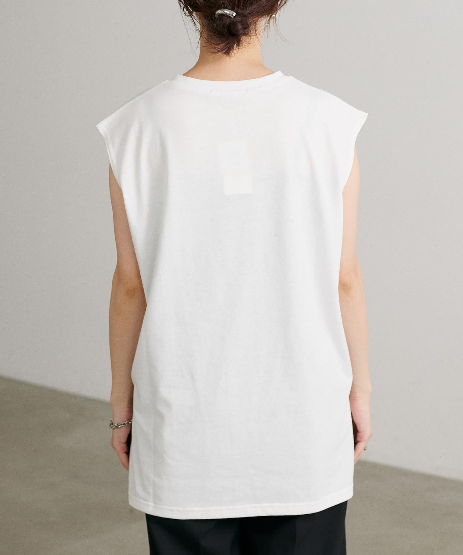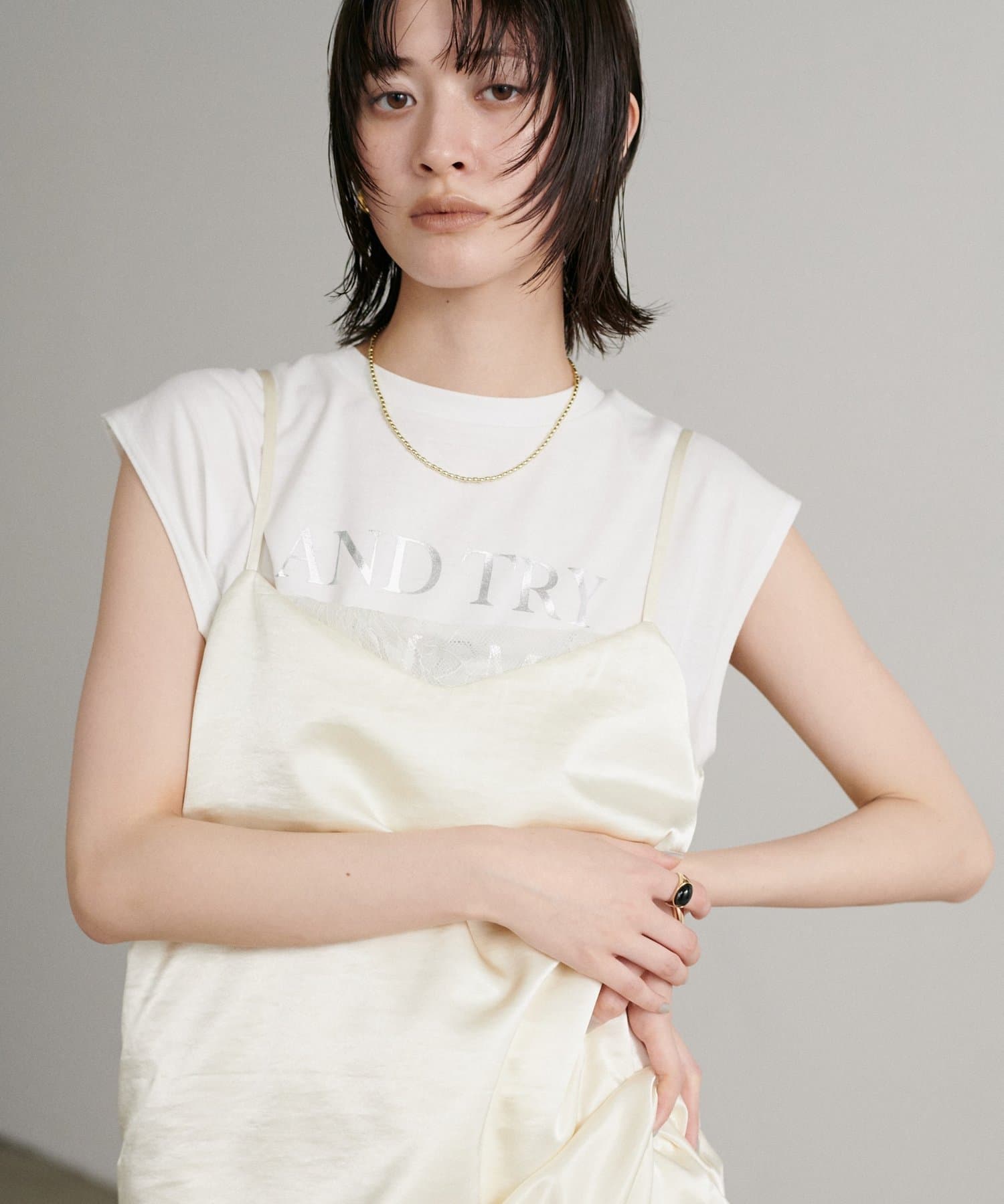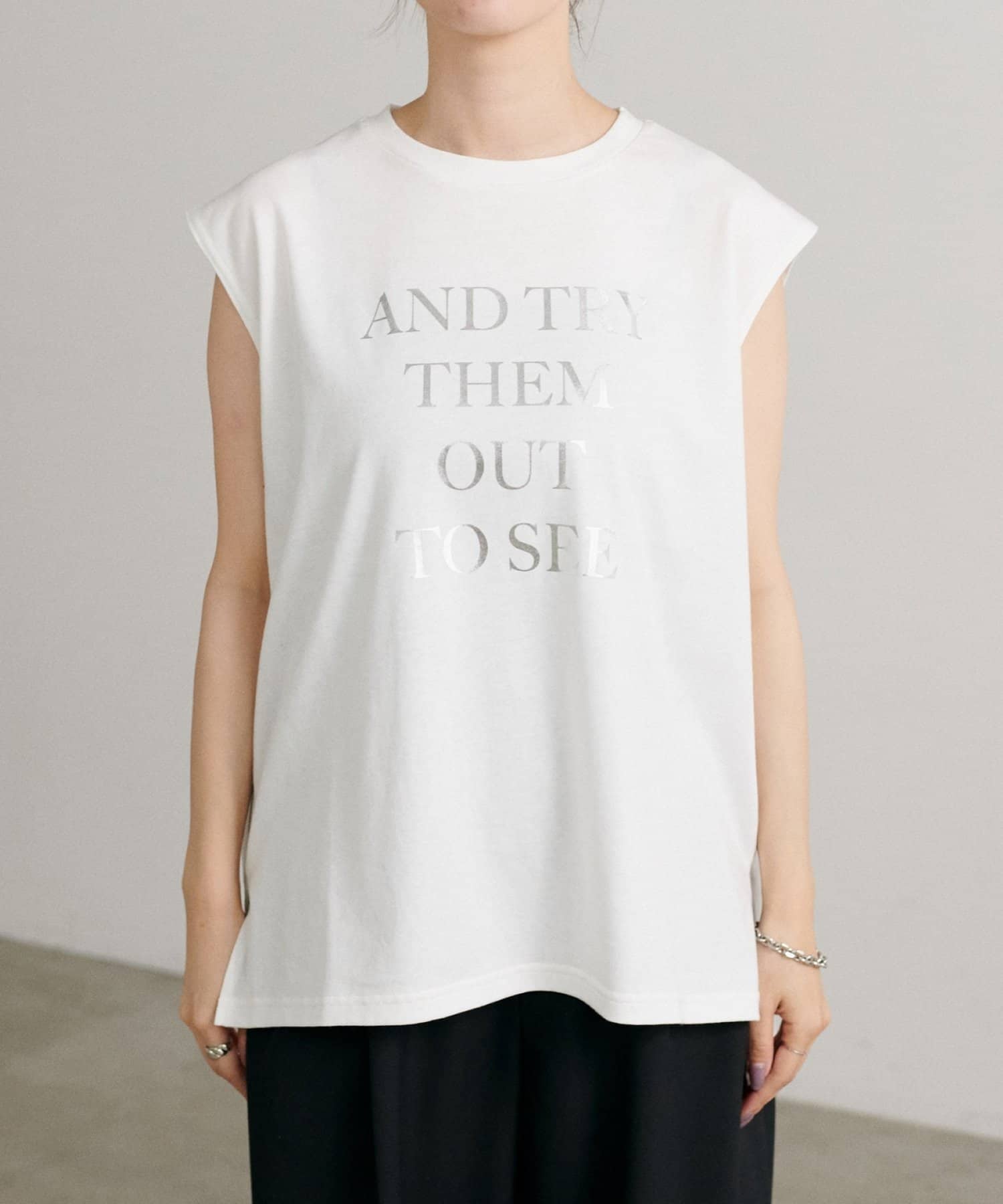 汗を気にせずおしゃれを楽しめる、フレンチノースリーブロゴTシャツ。