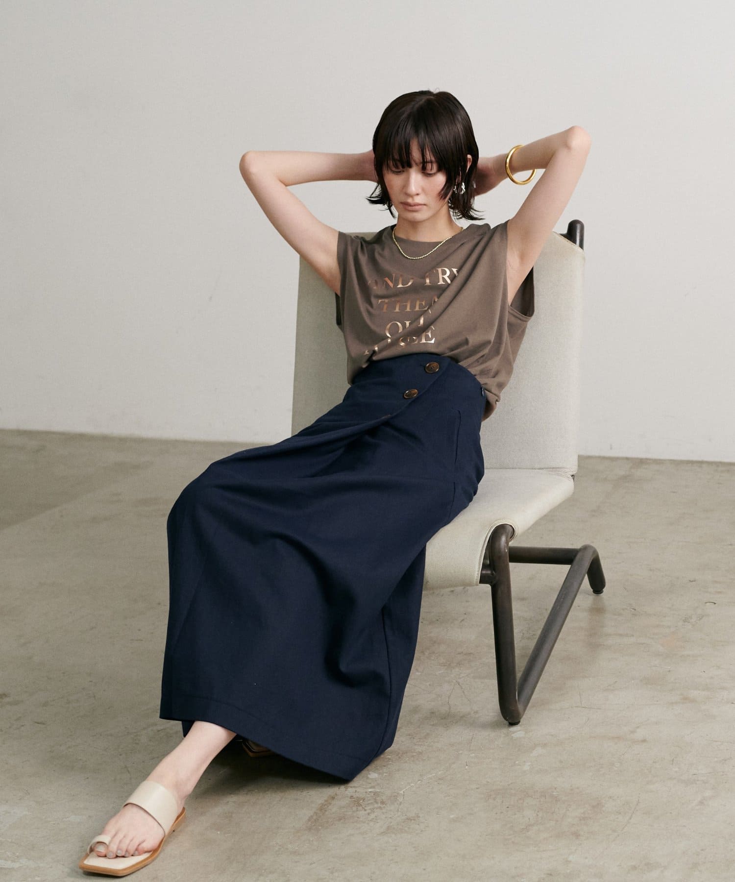 フレアスカートやテーパードパンツと合わせて、オフィスにも対応できるきれいめスタイルに。