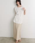 裾に向かってやや広がるAラインシルエットで、体のラインを拾いにくく、