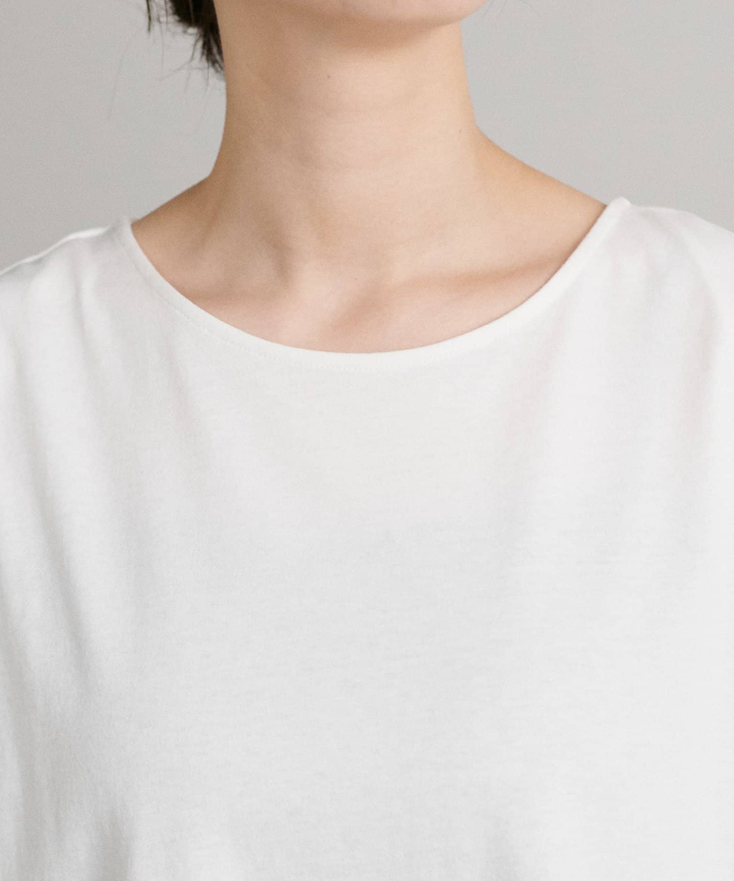 さらっとした肌触りで、汗染みが目立ちにくい特殊加工を施したカットソー素材。