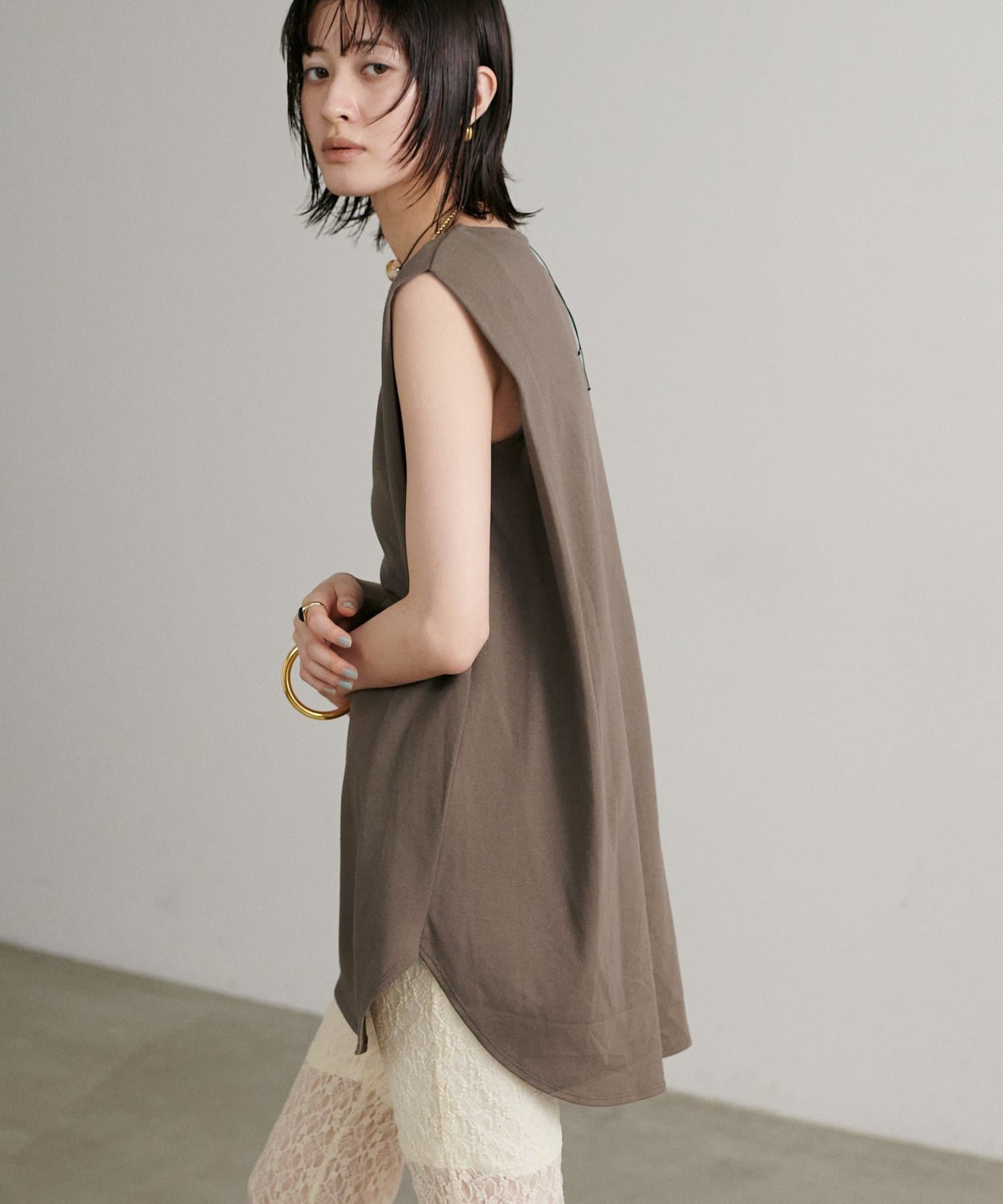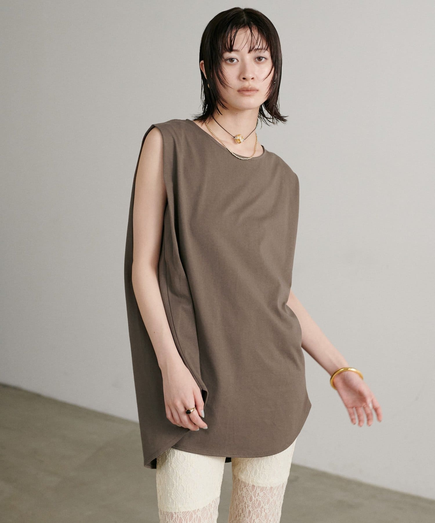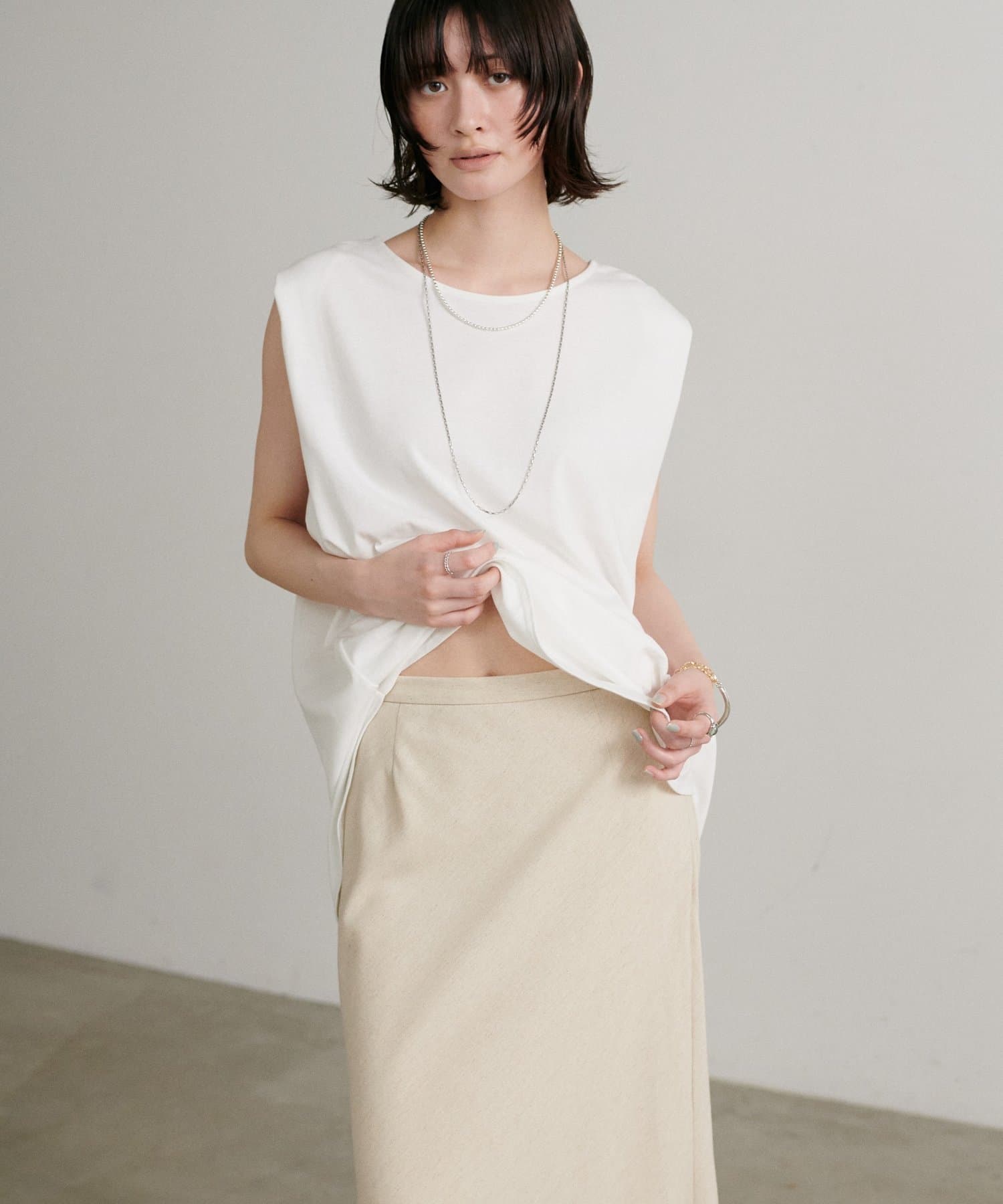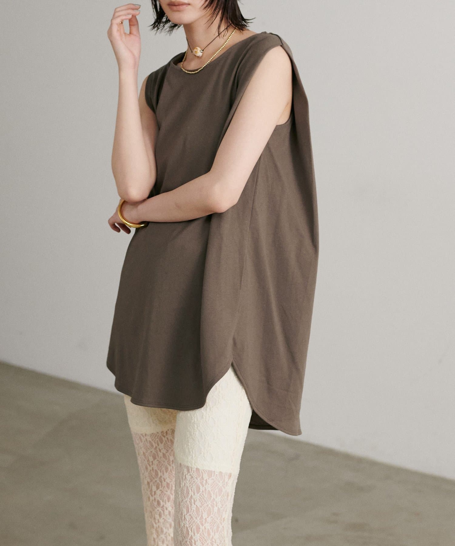 前後差のあるやや長めの丈感で細身のボトムスとの相性も◎