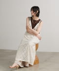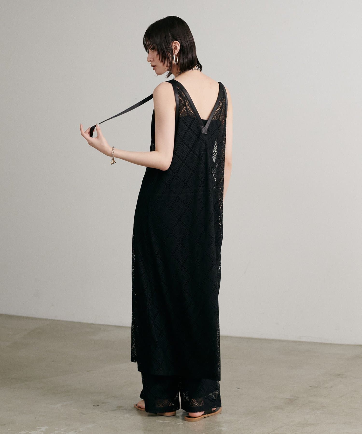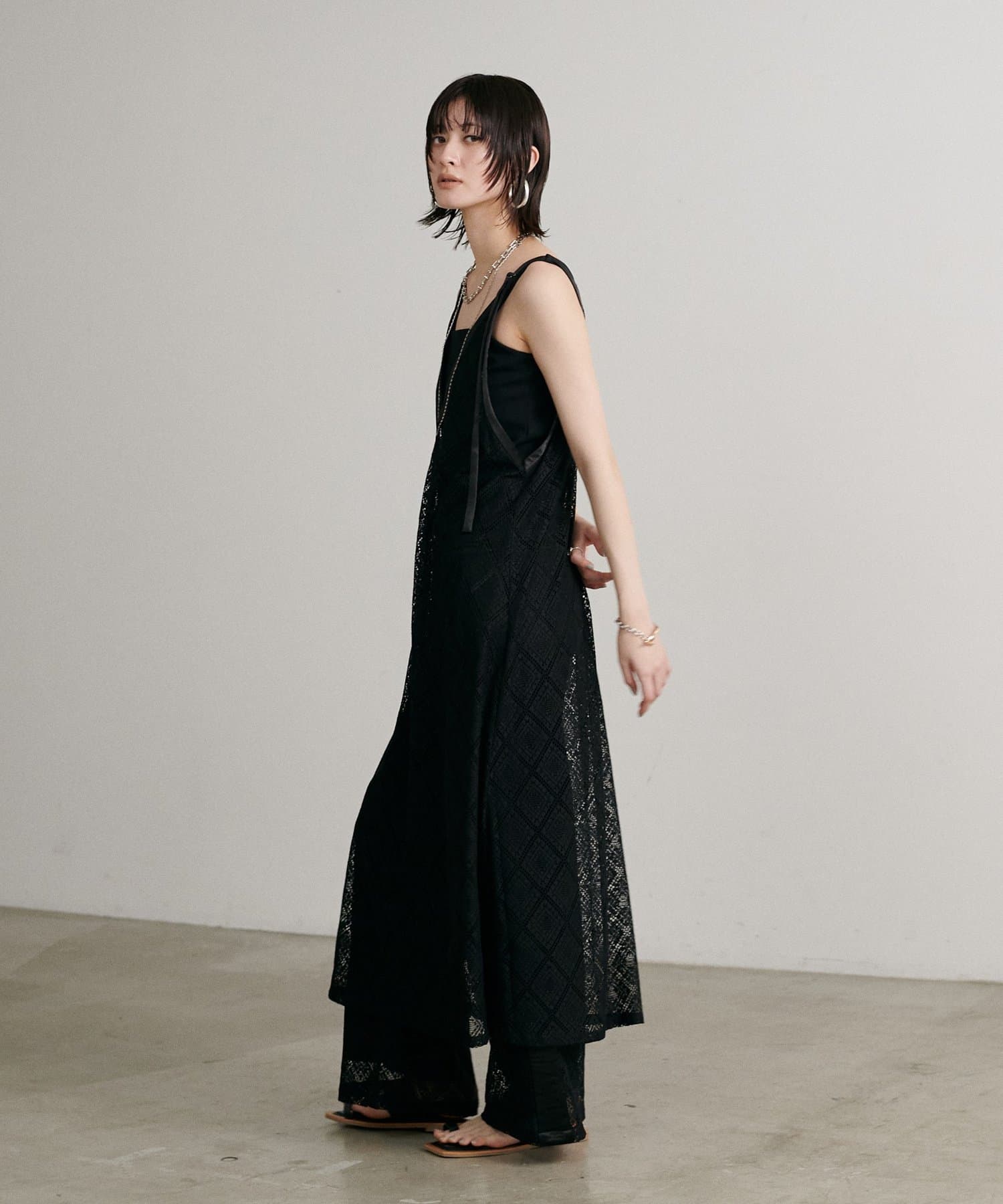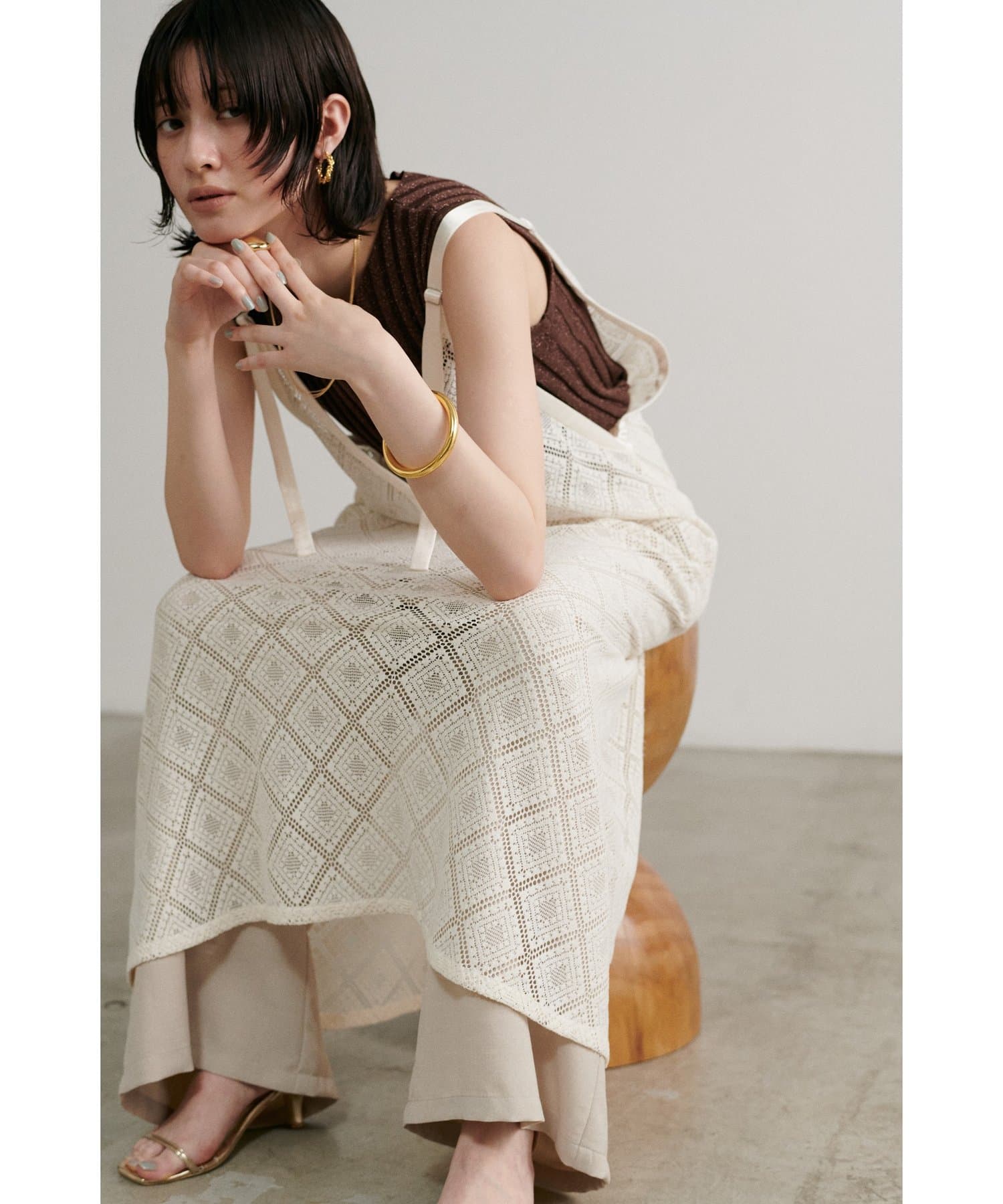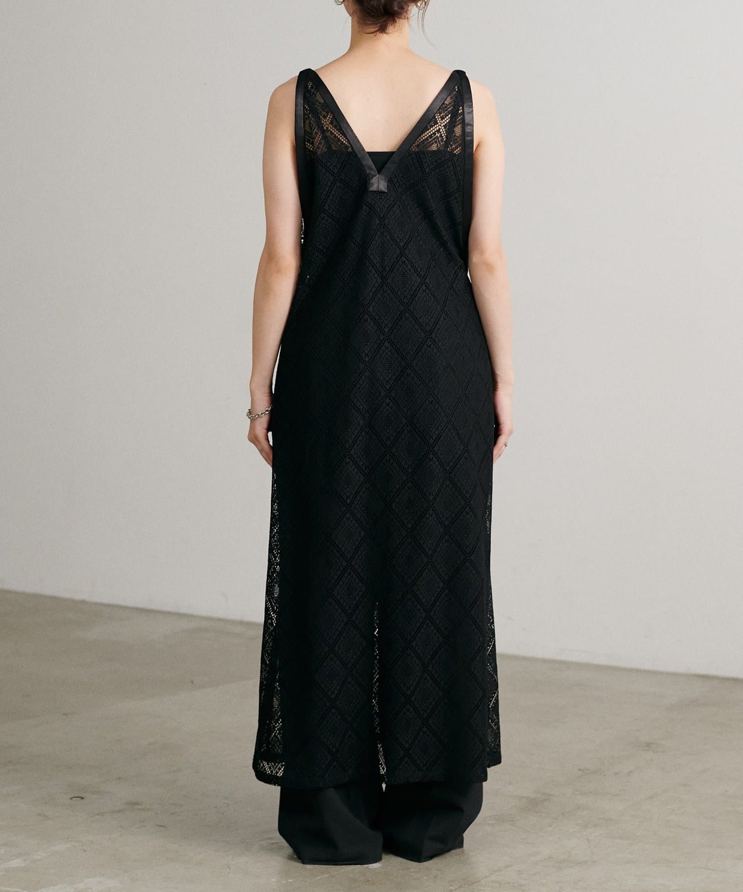 全体にあしらわれたひし柄レースが甘すぎず、上品な印象のワンピース。