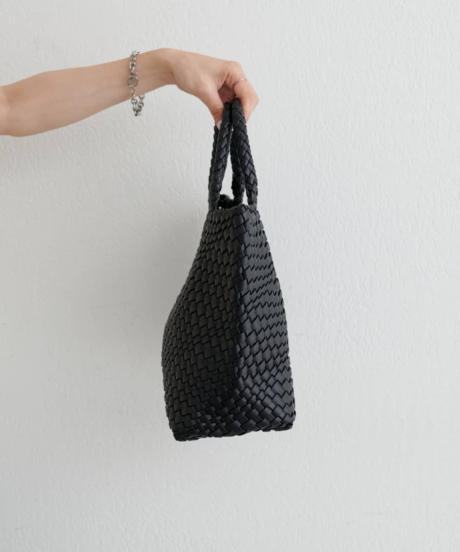 丁寧に編み込まれた合皮の質感が、洗練された印象を与えます。