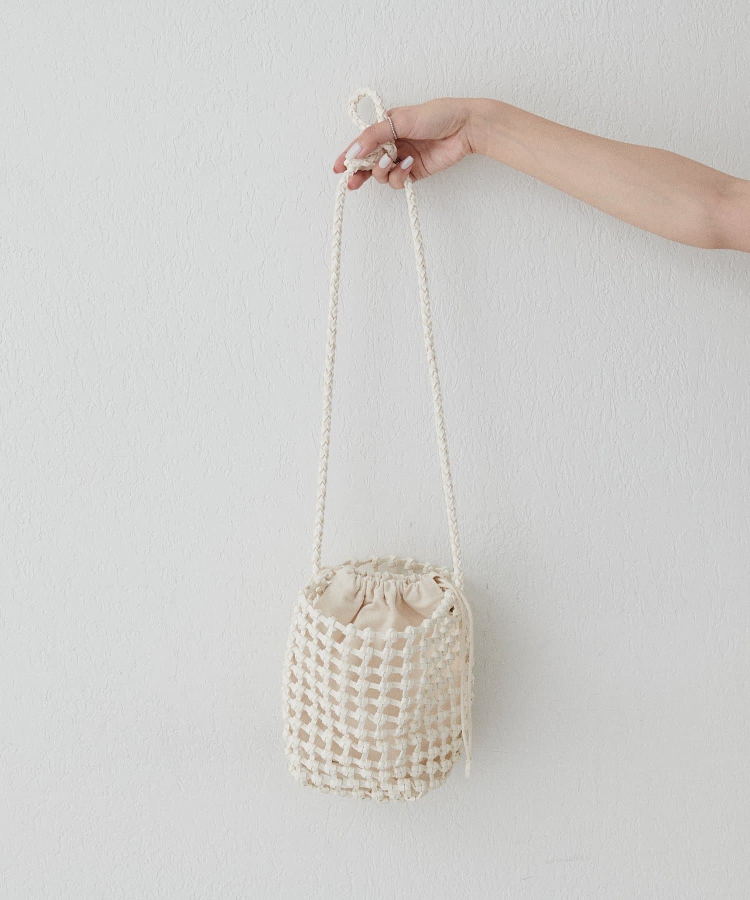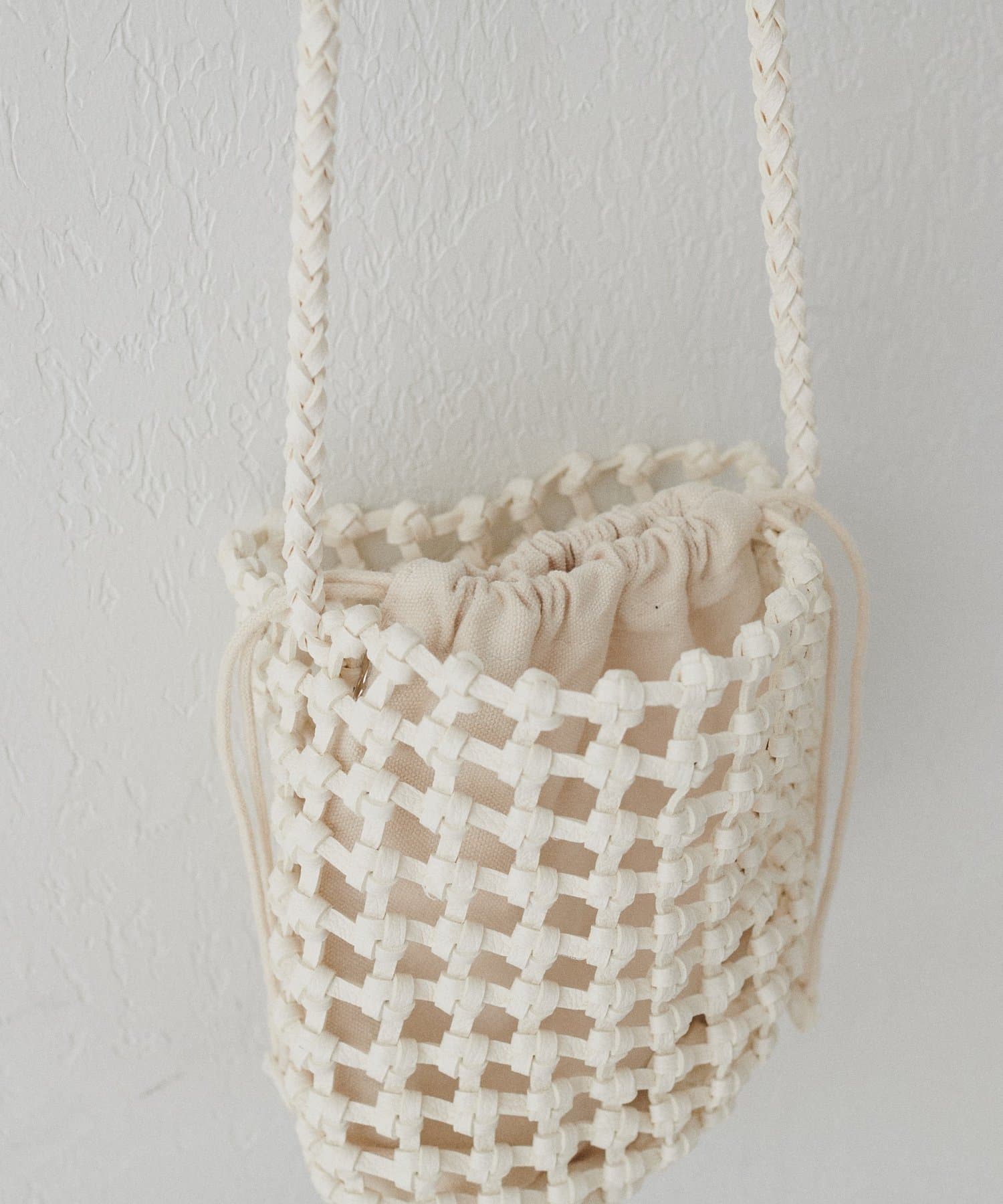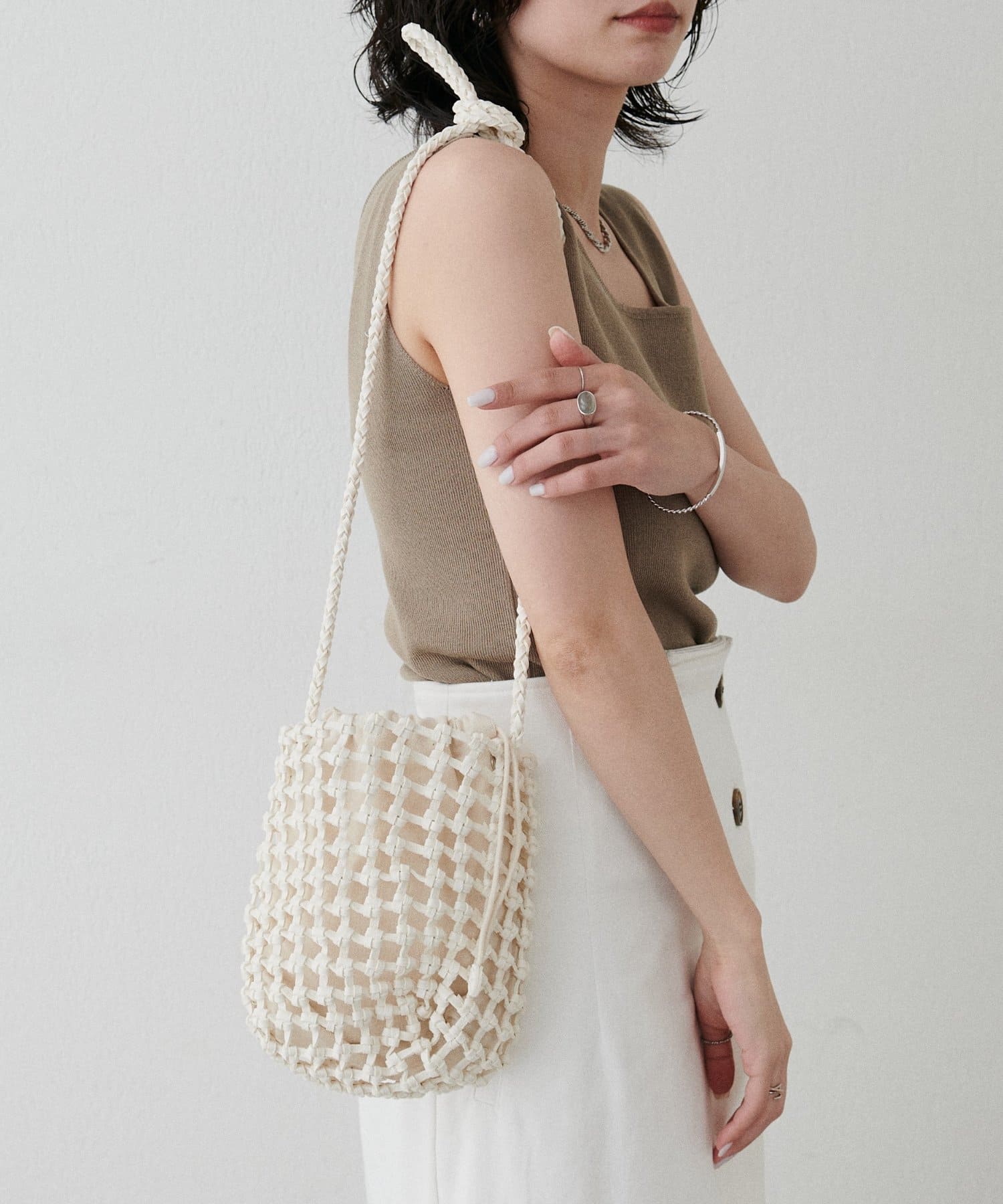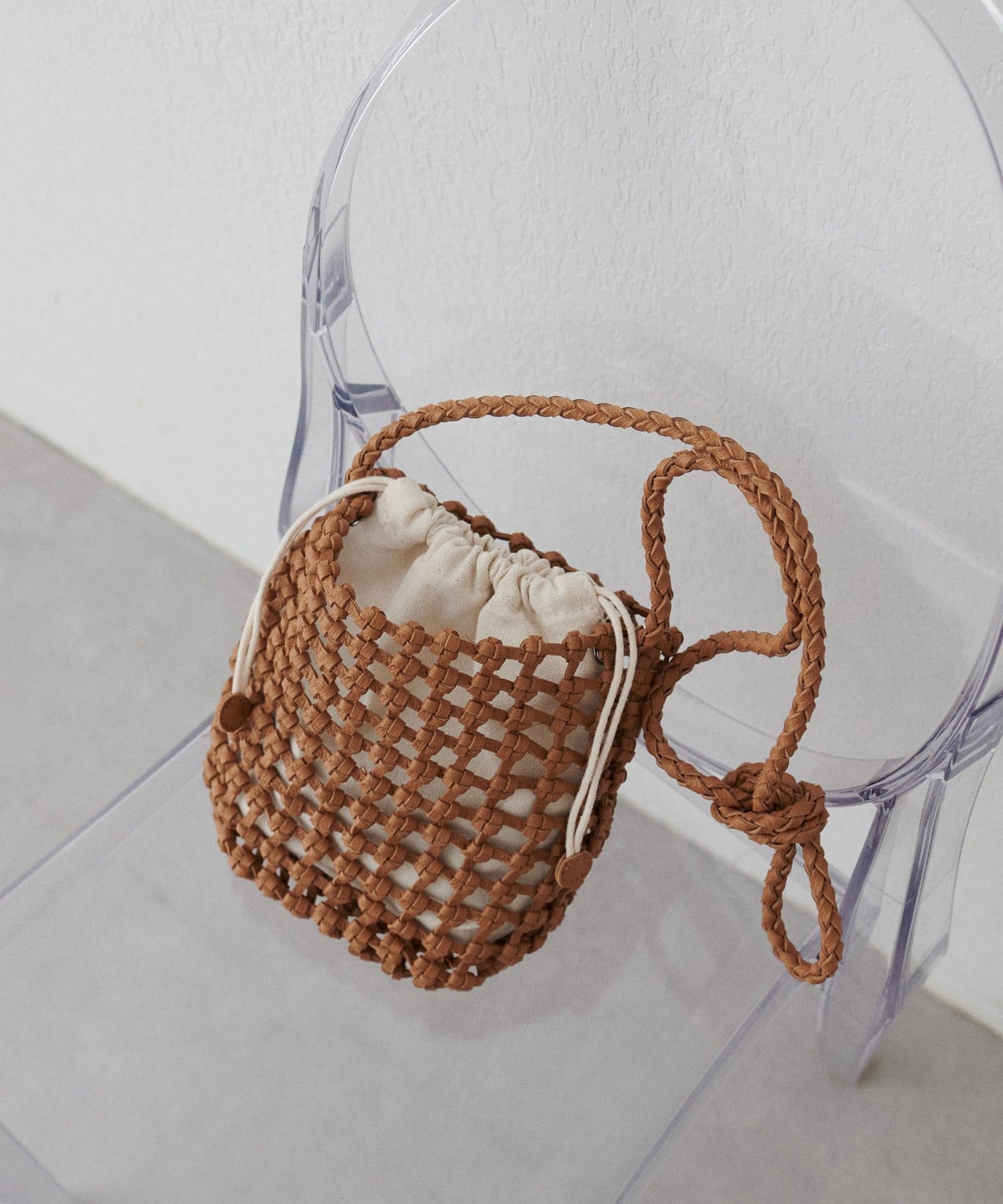 夏らしいさっぱりとした印象を与えてくれる編み込みデザインのショルダーバッグ。