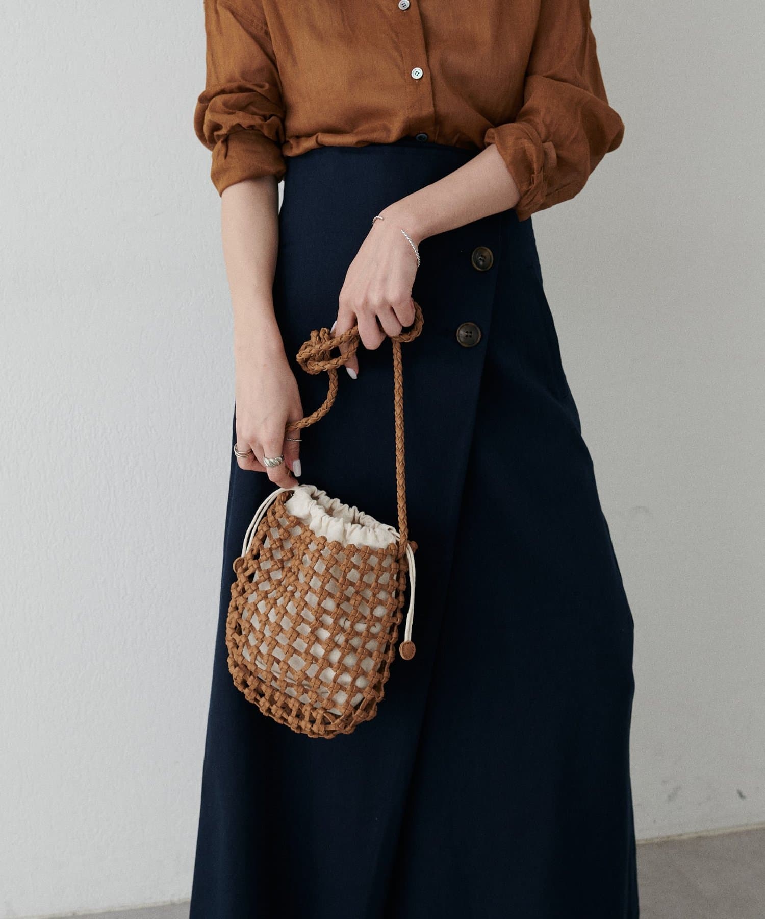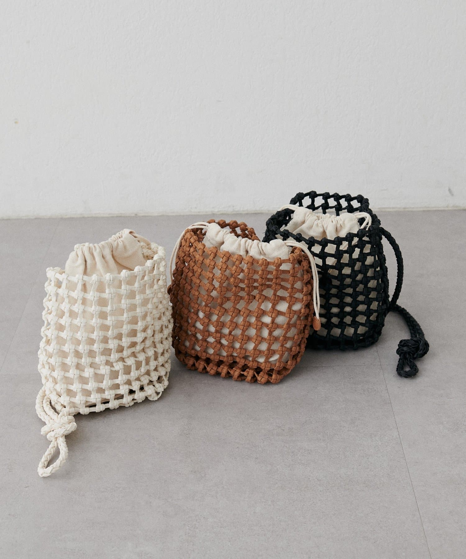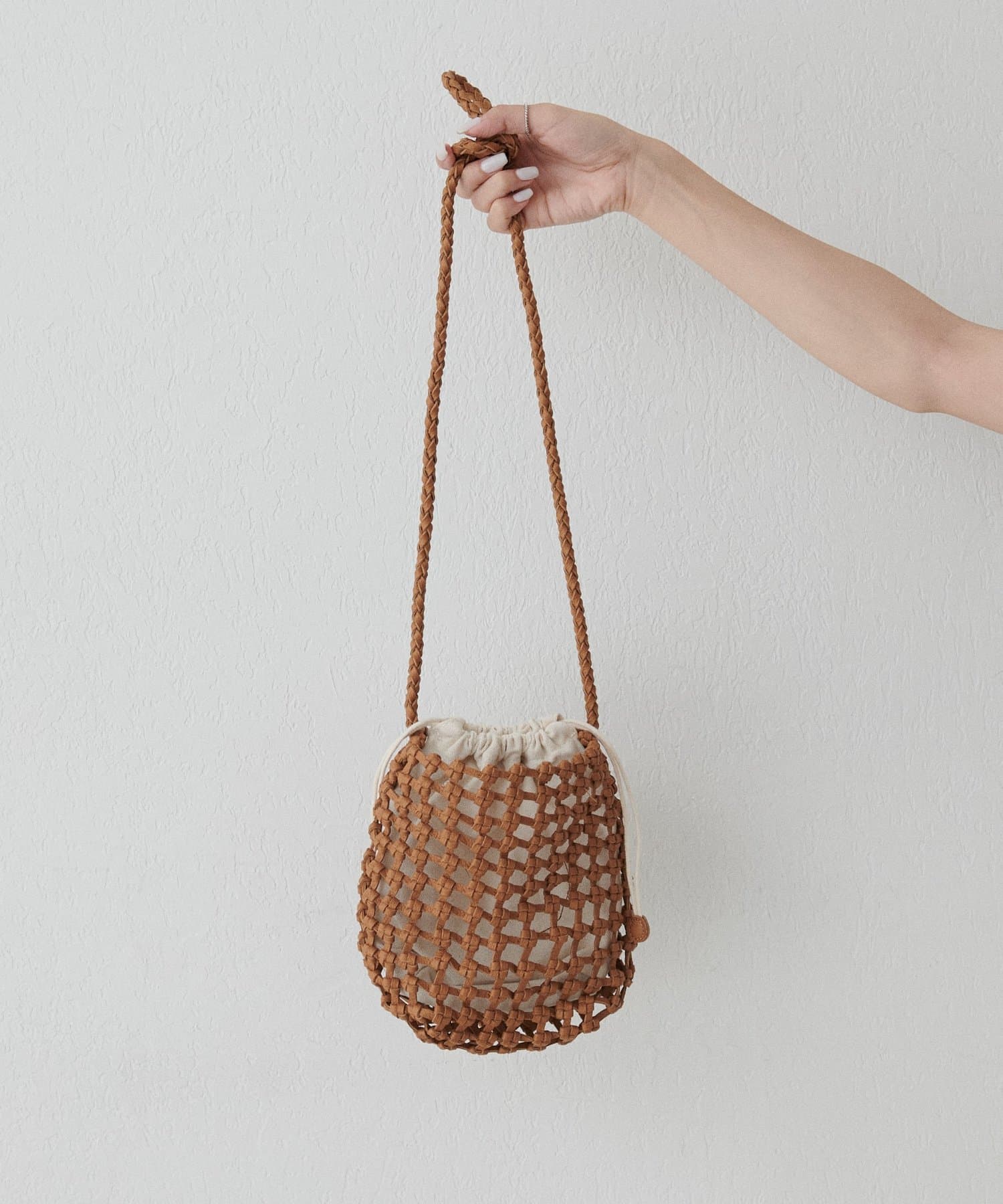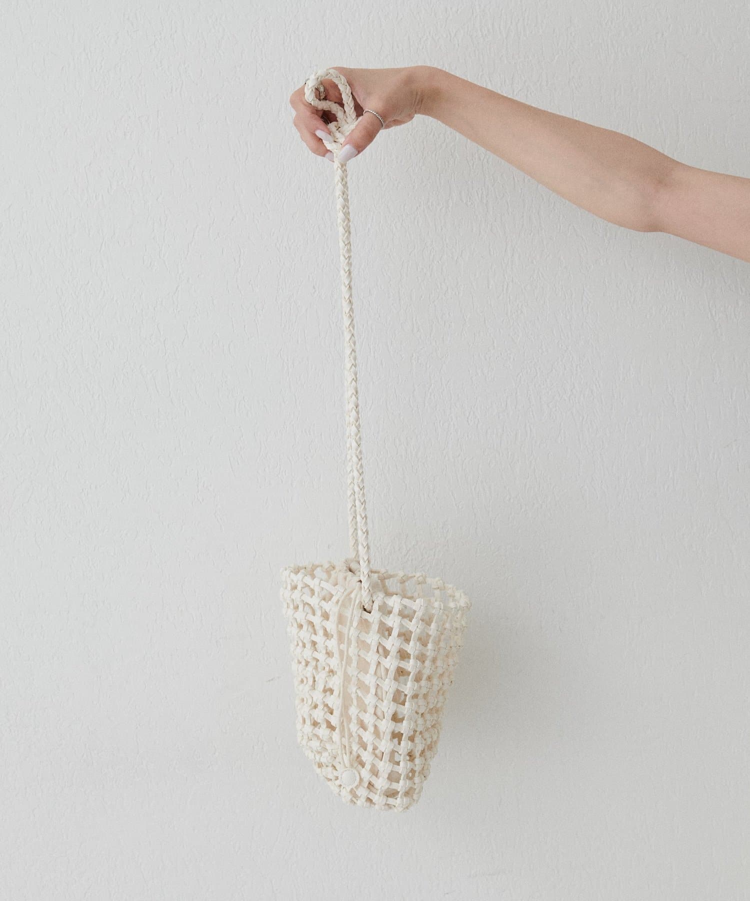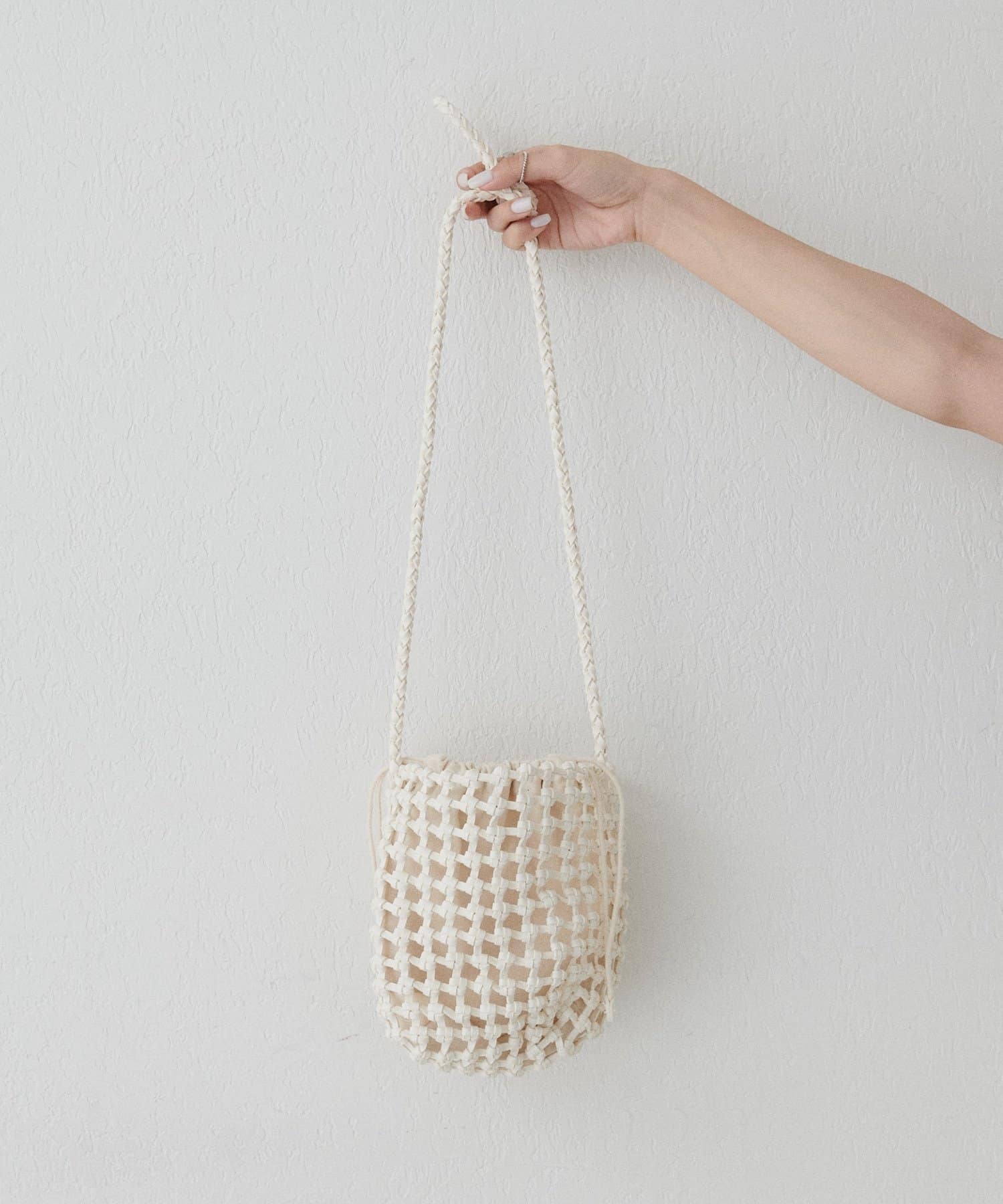 夏らしいさっぱりとした印象を与えてくれる編み込みデザインのショルダーバッグ。
