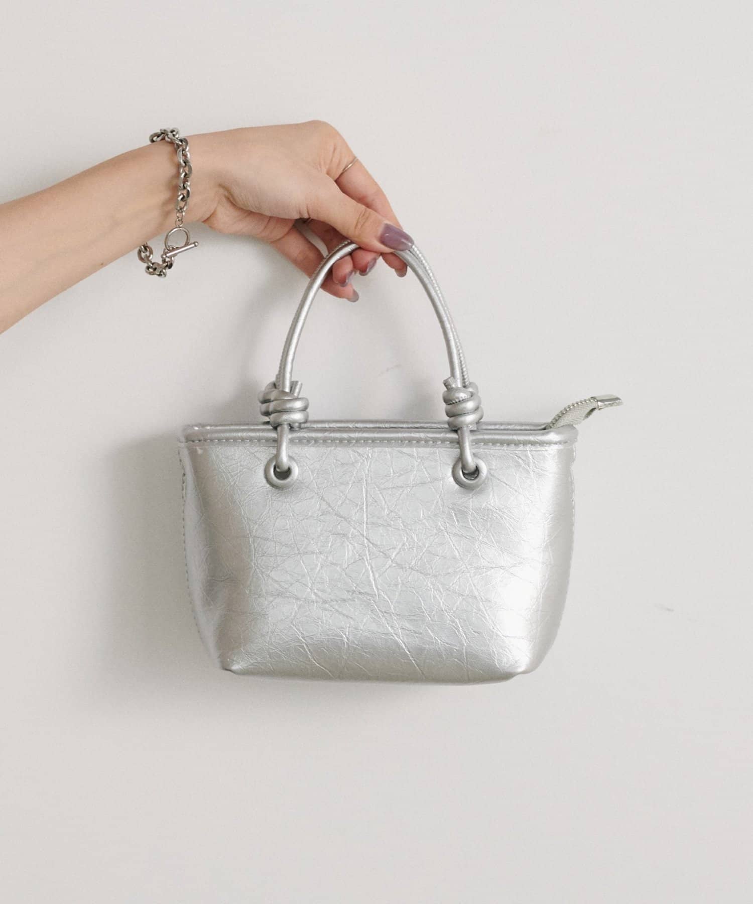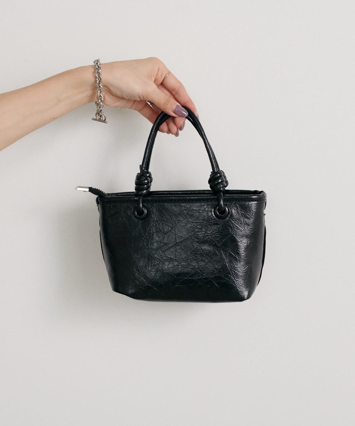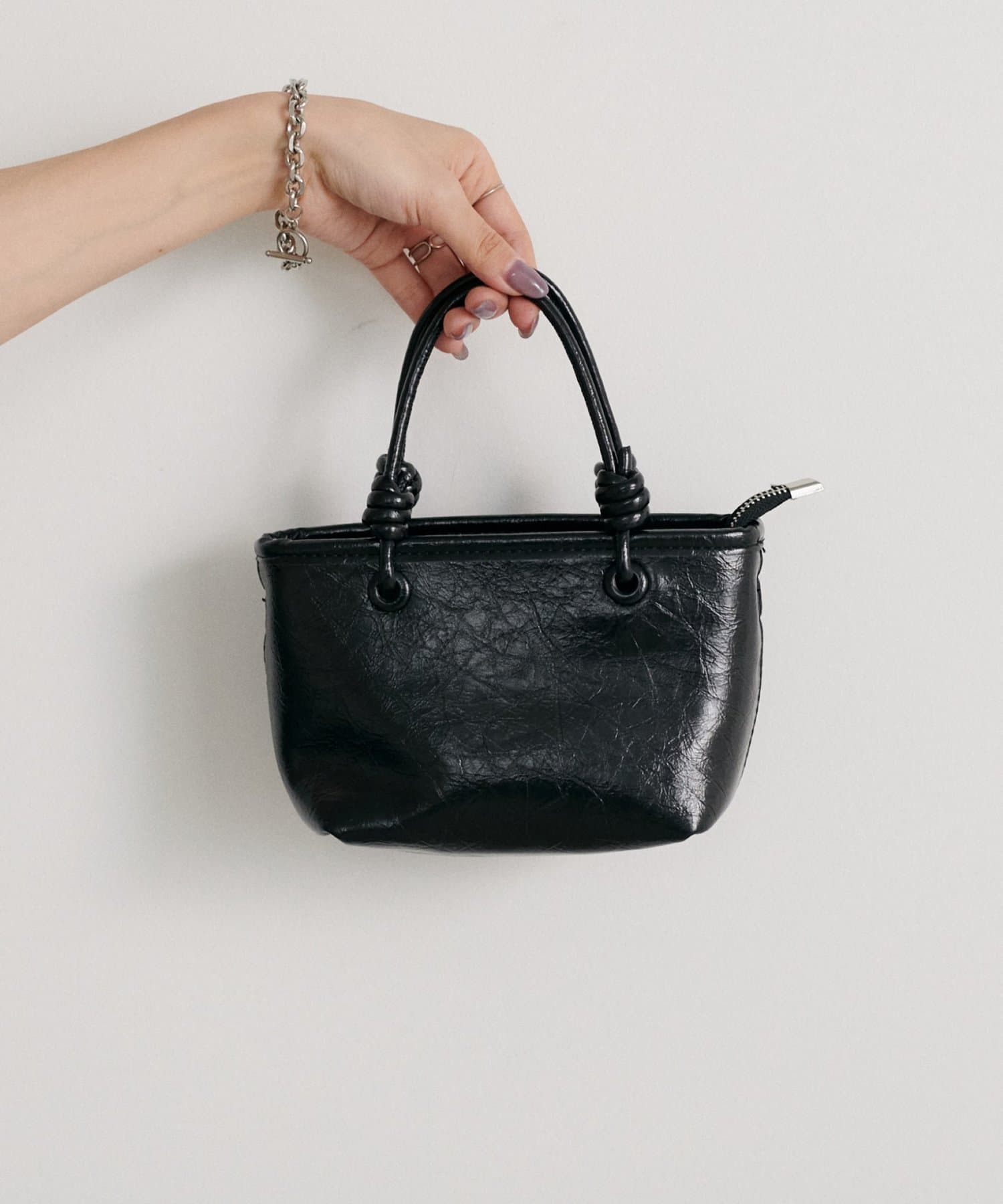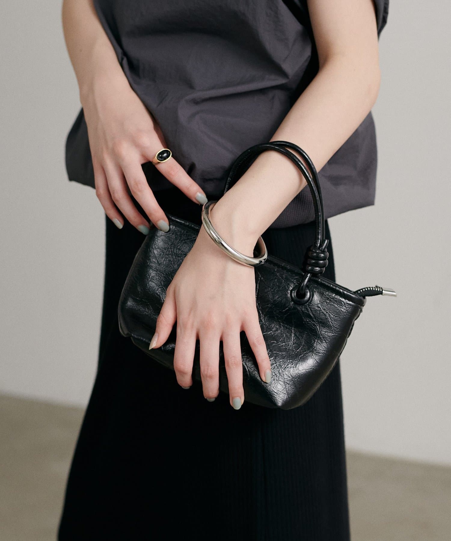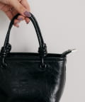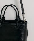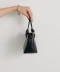 光沢感のある素材感が高級感のあるハンドバッグ。
