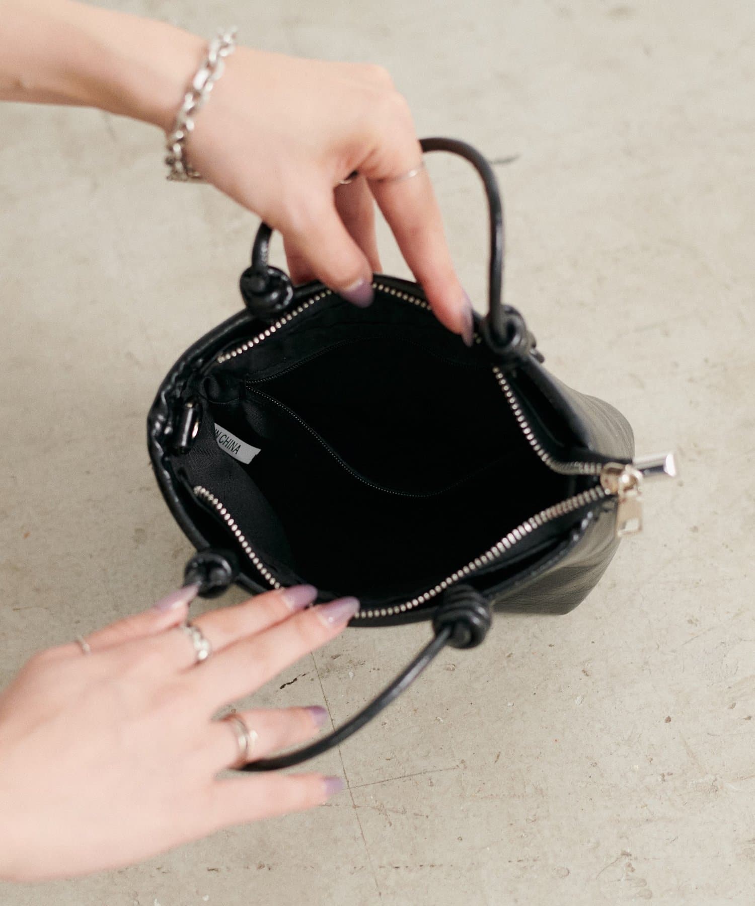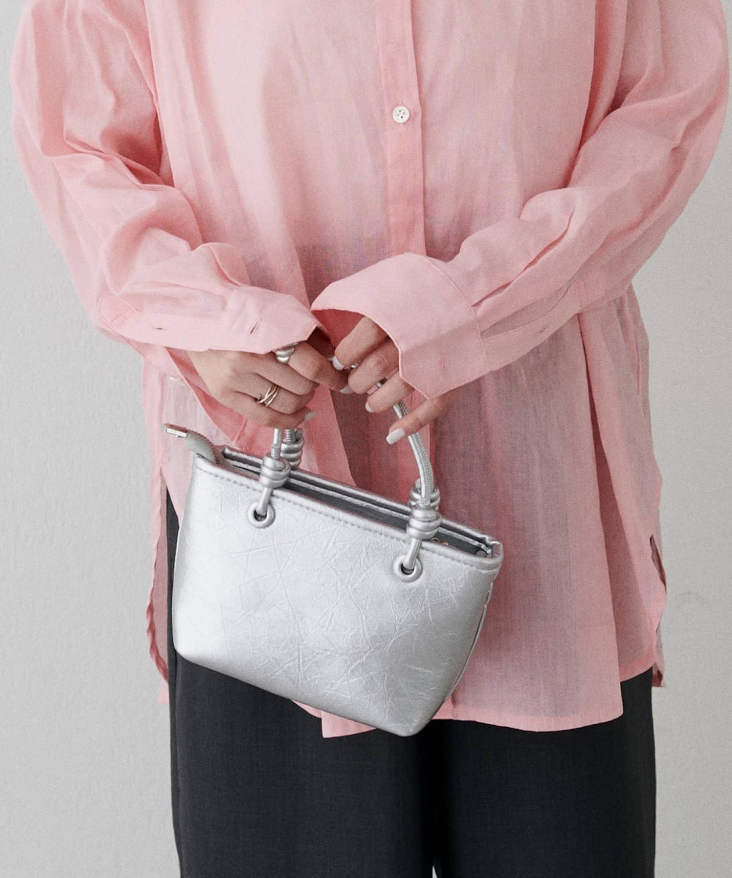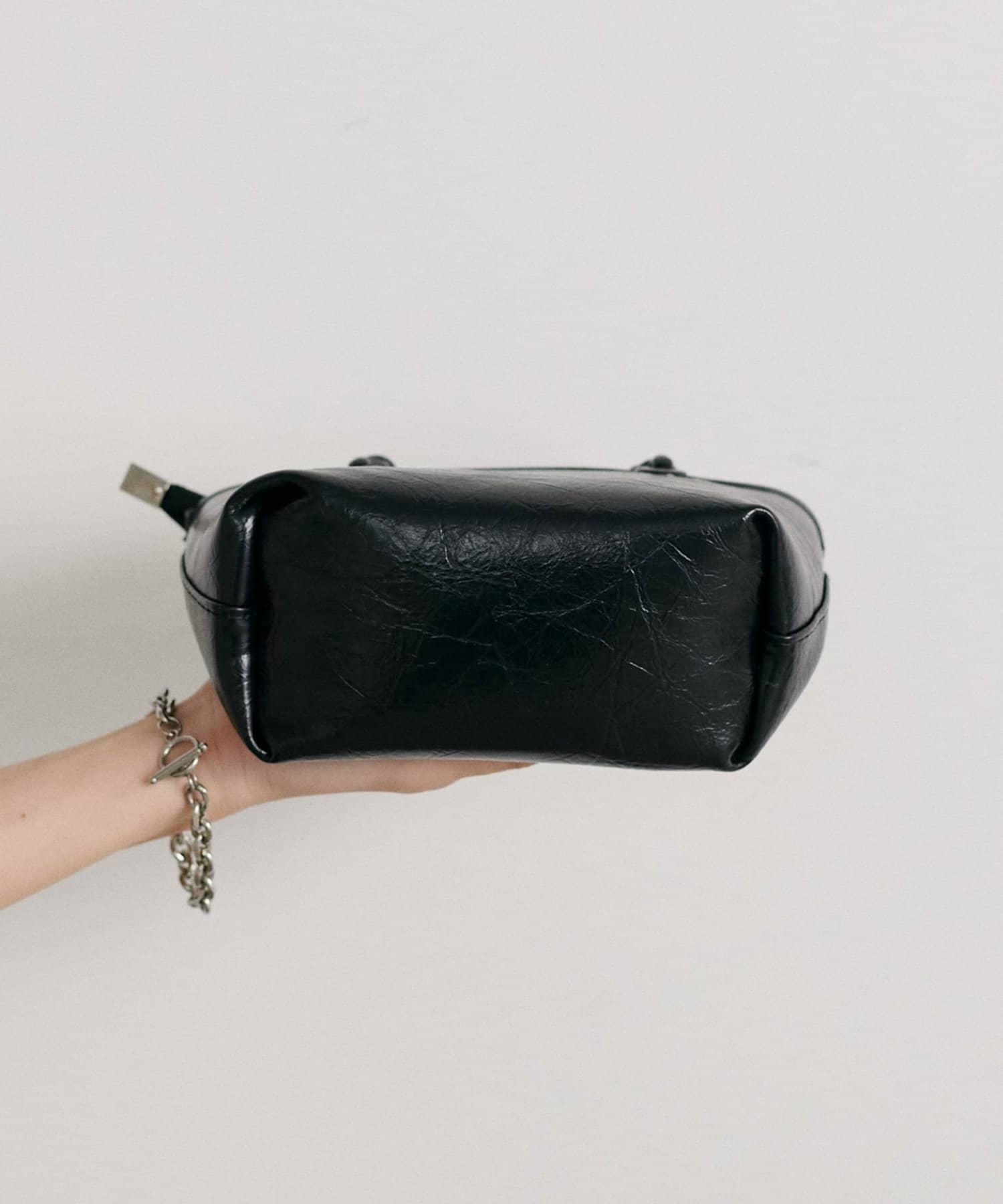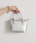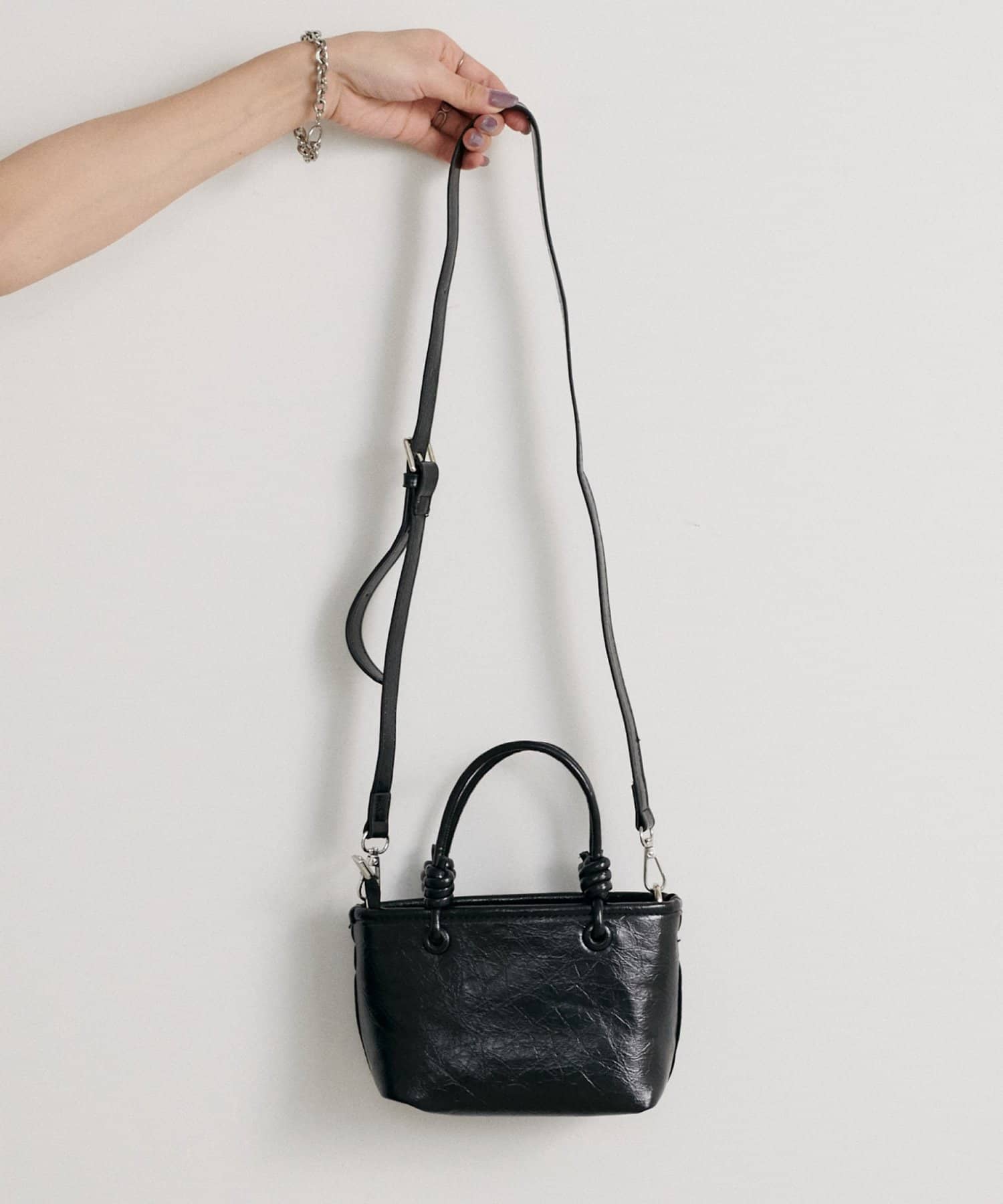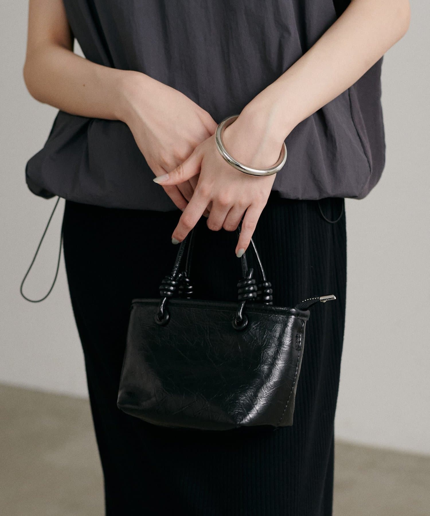 光沢感のある素材感が高級感のあるハンドバッグ。