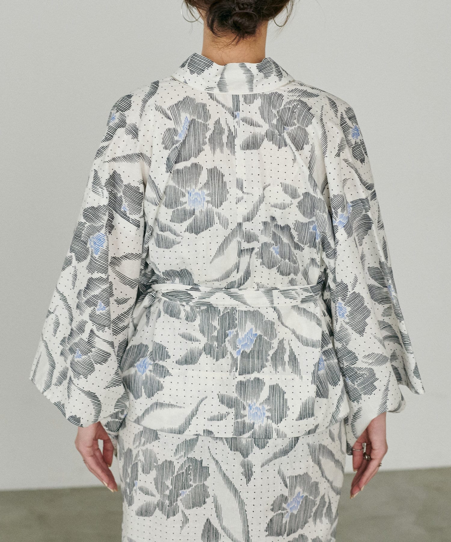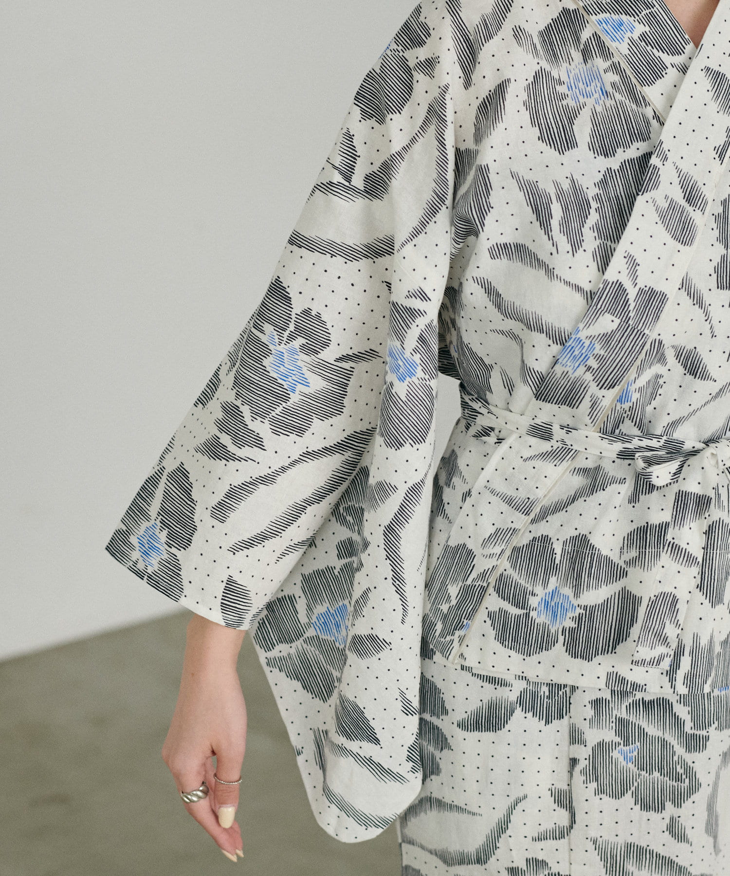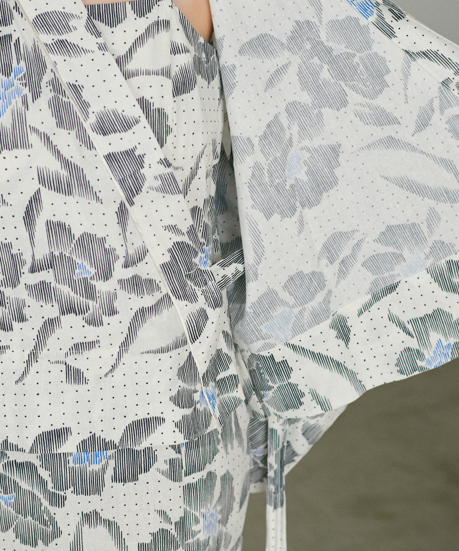 浴衣の羽織りは、一人でも簡単に着られるように甚平のような紐が