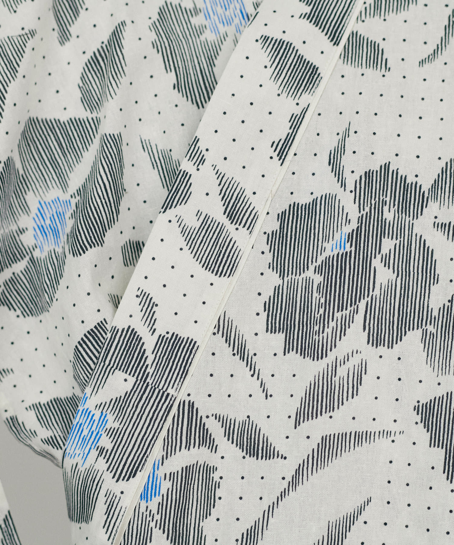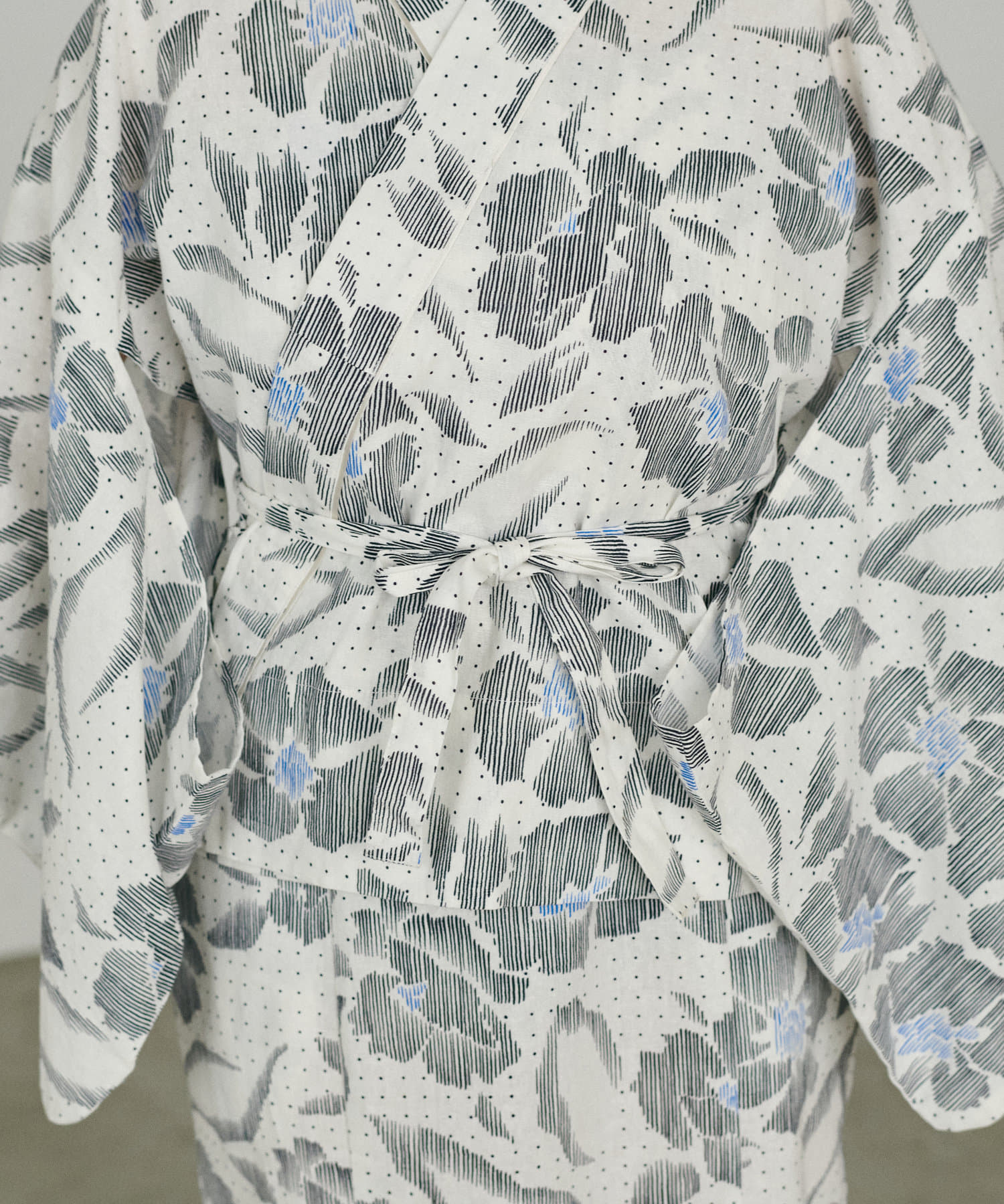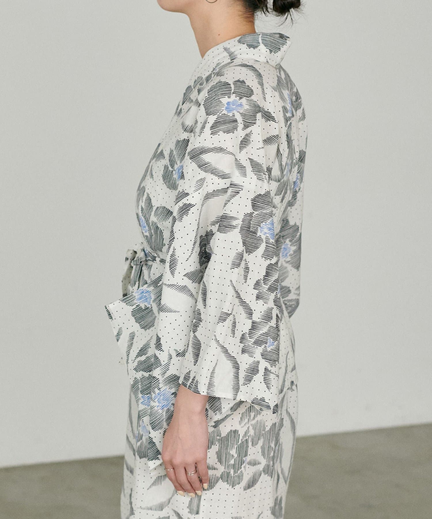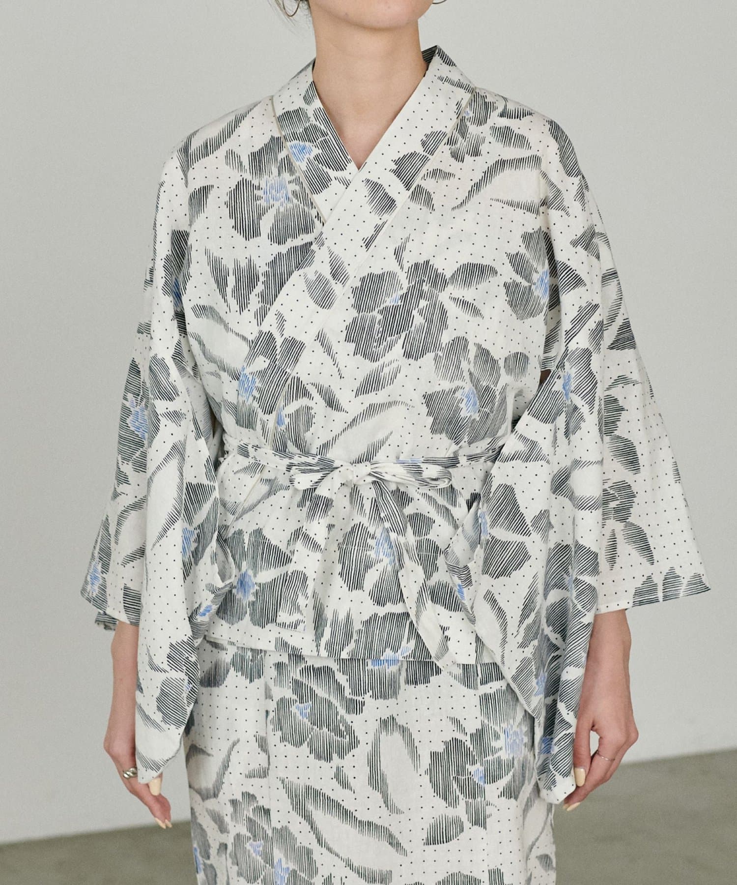 浴衣の羽織りは、一人でも簡単に着られるように甚平のような紐が