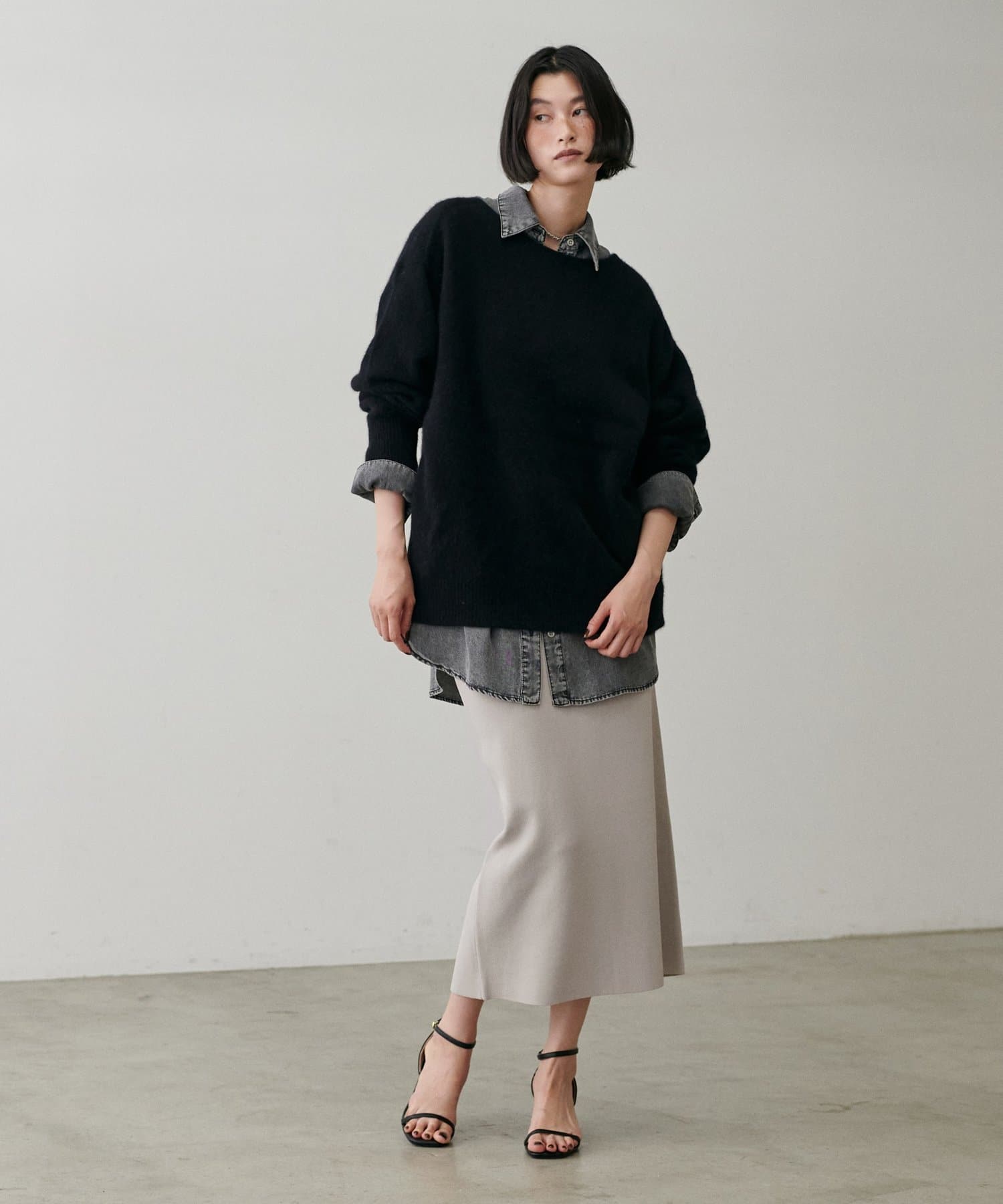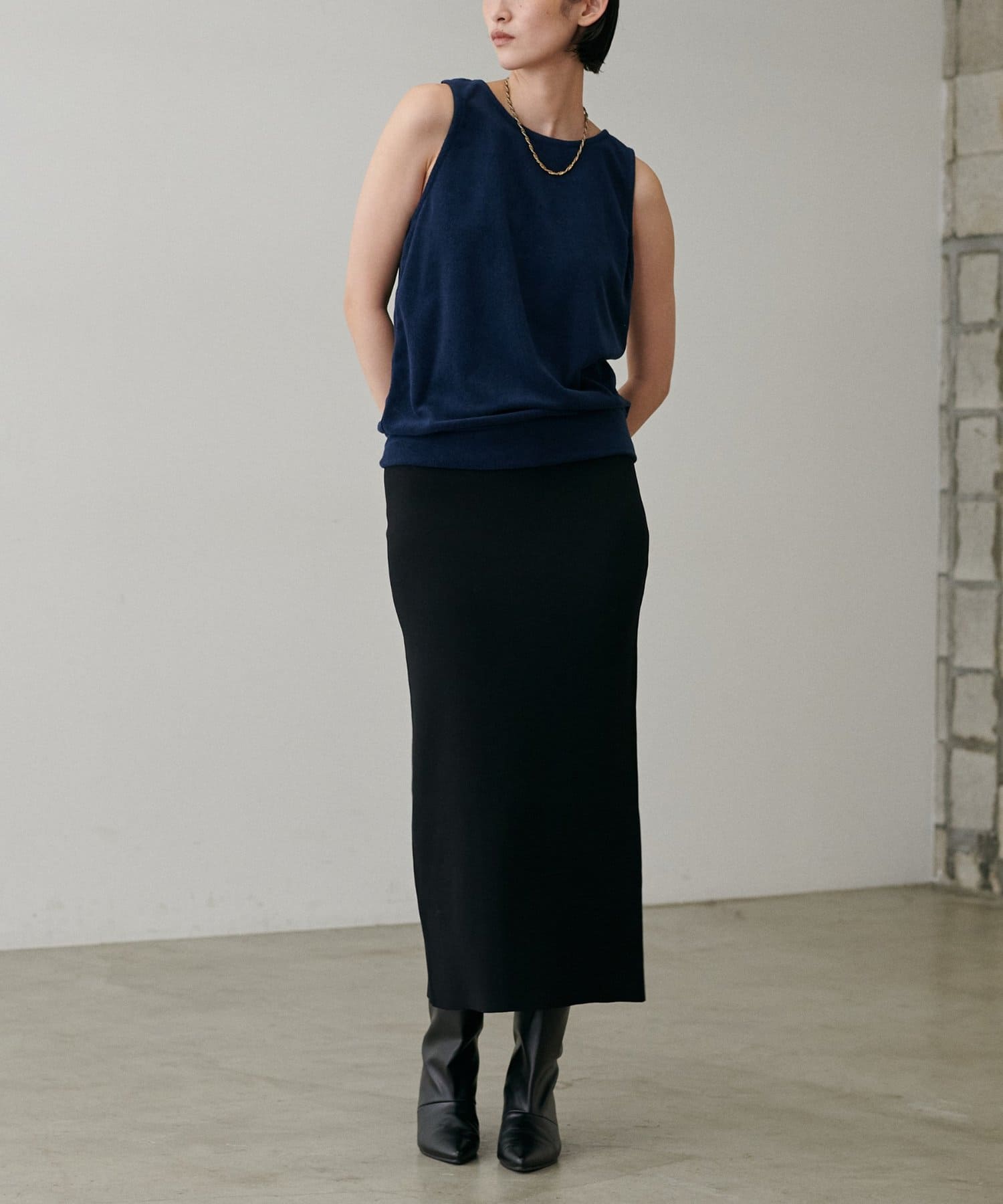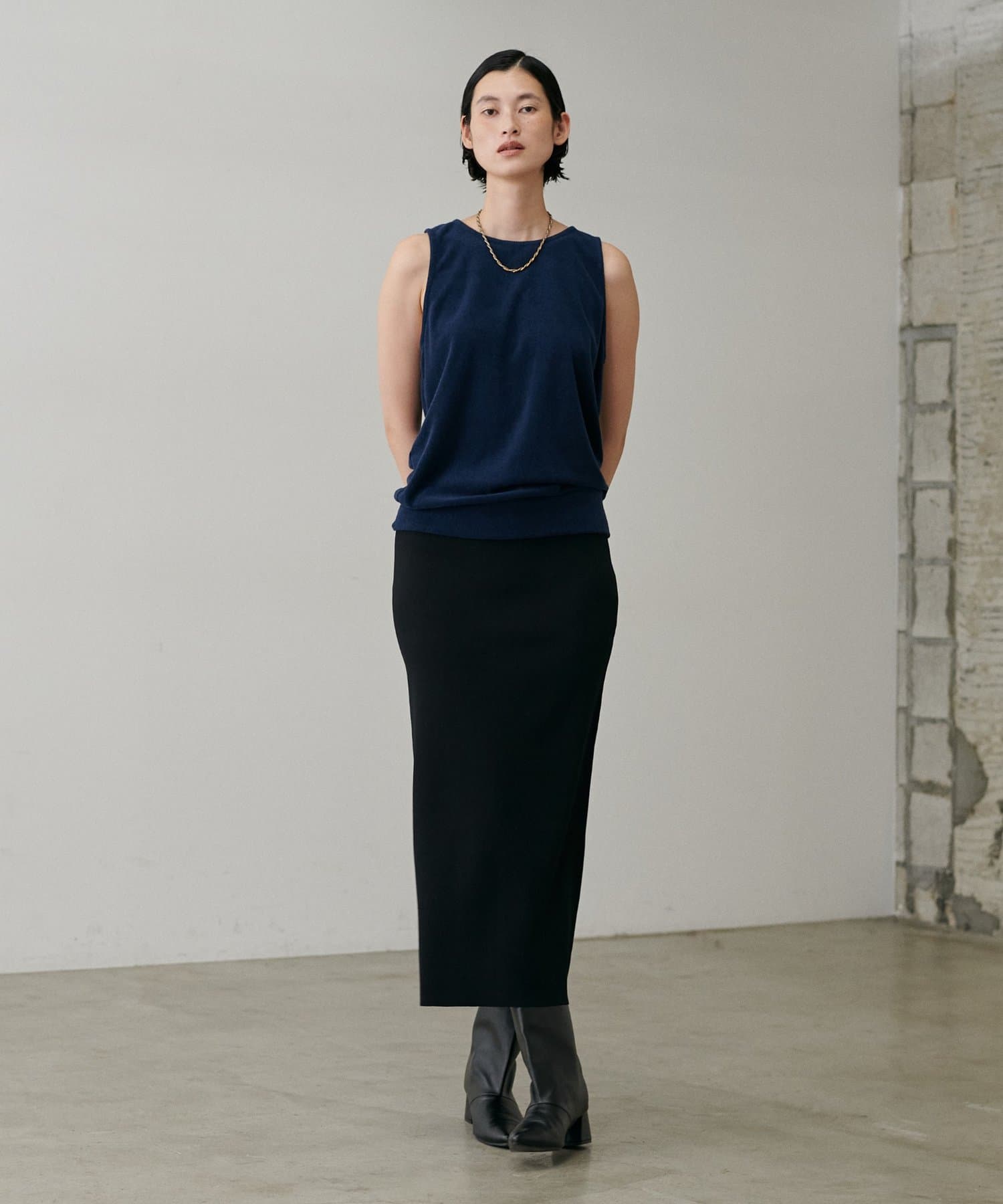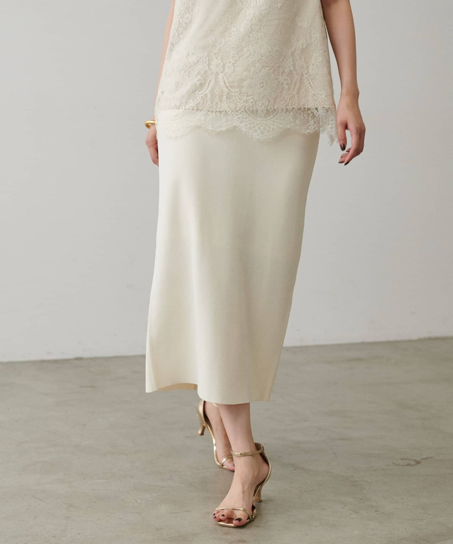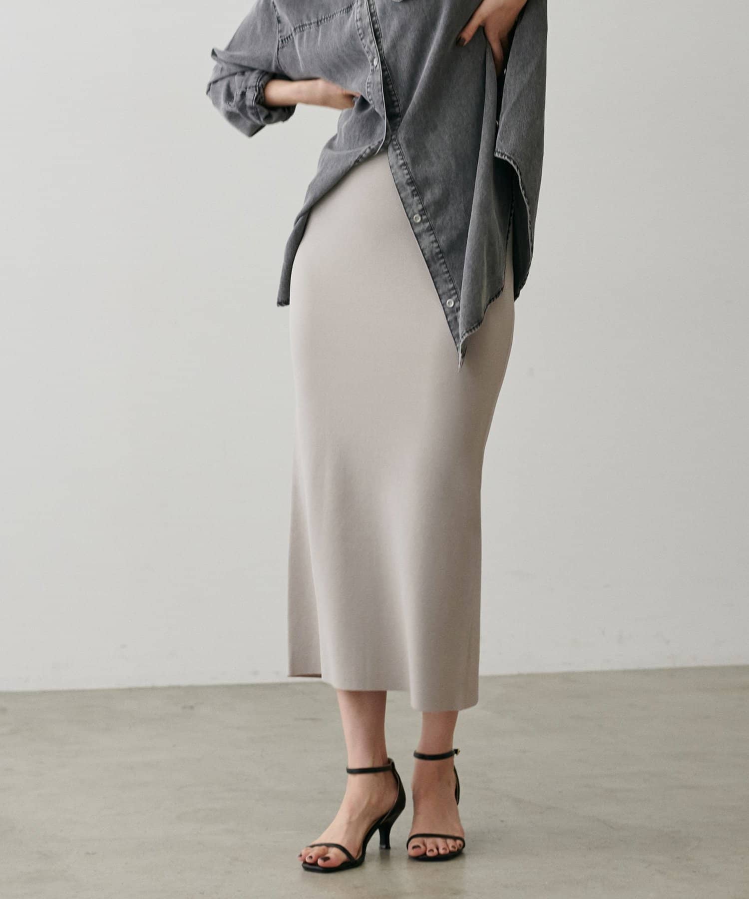 暑さの残る今の時期にも嬉しい機能性サマーニットのIラインスカート。