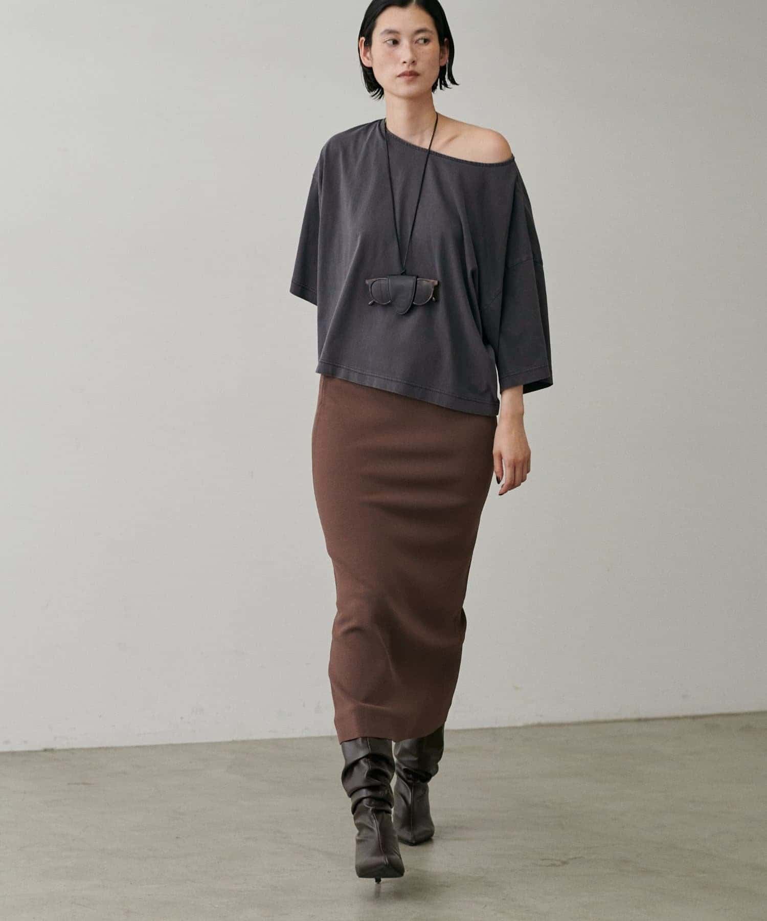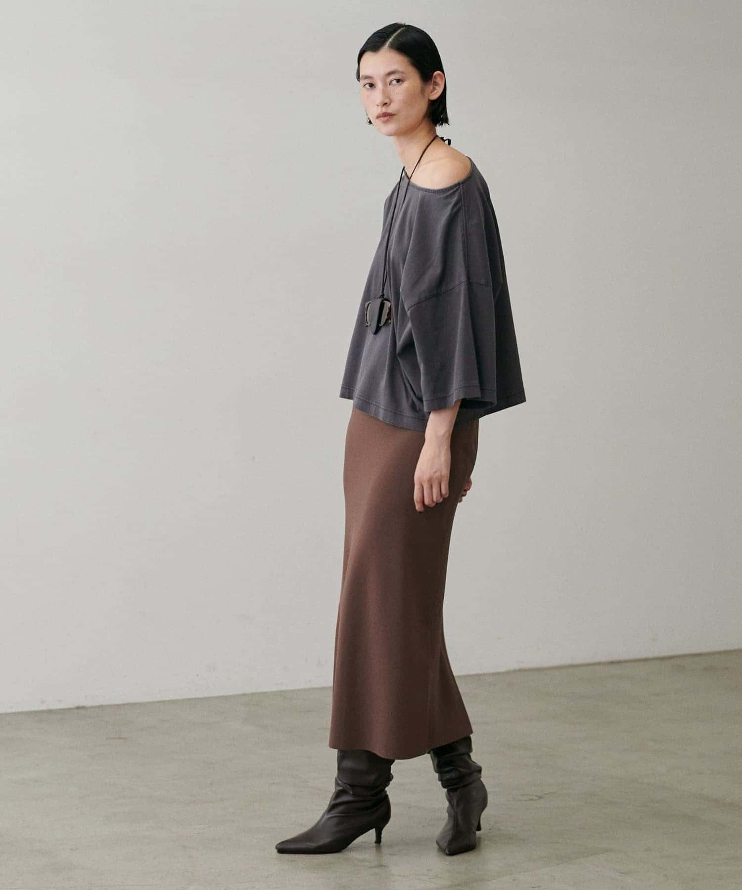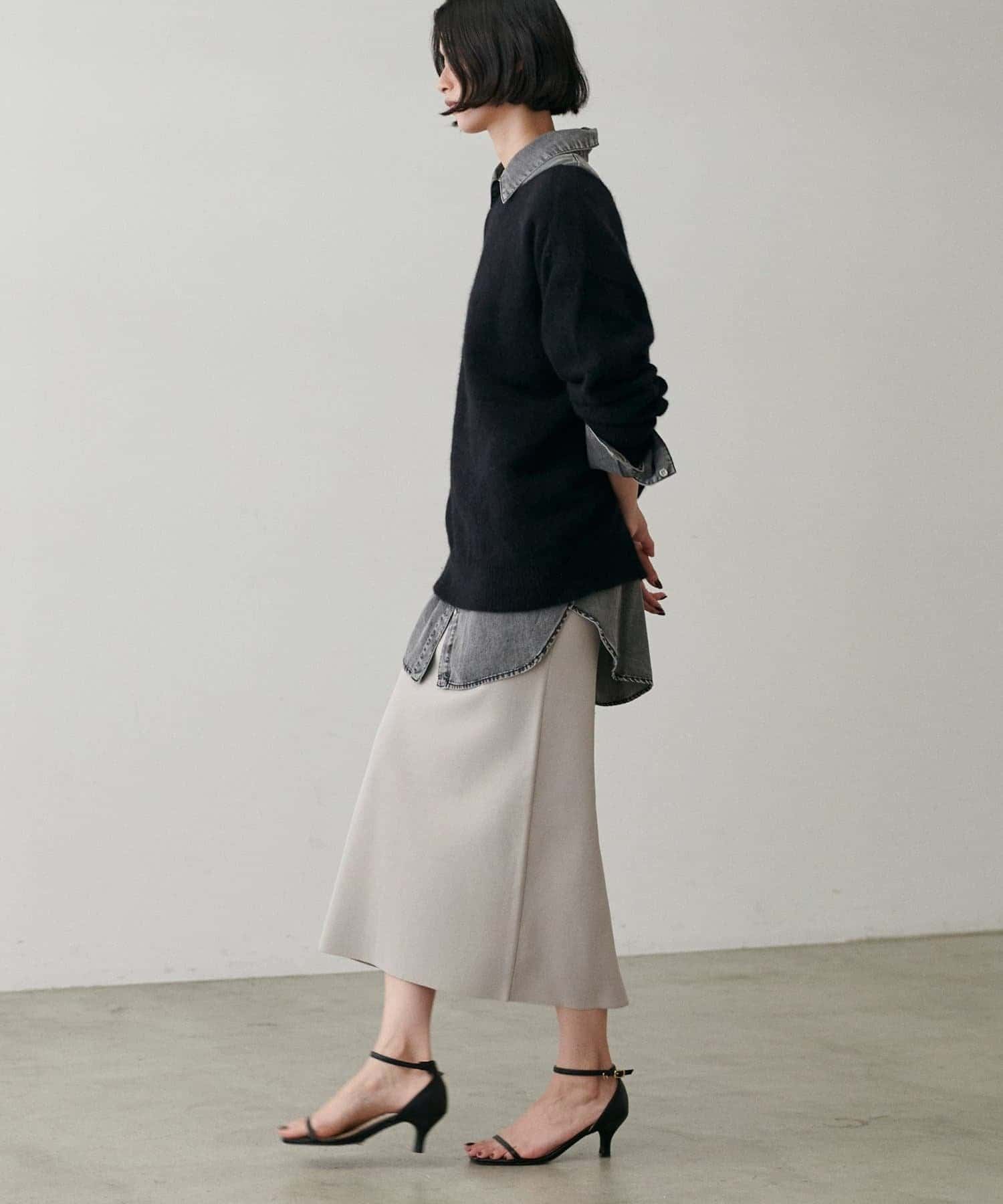 ストレッチの効いた滑らかで落ち感のある生地感が肌に馴染み