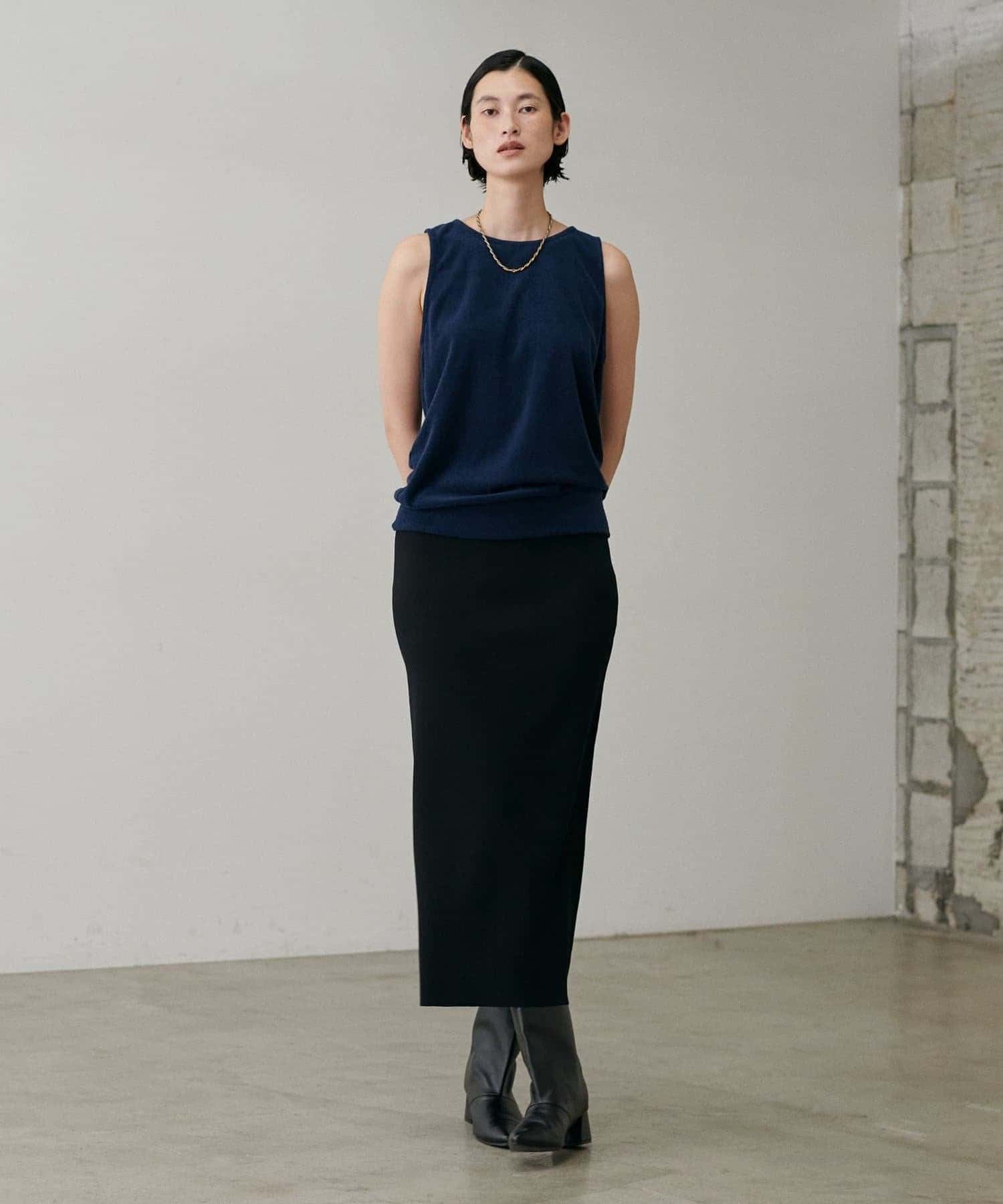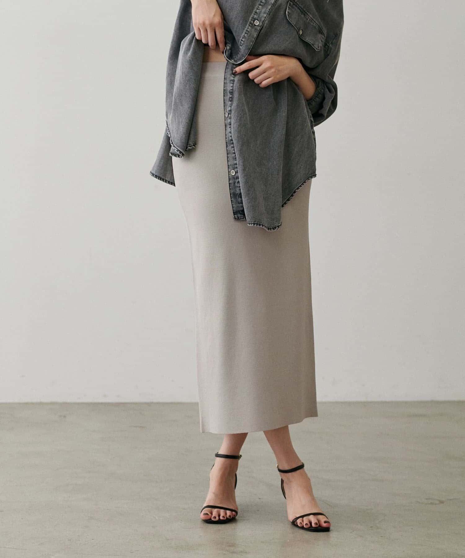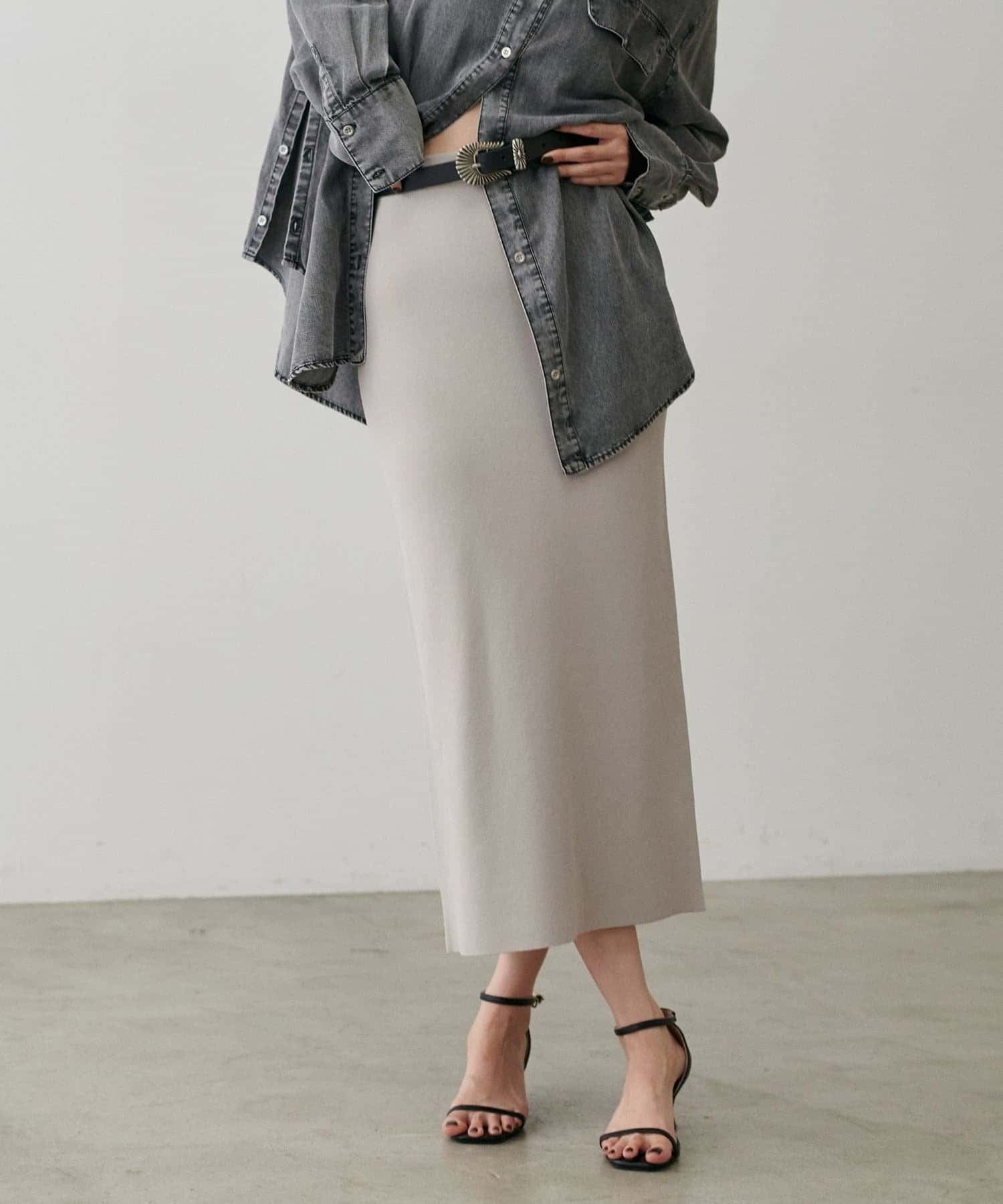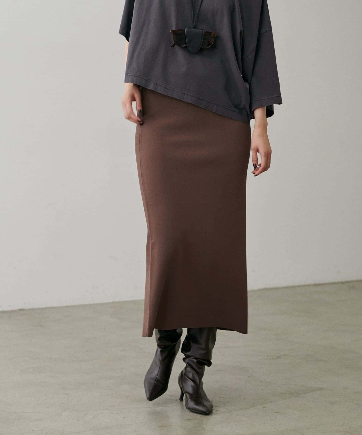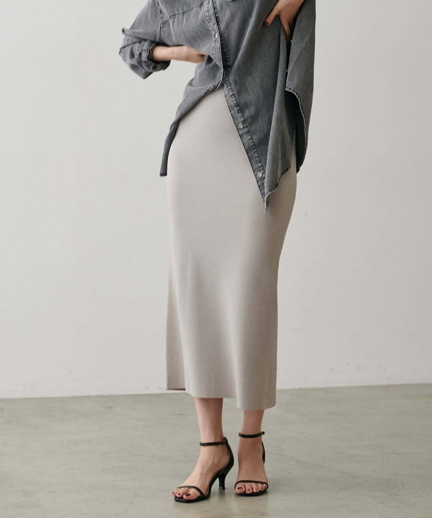 UV&接触冷感シンプルIラインニットスカート