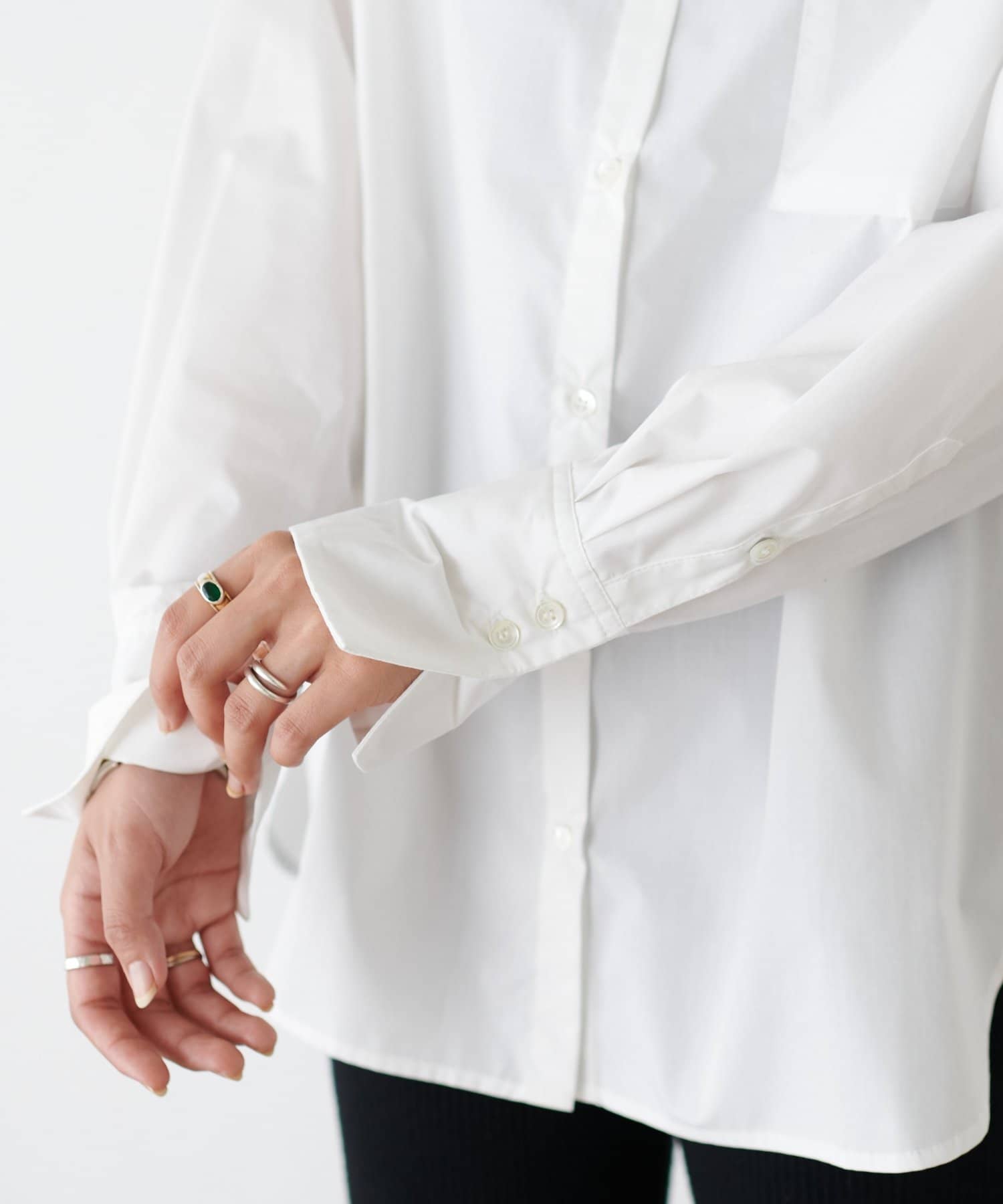 ベストやスウェットの中にレイヤードしたりと、着周り力抜群の1着。