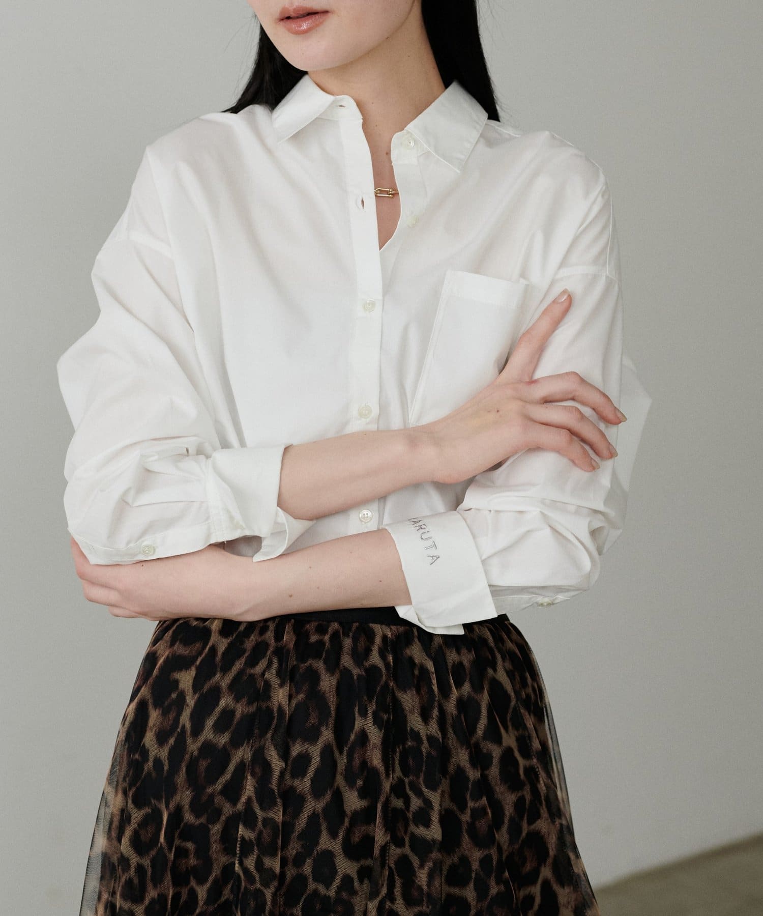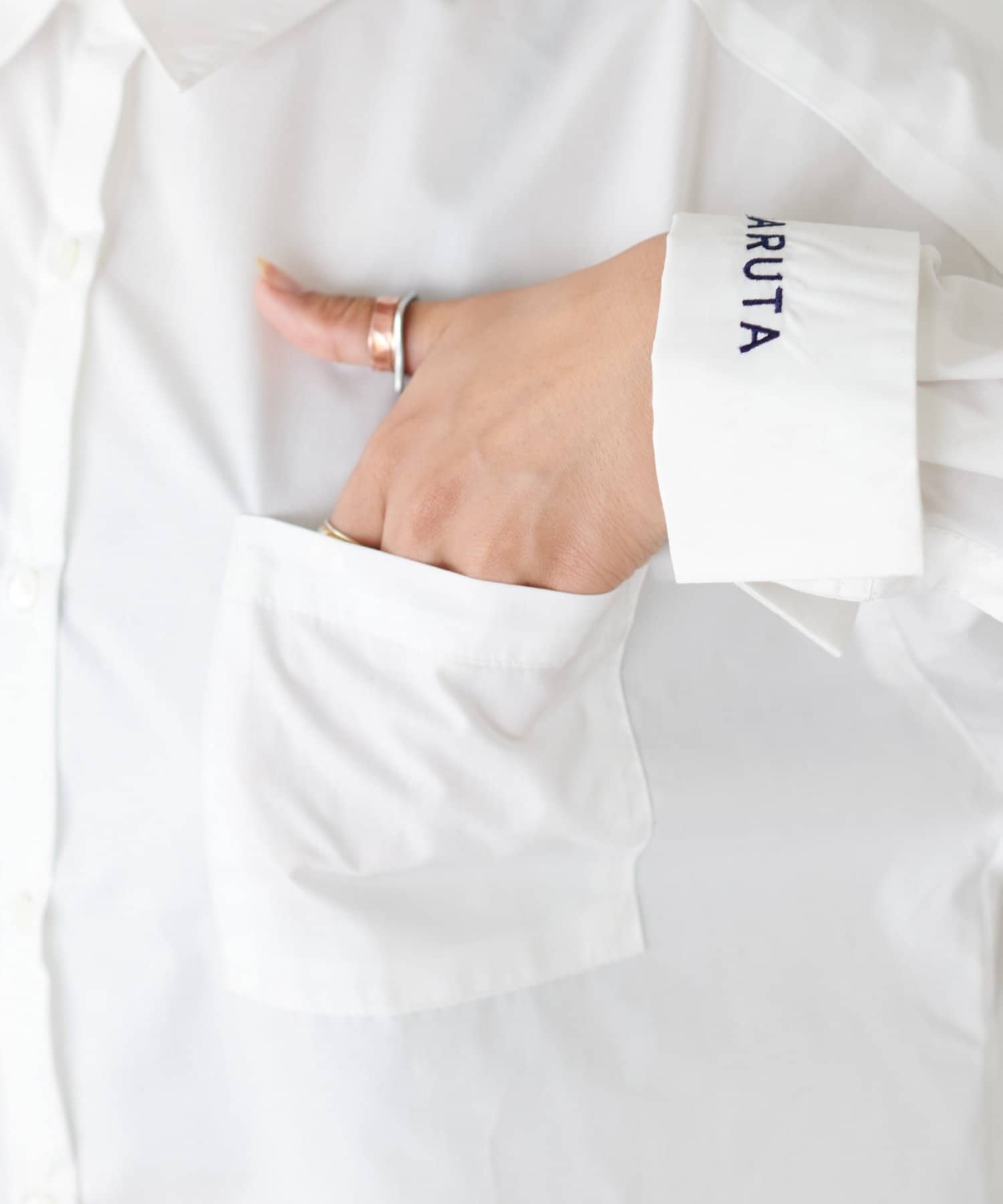 カフスを折り返すと現れるさり気ないロゴ刺繍がポイント。