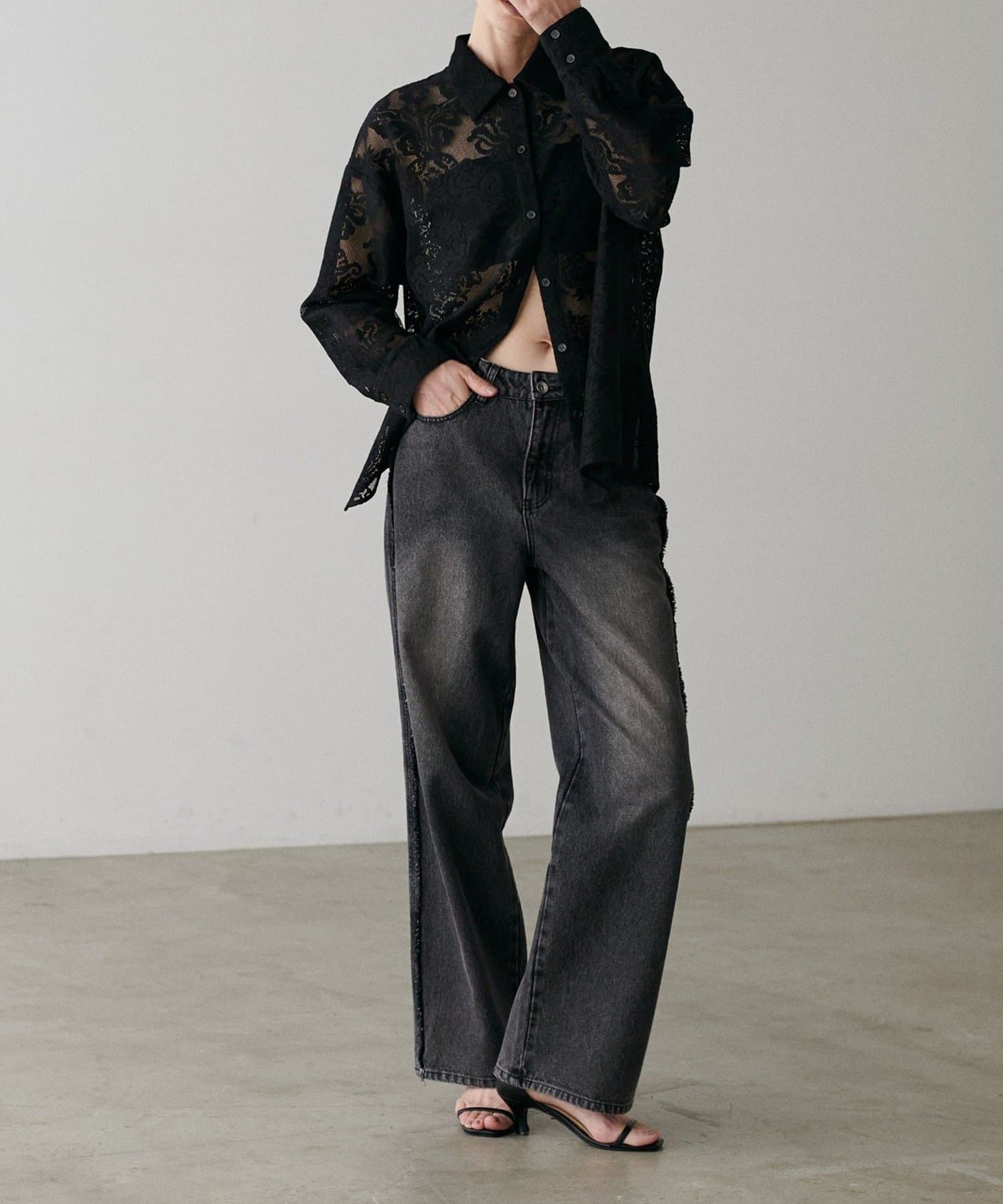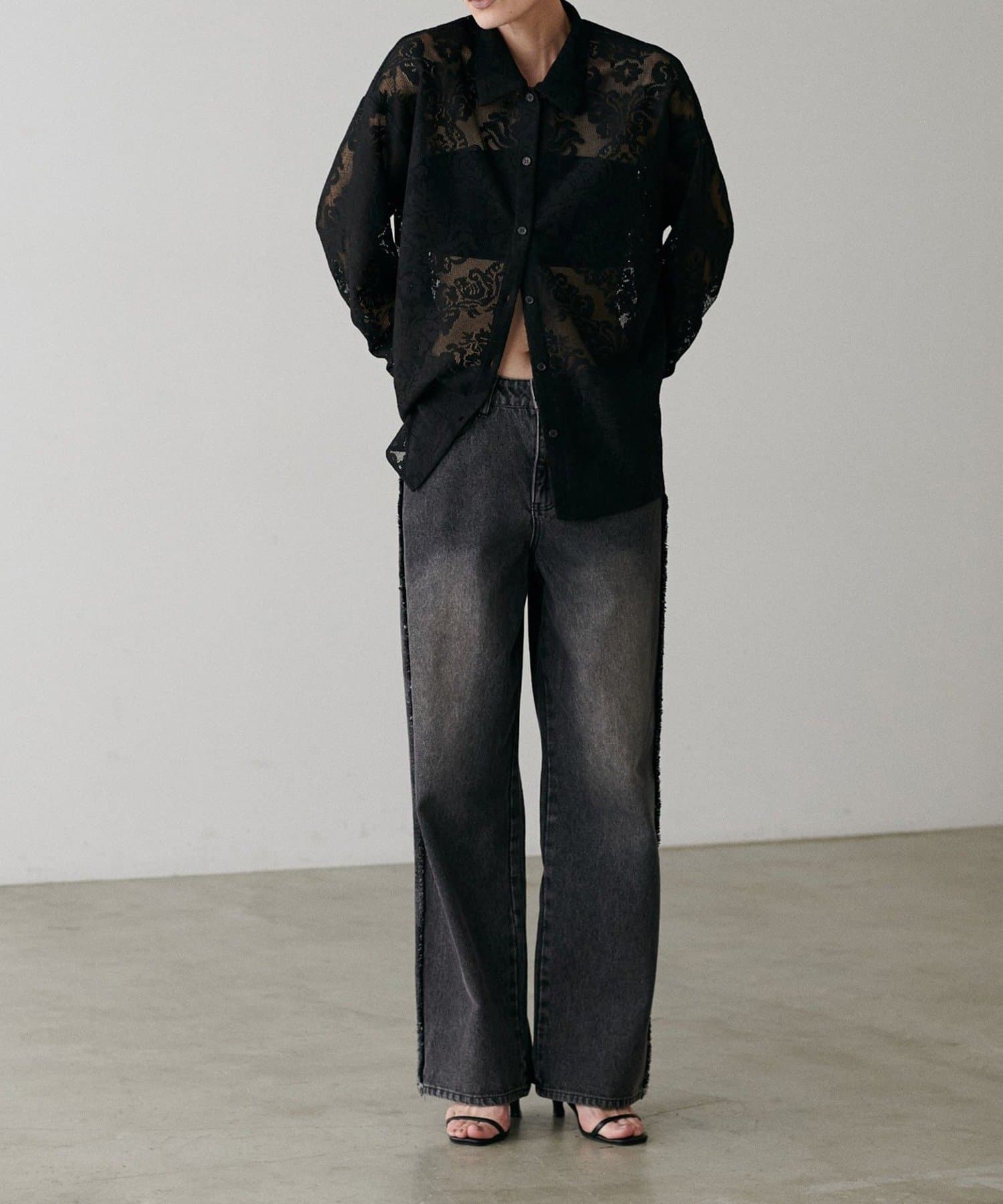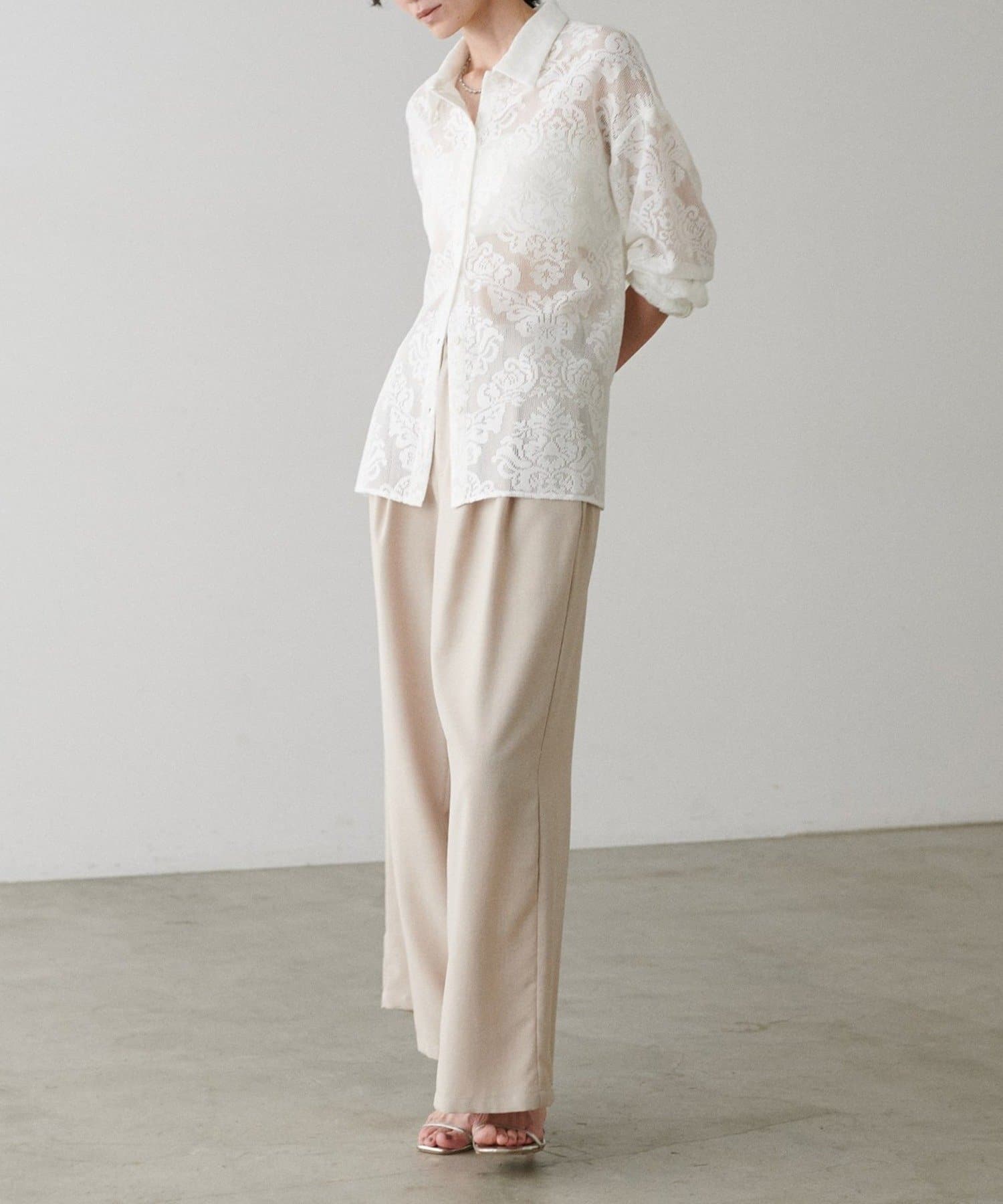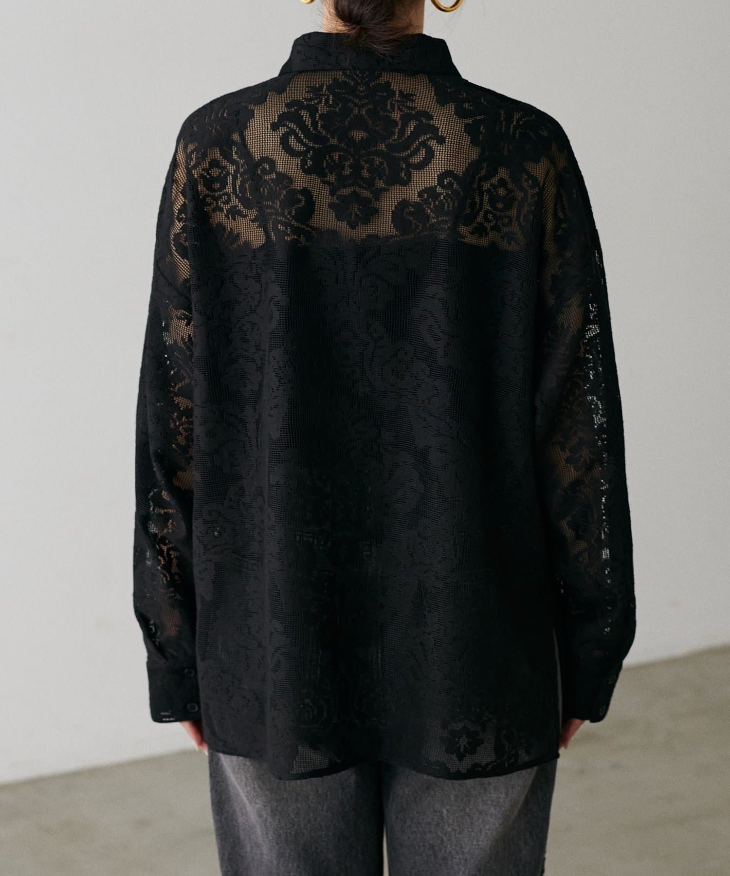 繊細な柄が美しい総レース素材で仕立てた、シアー感のあるレースシャツ。