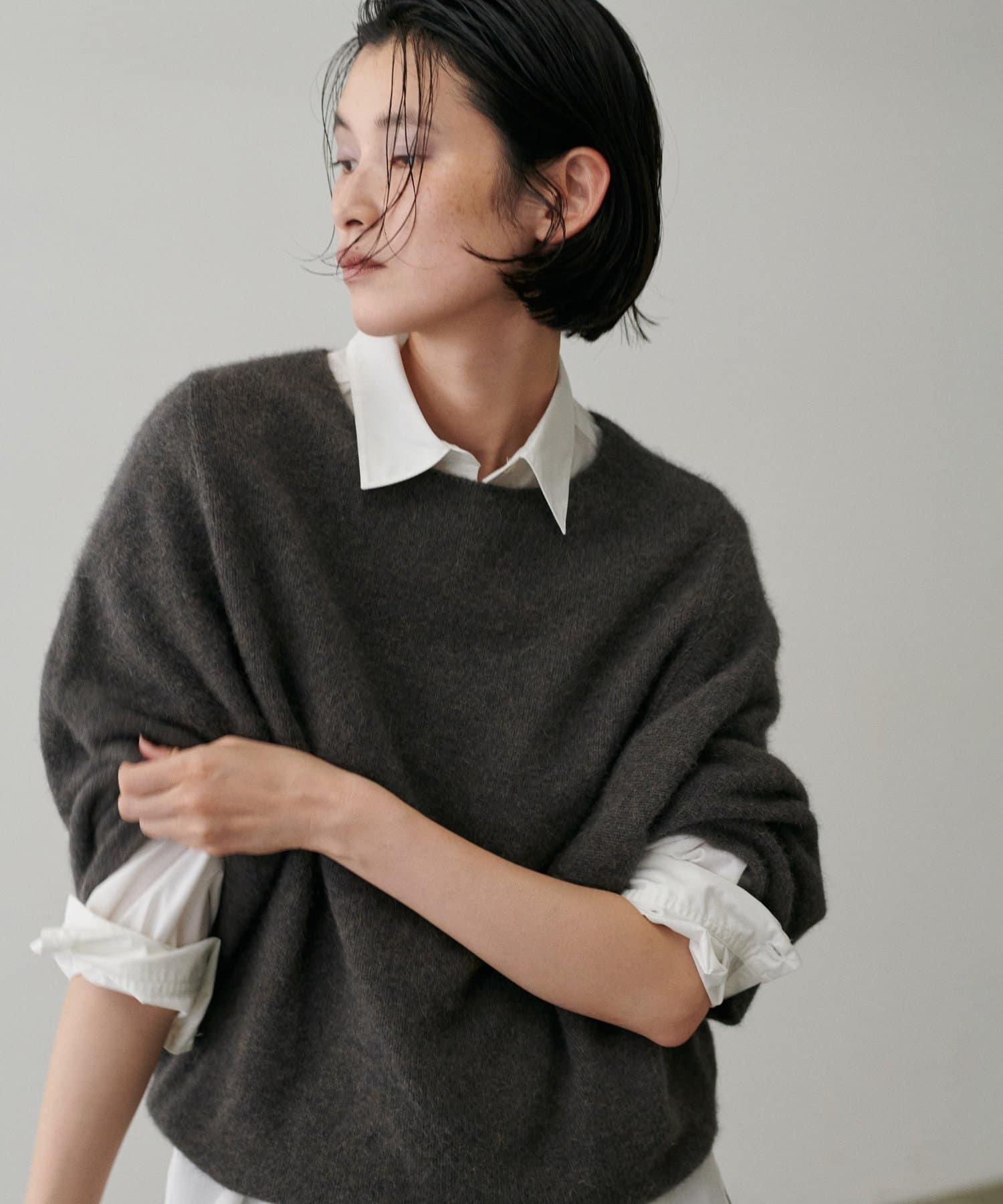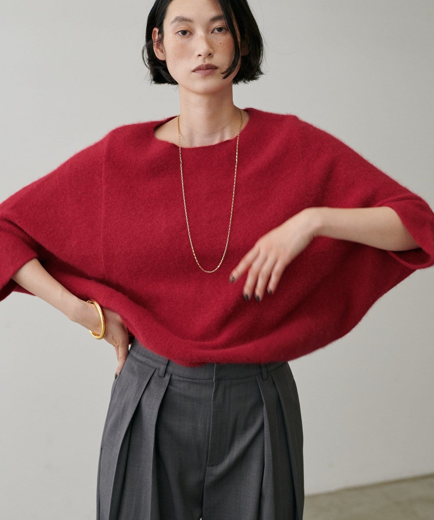 ふんわりとした風合いがシーズンムードを高めてくれるポンチョシルエットのニットプルオーバー。