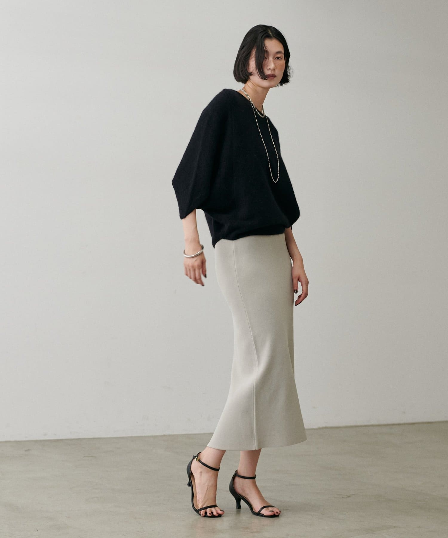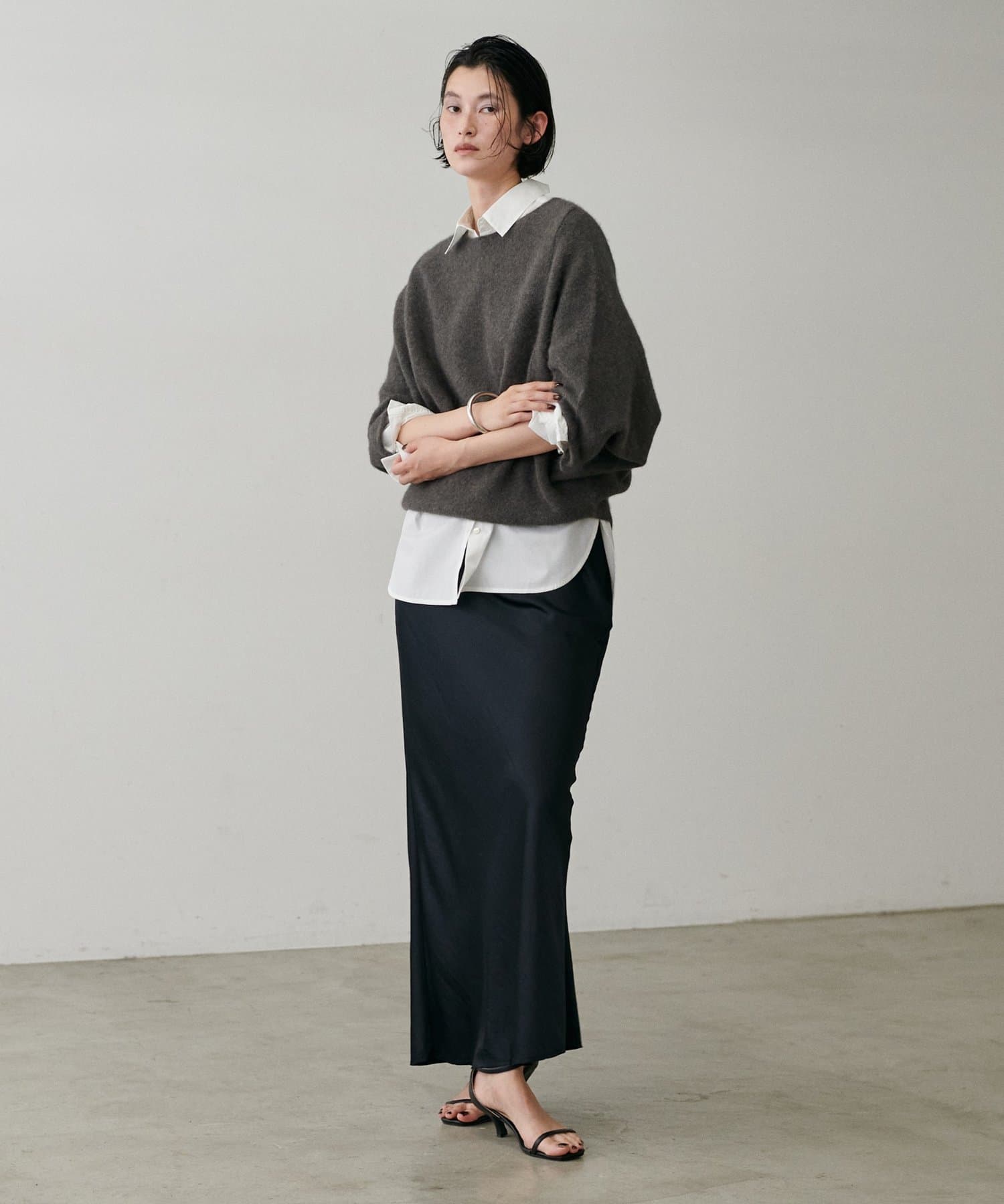 プリーツスカートやナロースカートと合わせれば女性らしい雰囲気に。