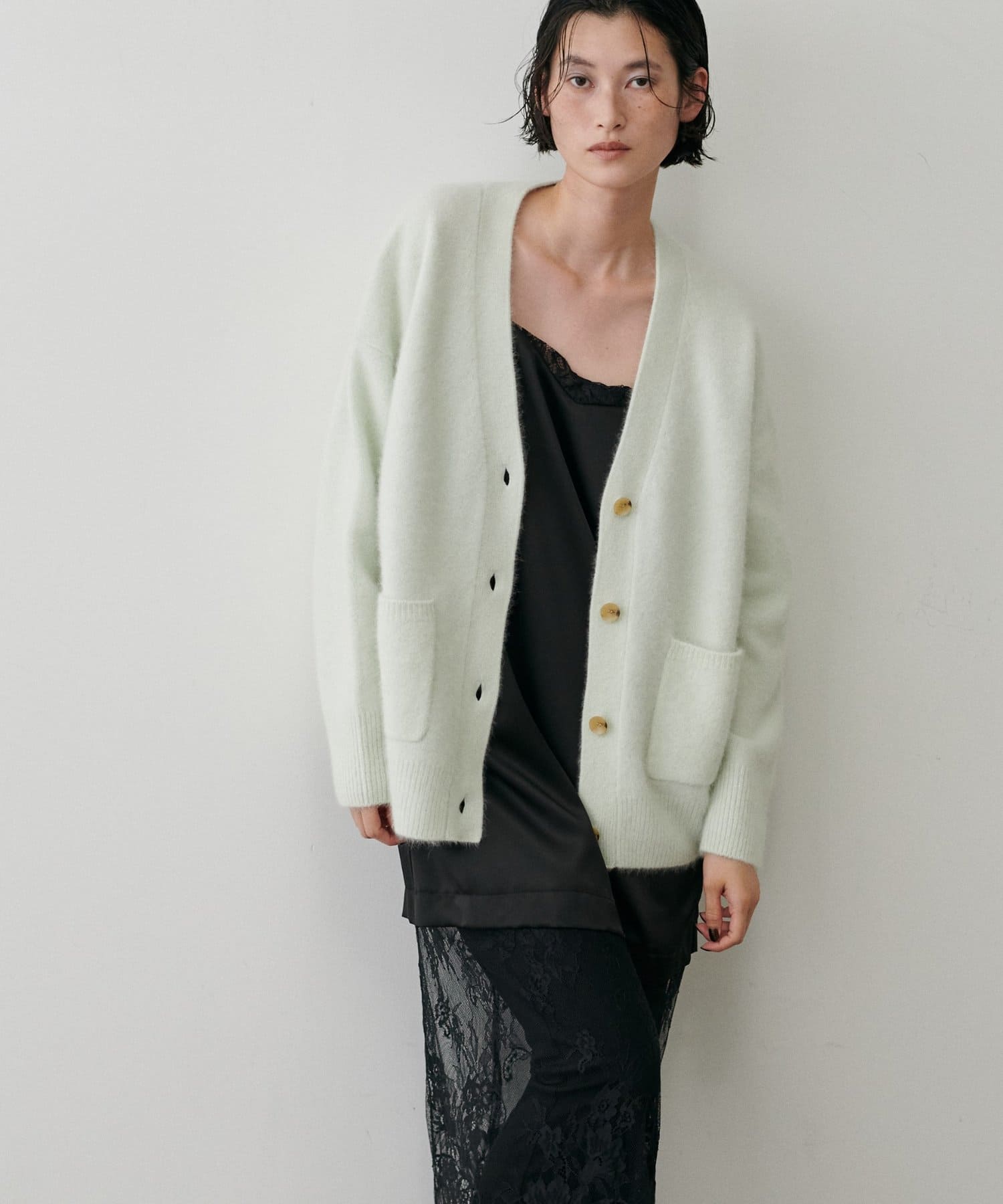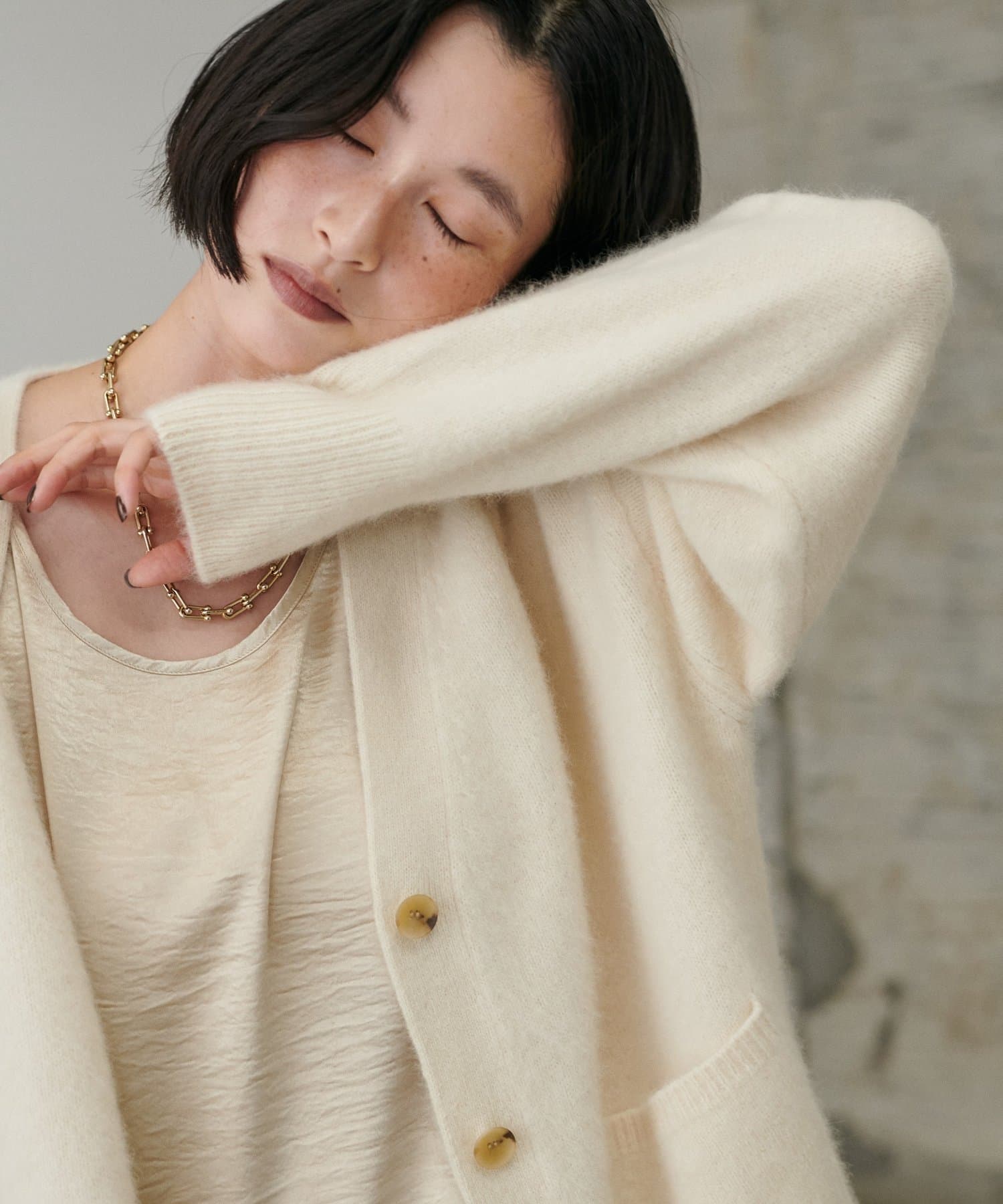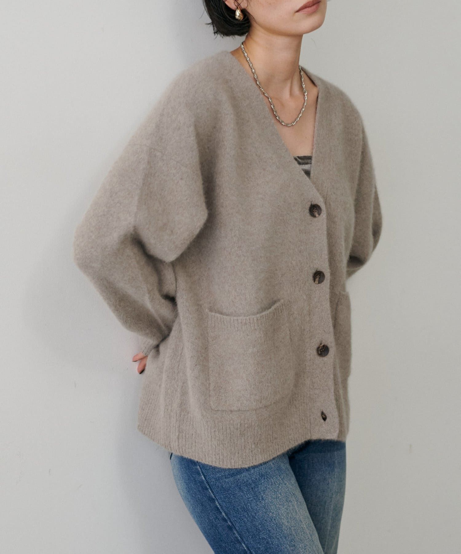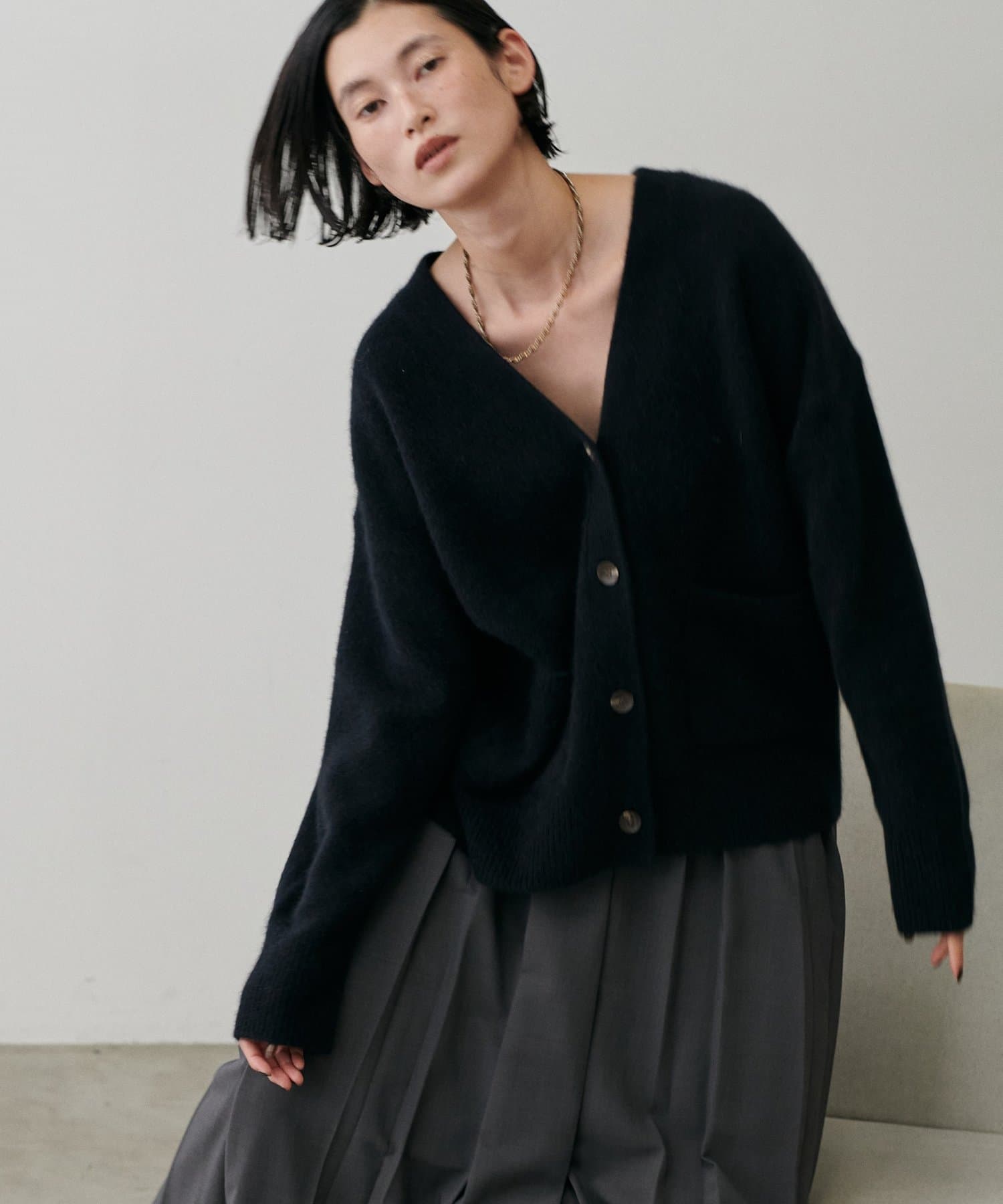 柔らかな毛足のニット地を採用したニットカーディガン。