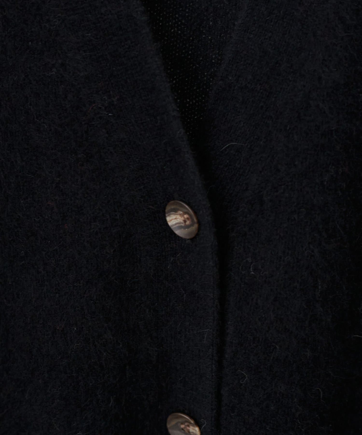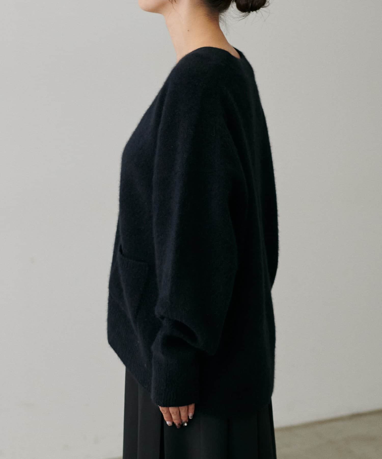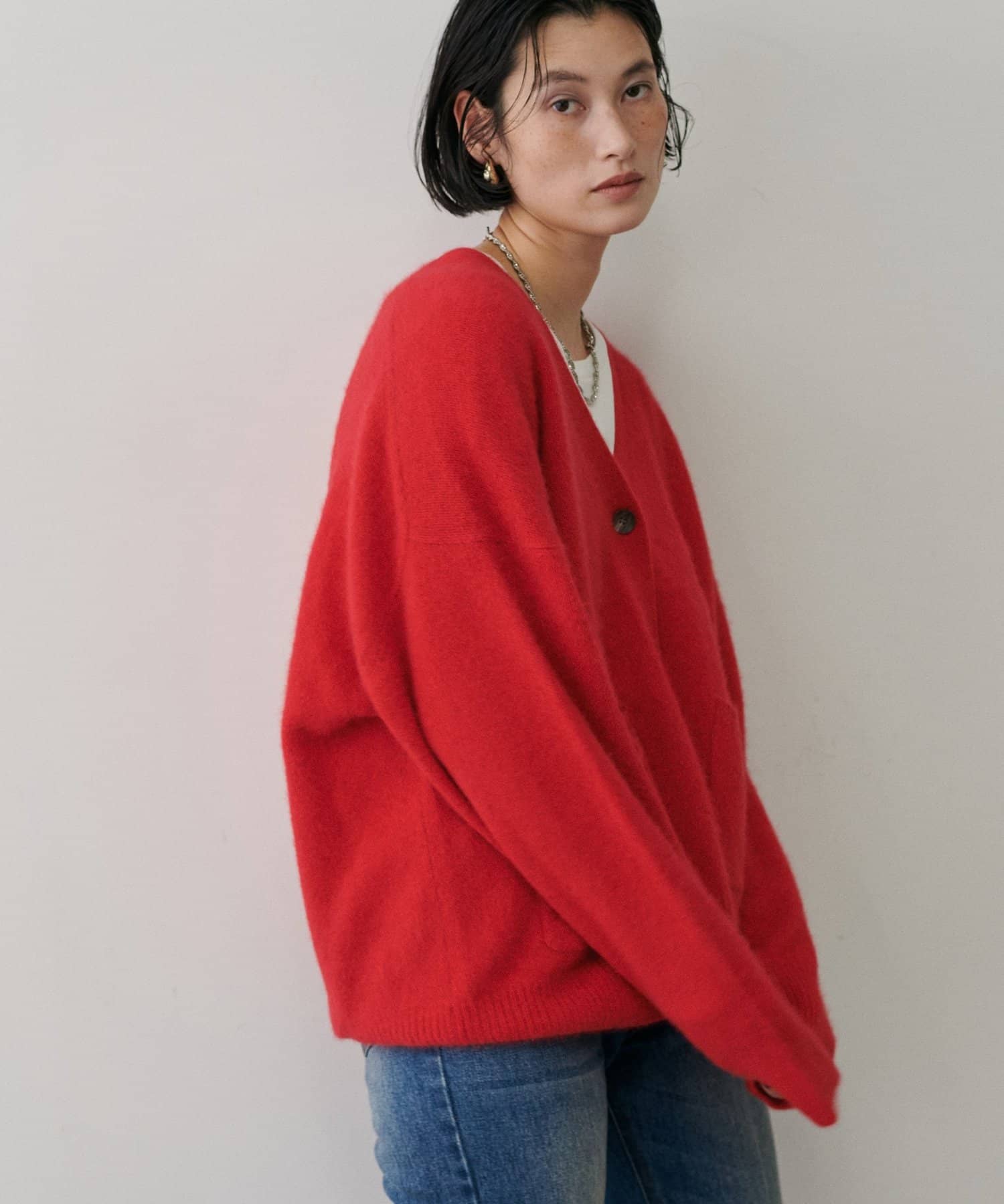 柔らかな毛足のニット地を採用したニットカーディガン。