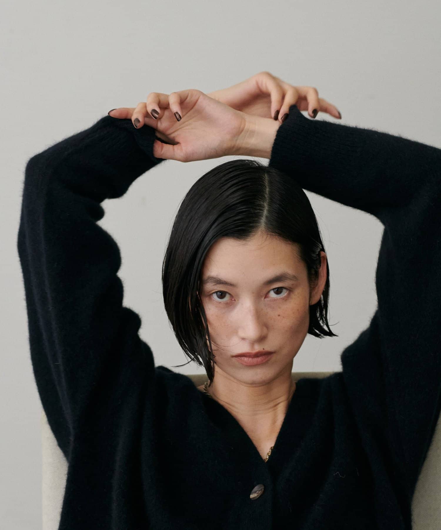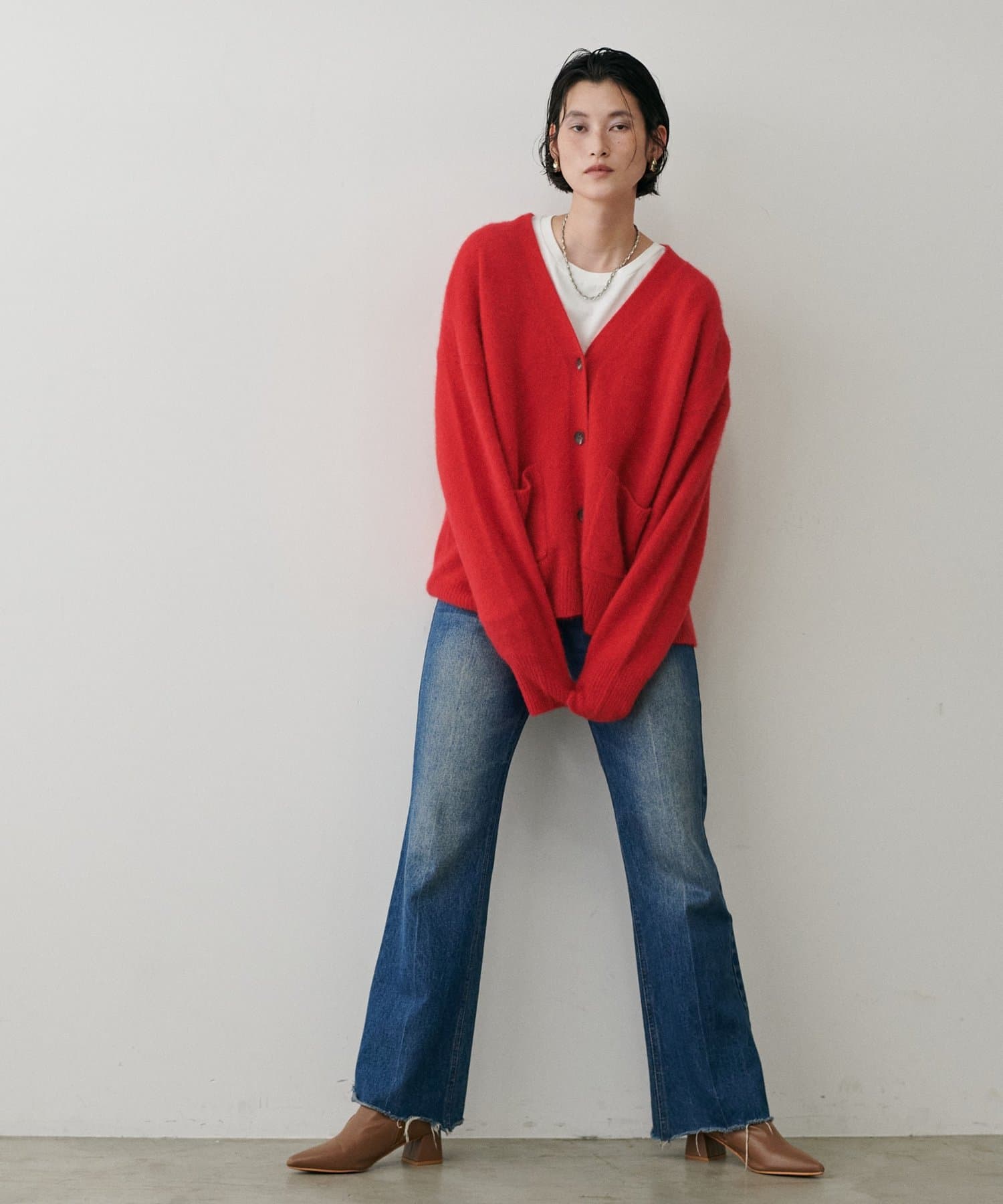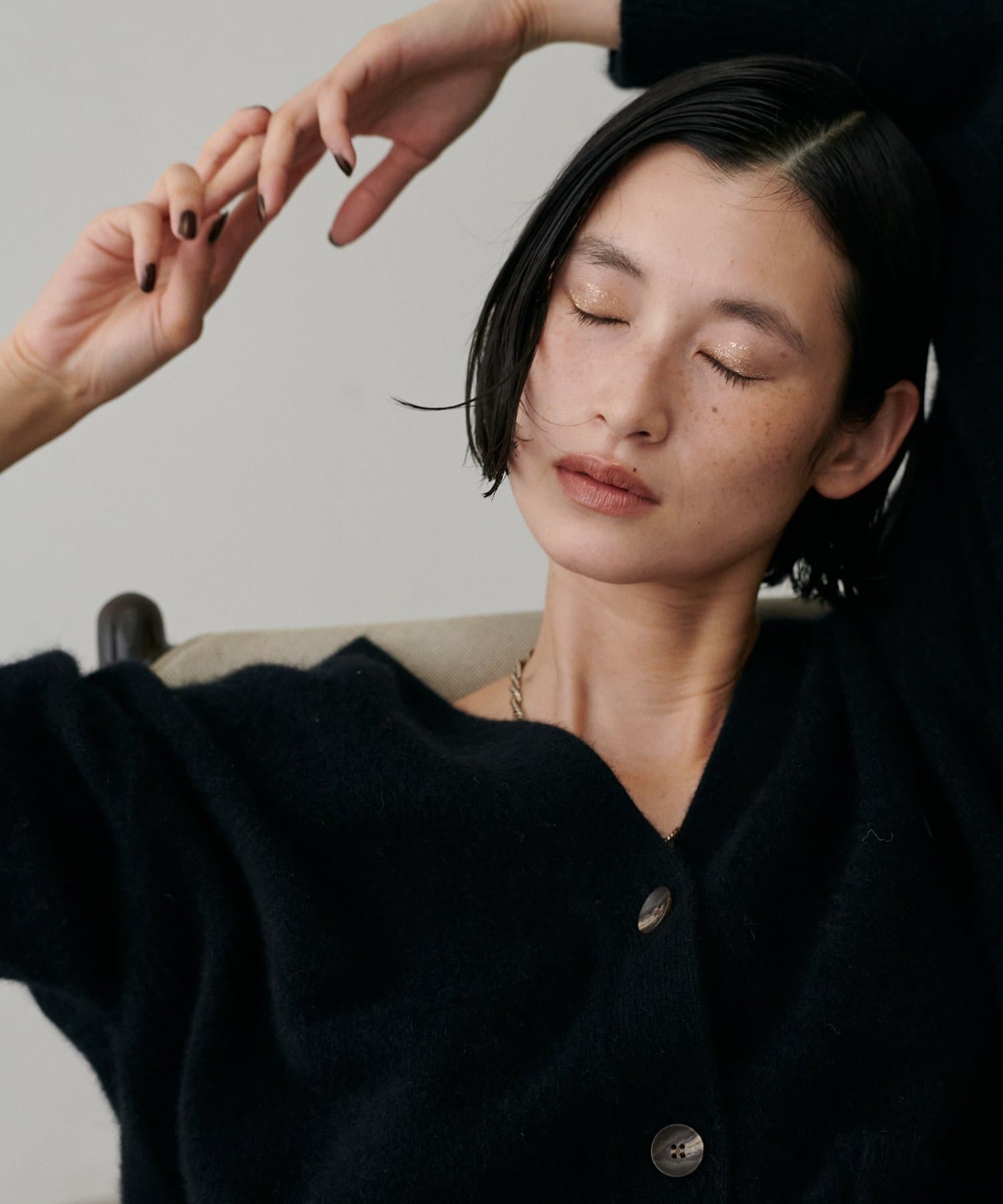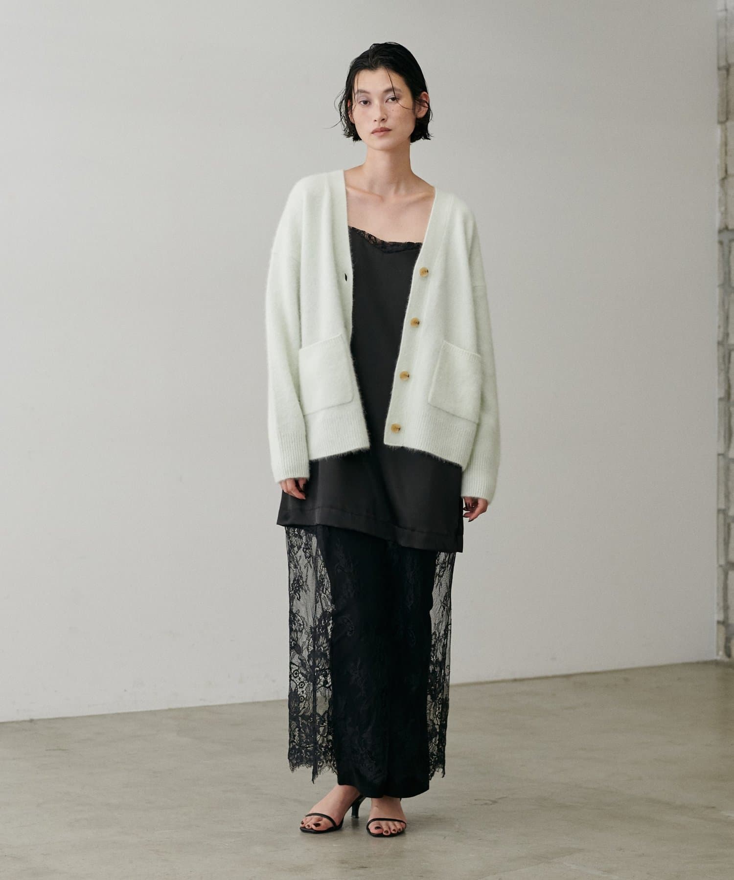 柔らかな毛足のニット地を採用したニットカーディガン。
