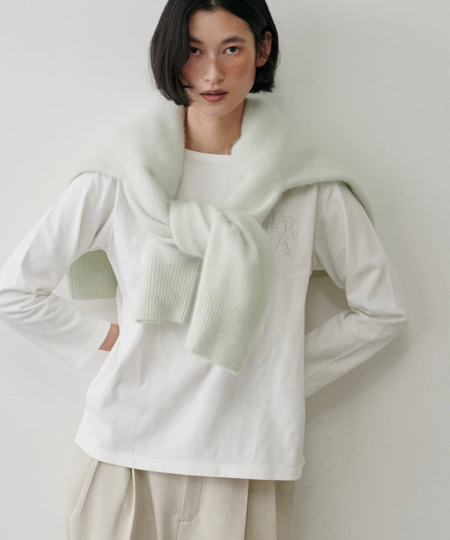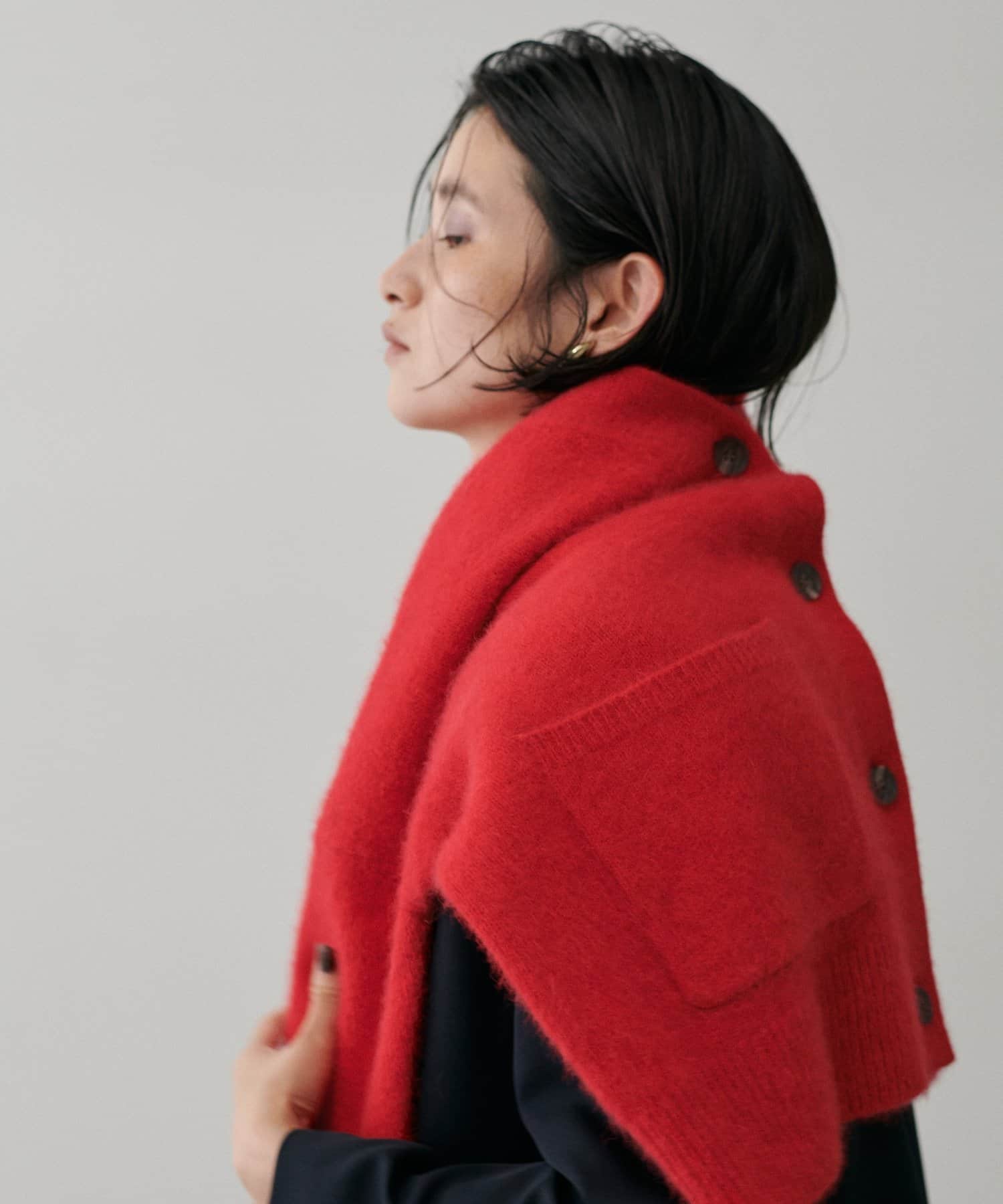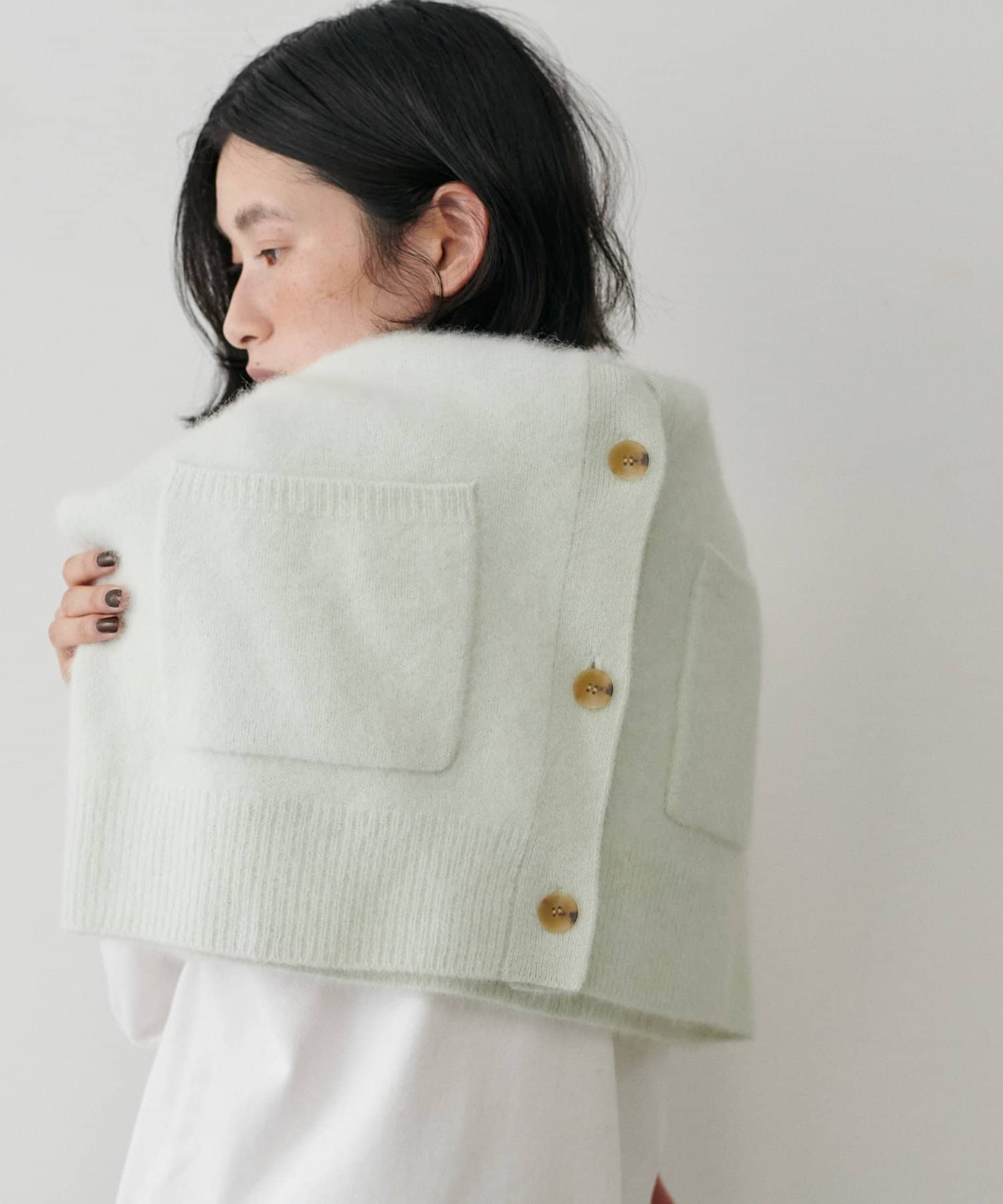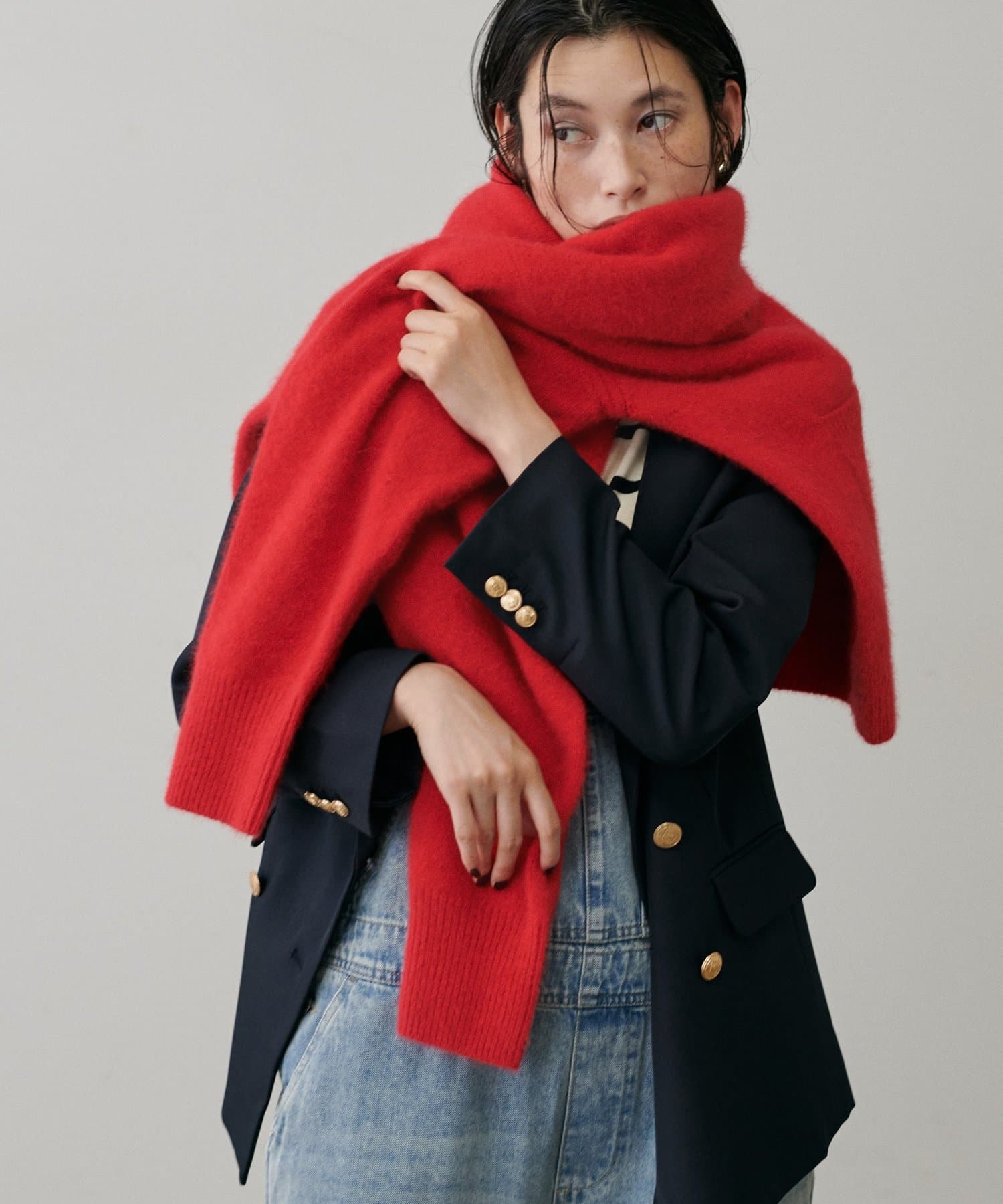 同素材のニットの上から巻いてアンサンブルのように着てもオススメです。