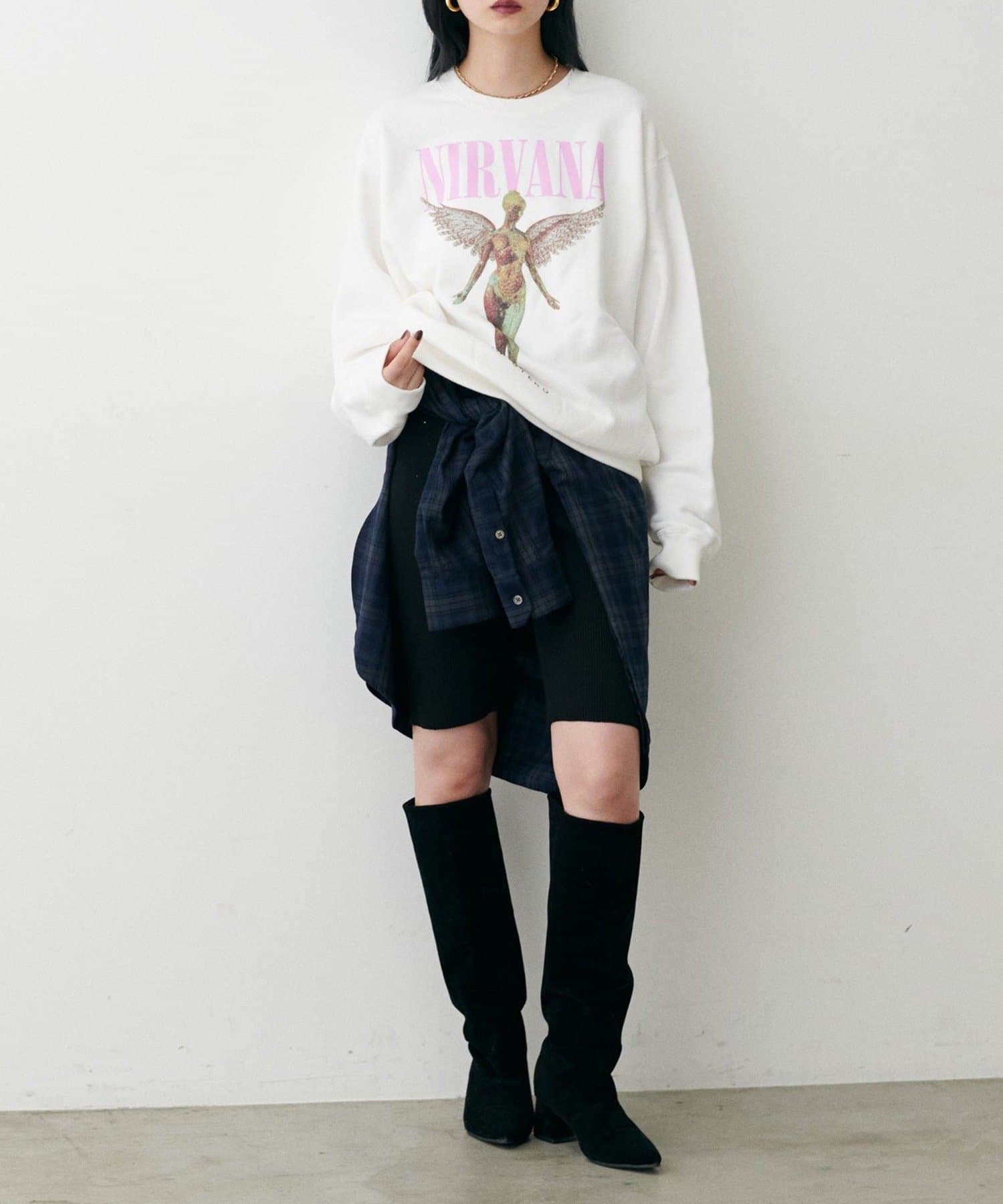 NIRVANAのアイコニックなロゴが映える、存在感抜群のプリントスウェット。