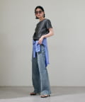 同系色のボトムスと合わせたワントーンコーデなどもおすすめ。