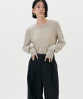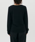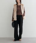 ニットやブラウスなど、プルオーバータイプのアイテムと重ねても存在感があるので◎。