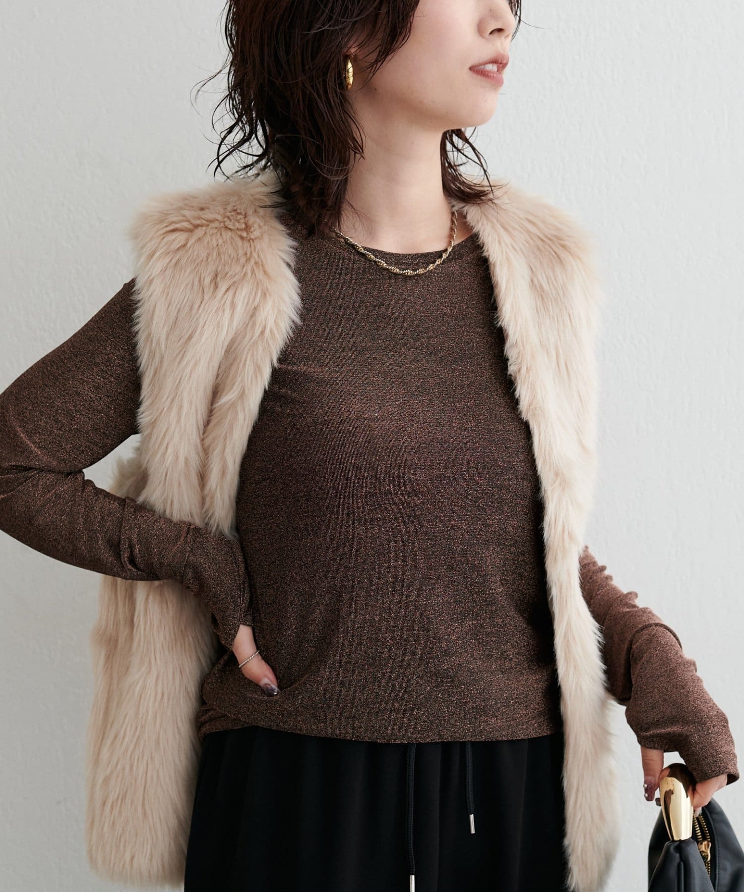 ラメ素材を覗かせて着ても◎ 1枚でもレイヤードとしても