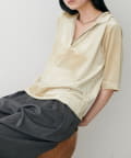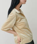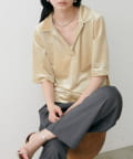 スキッパー襟と半袖デザインが抜け感を与え、シーズンレスで着回しやすい一着です。