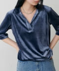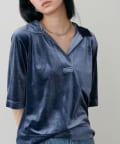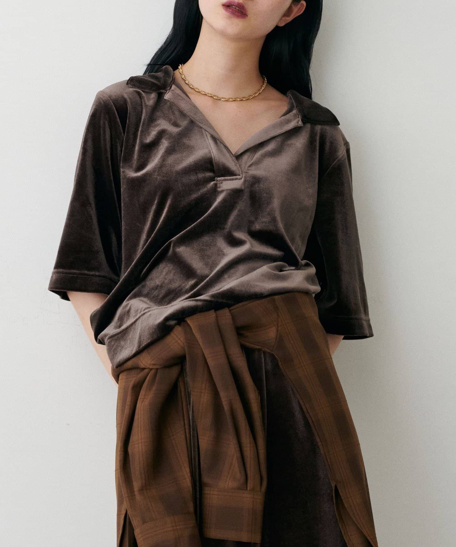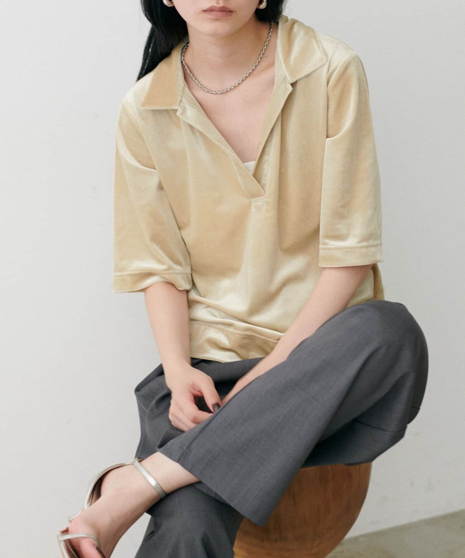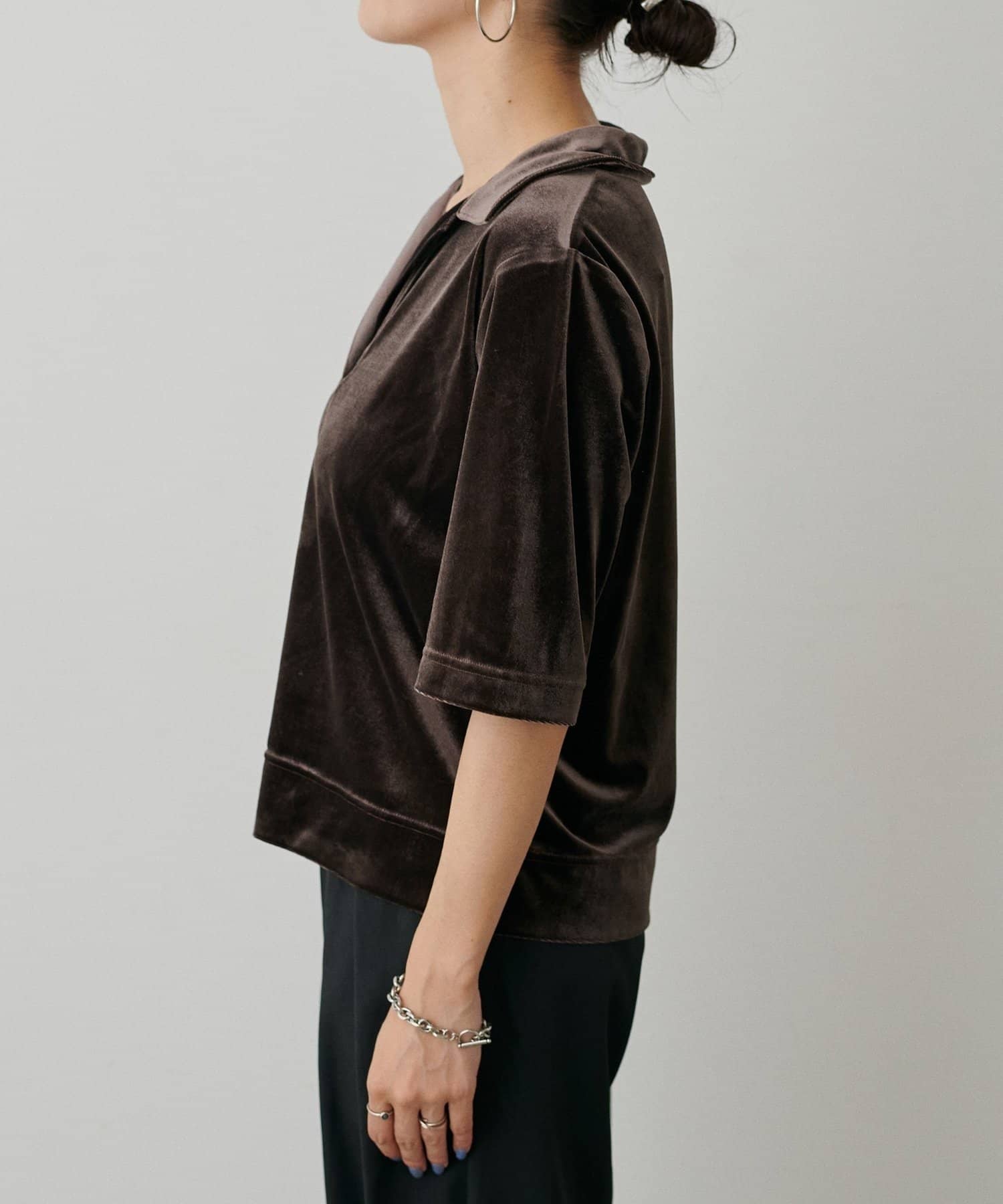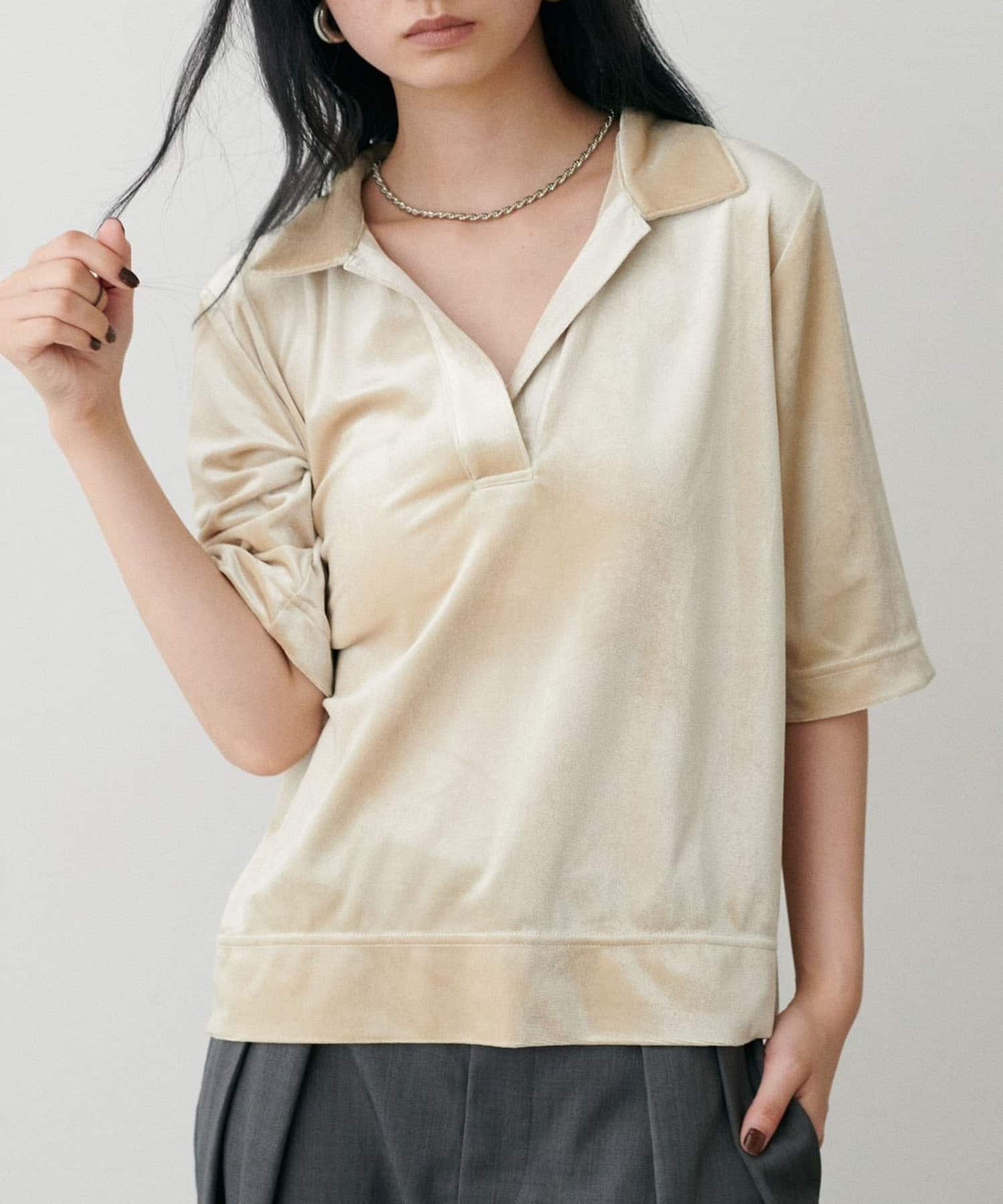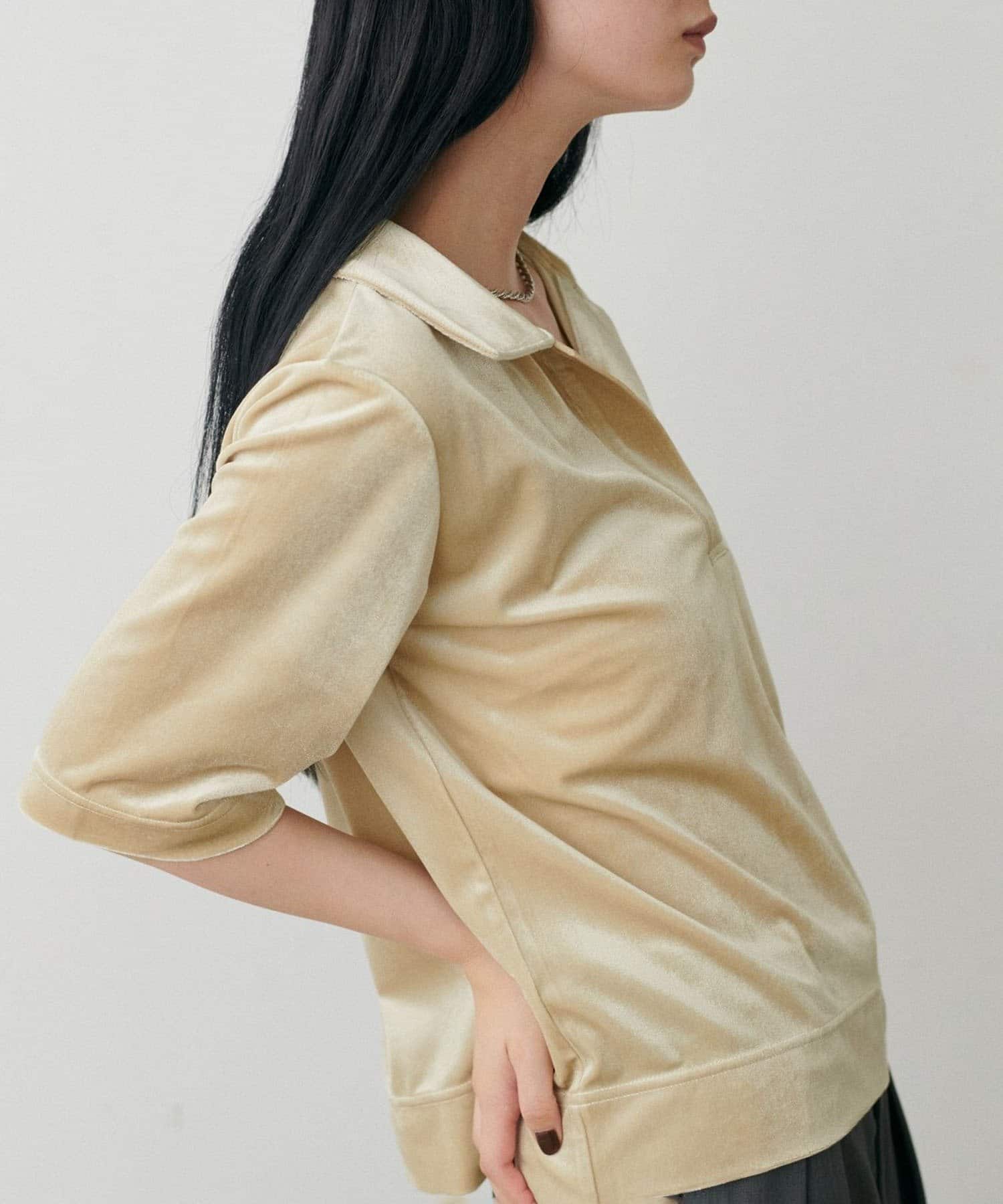 上品な光沢感が魅力のベロア素材を使用したポロシャツプルオーバー。