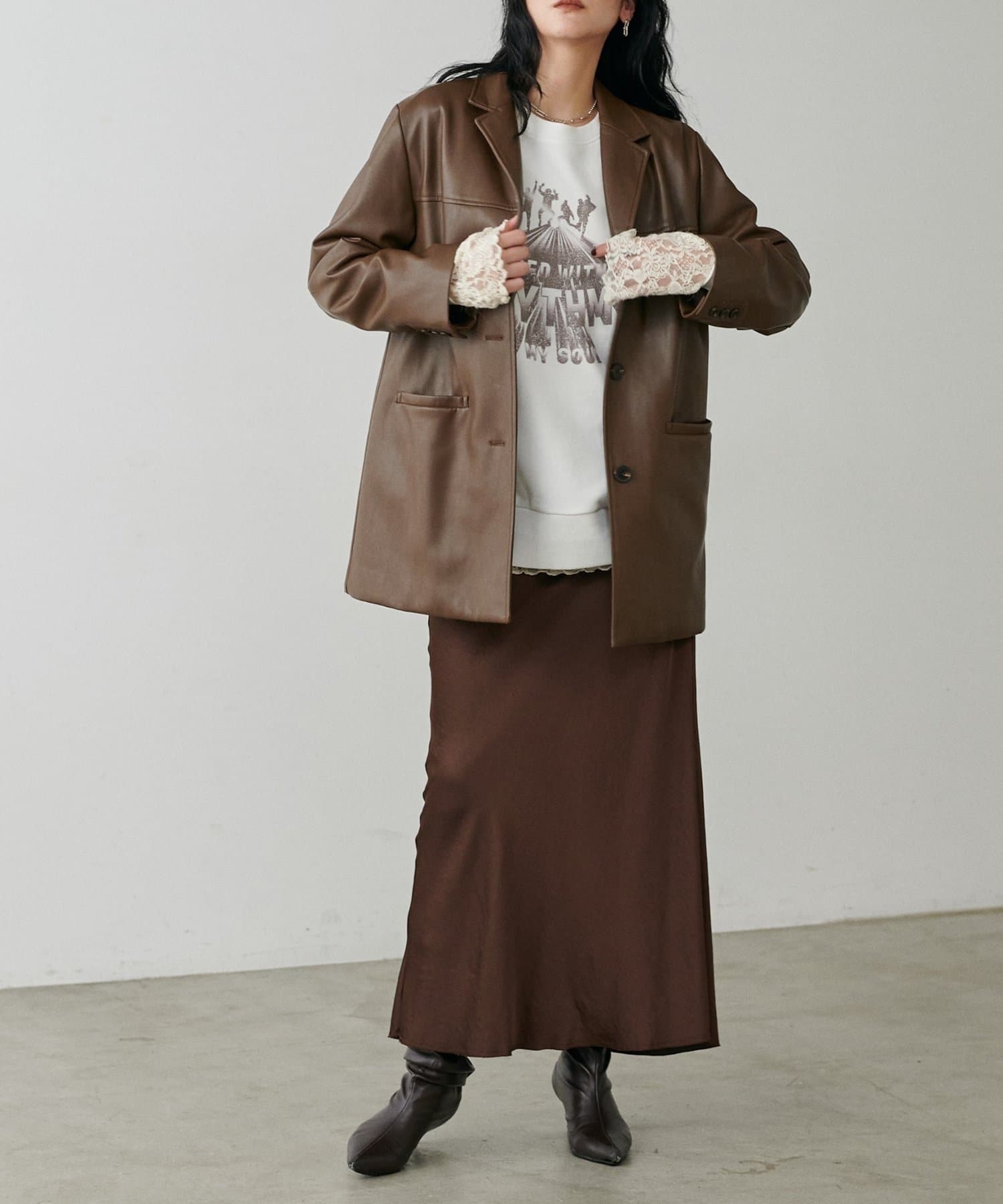 フェミニンなスカートやロングブーツと合わせて甘辛MIXに仕上げるのもおすすめ。