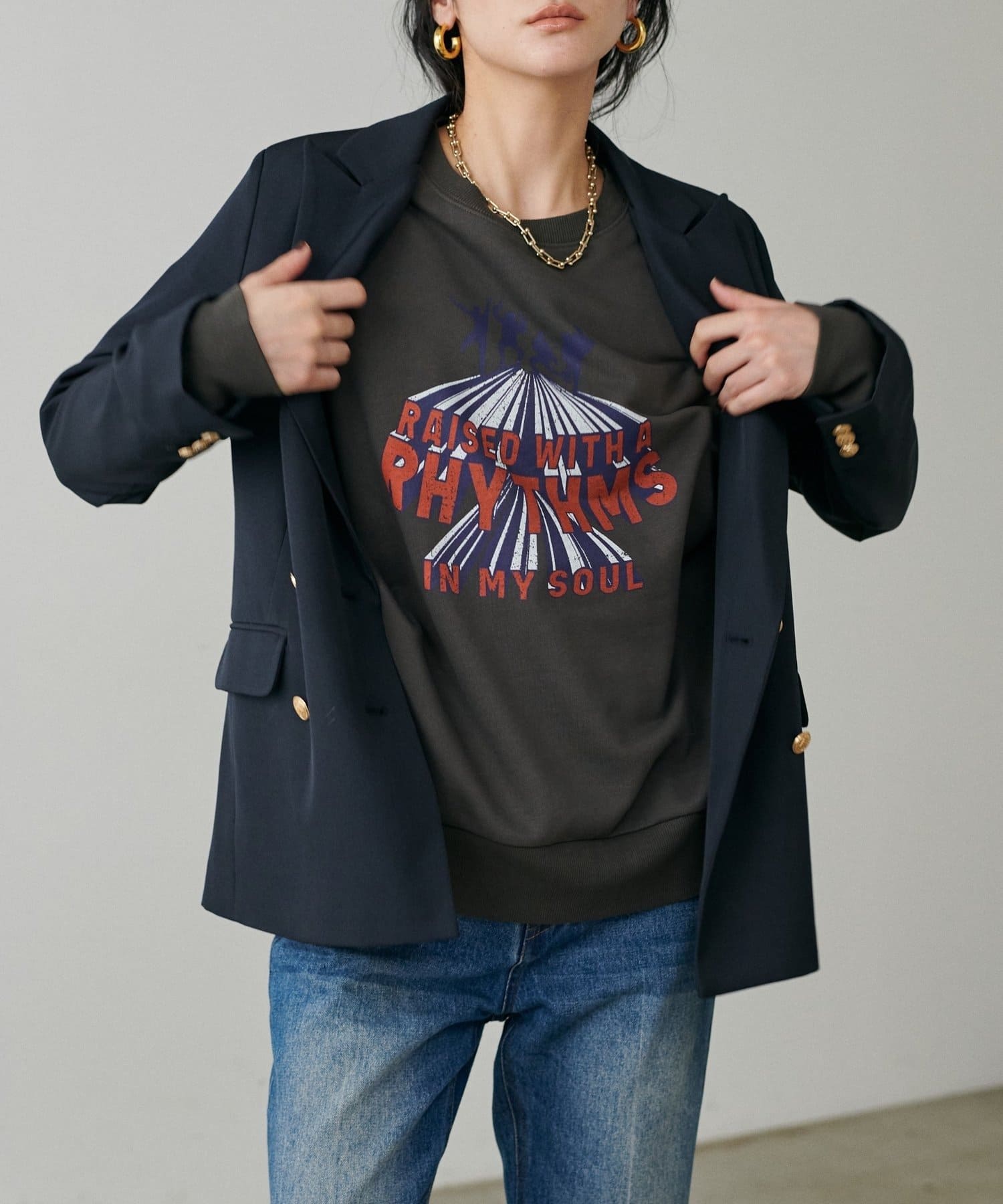 古着のようなフェード感のあるプリントと、ほどよくゆったりとしたシルエットがこなれたムードを演出します。