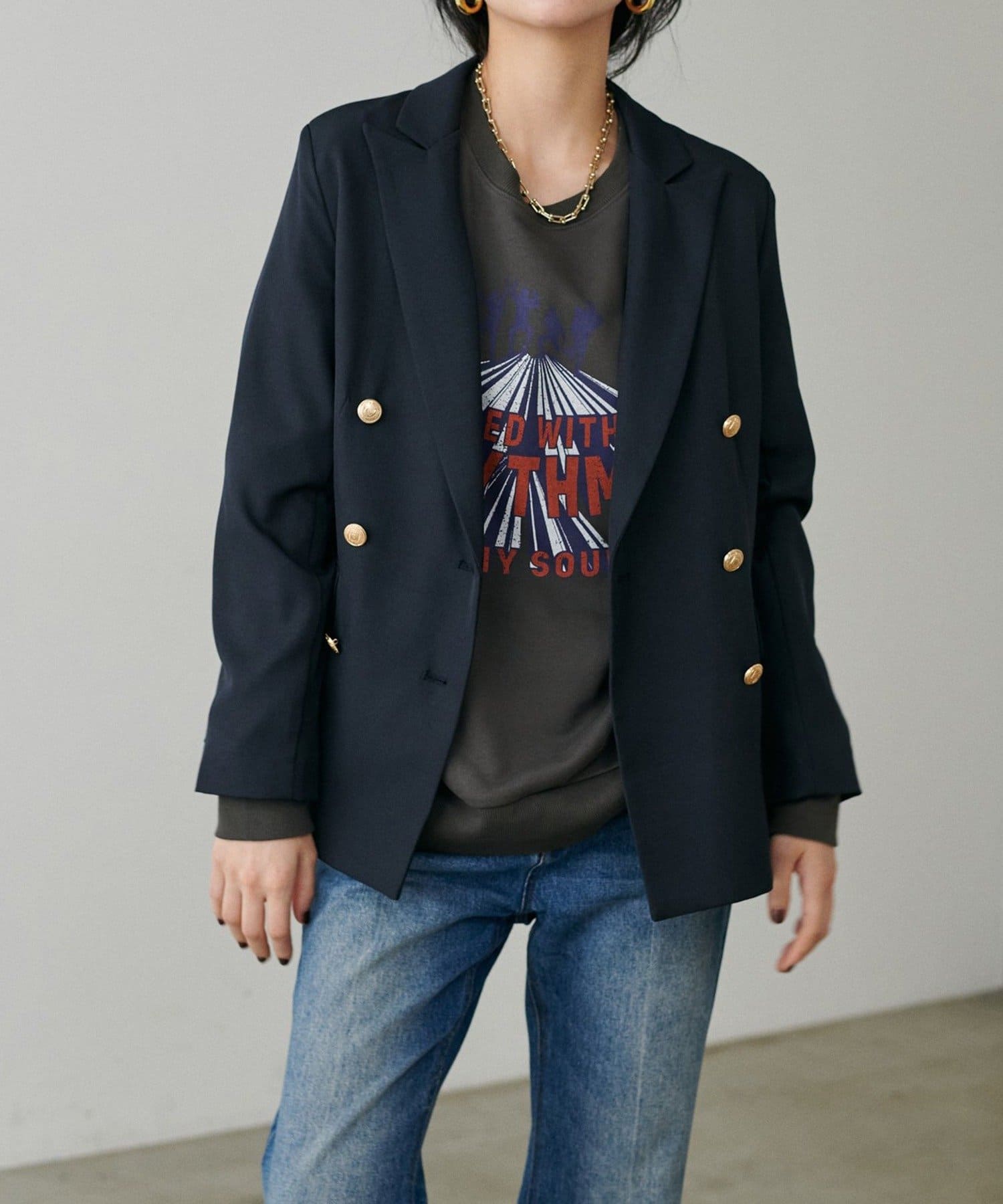 ジャケットやコートのインナーとしても存在感を発揮する万能アイテムです。