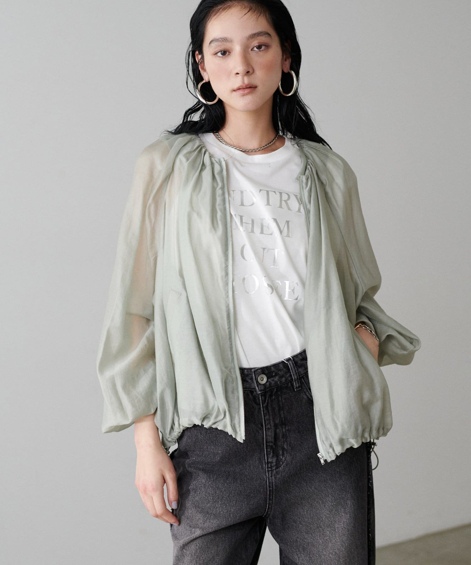 柔らかなシアー感が軽やかな雰囲気を漂わせるブルゾン。