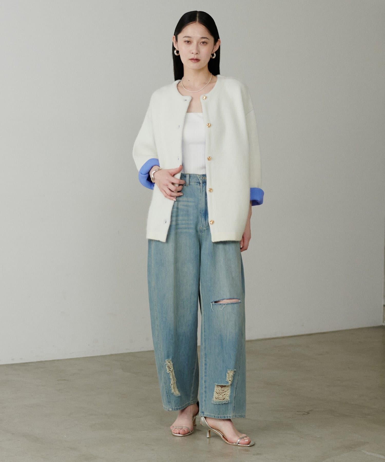 シンプルにデニム合わせはもちろん、タイトスカートやスラックス合わせで大人カジュアルにまとめて頂いても◎