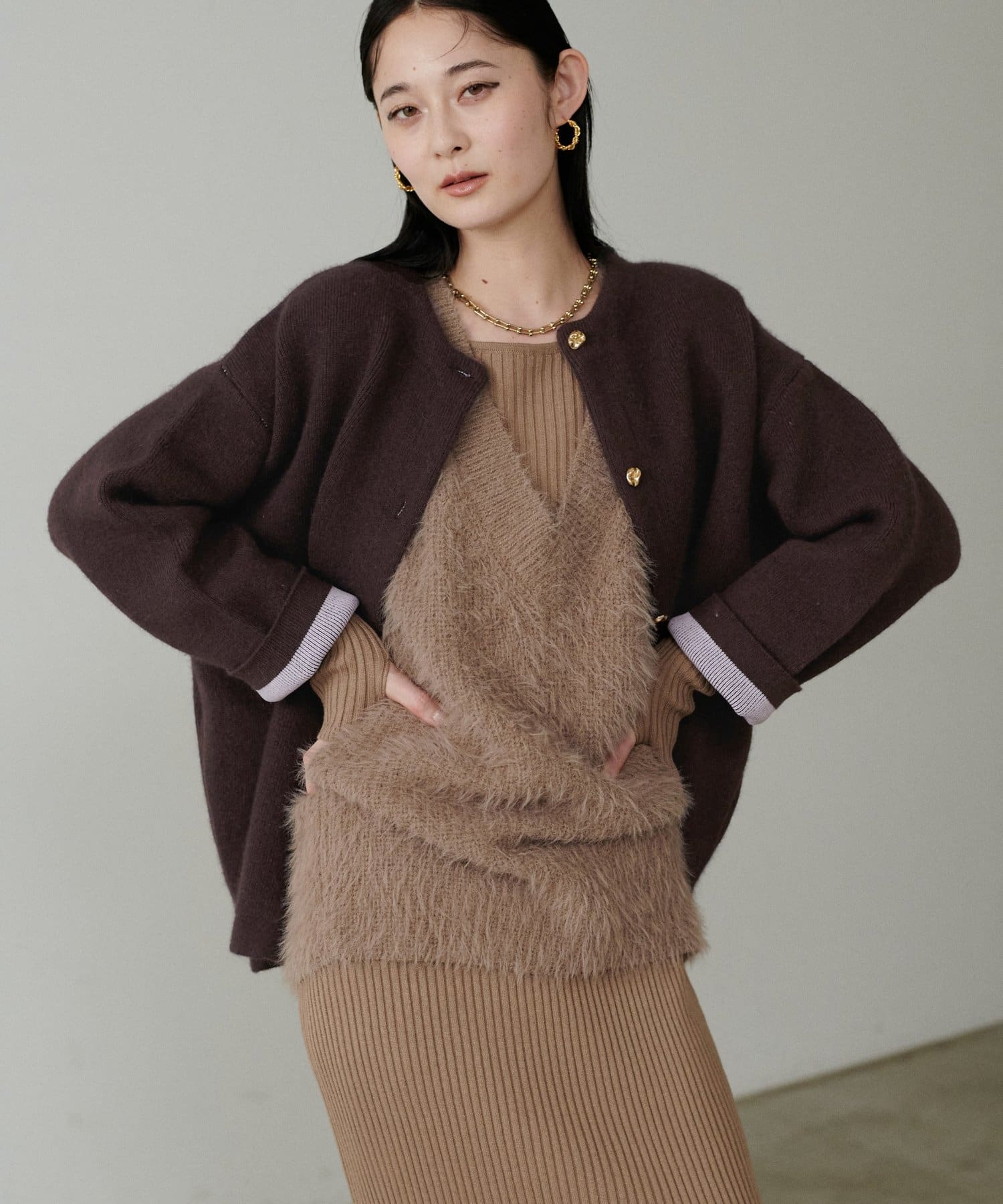 ワンピースや、袖にディテールのあるトップスなど、幅広いアイテムに羽織って頂きやすい、